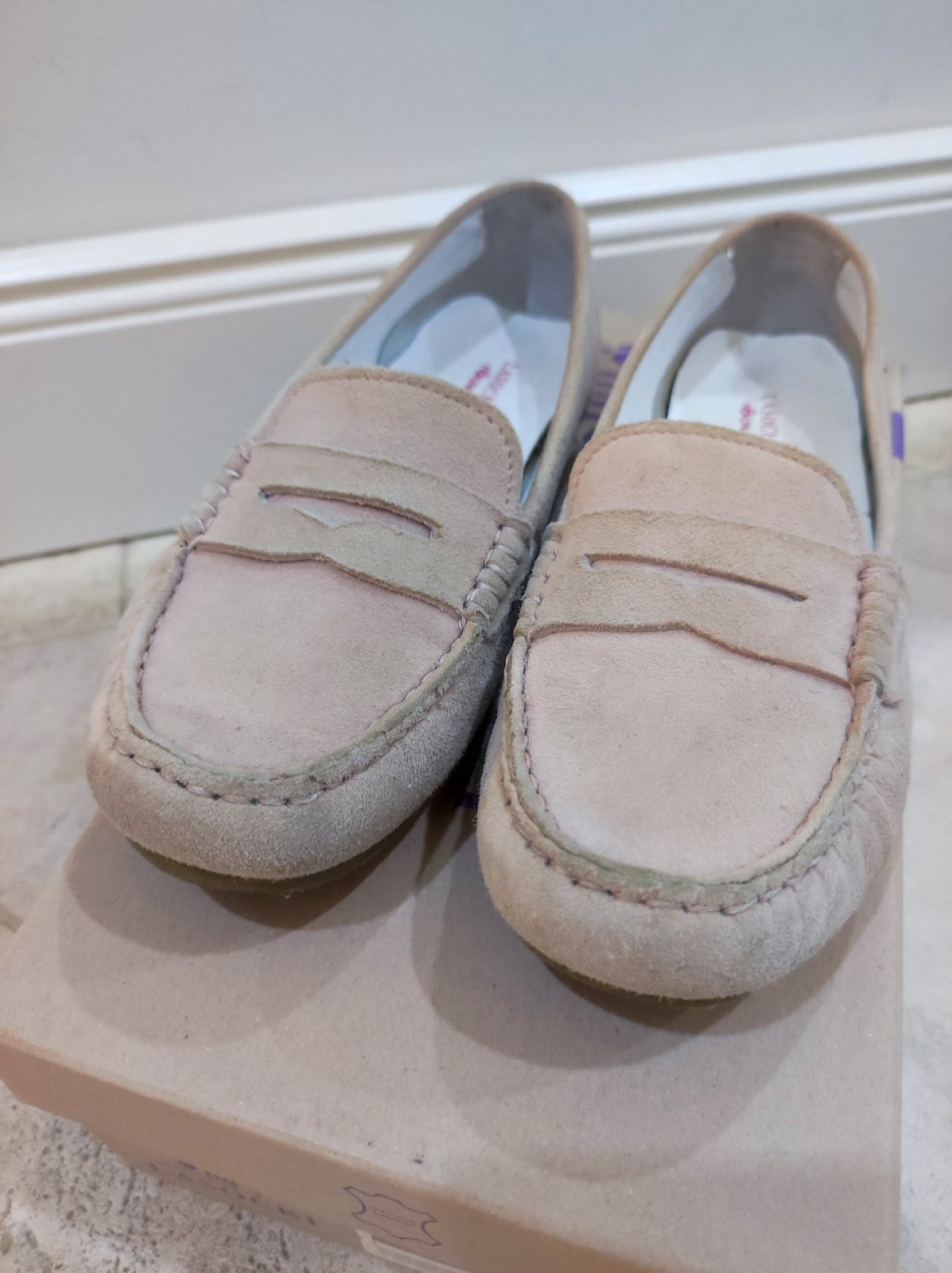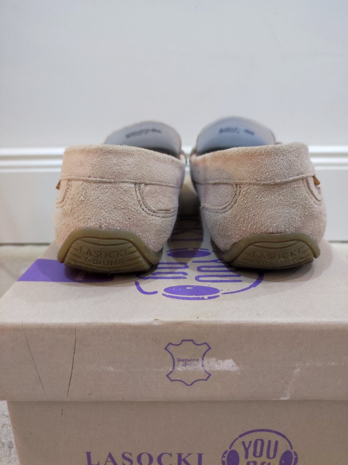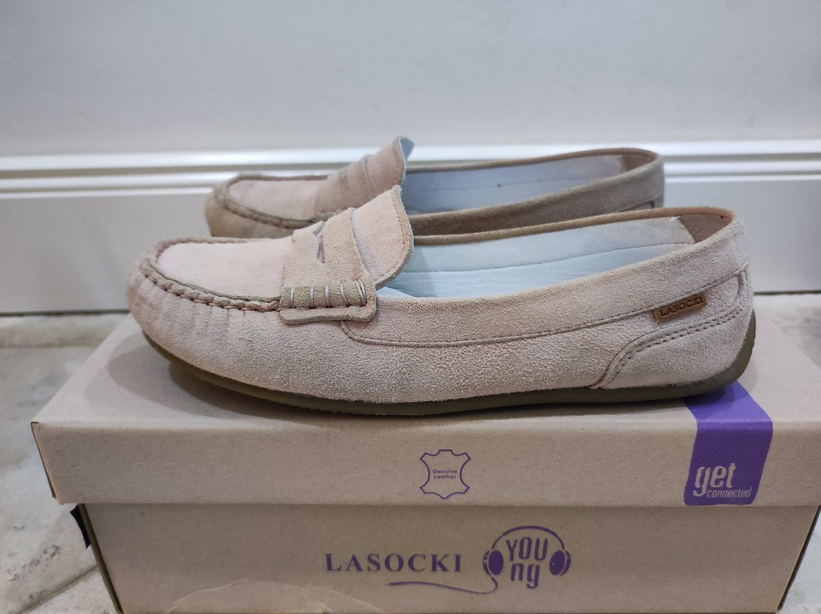Ponúkam krátko používané bledučko ružové mokasíny Lasocki 33 z brúsenej kože. Sú pekné, neschodené, ideálne na krásne slnečné dni. Veľkosť vložky je vyfotená.