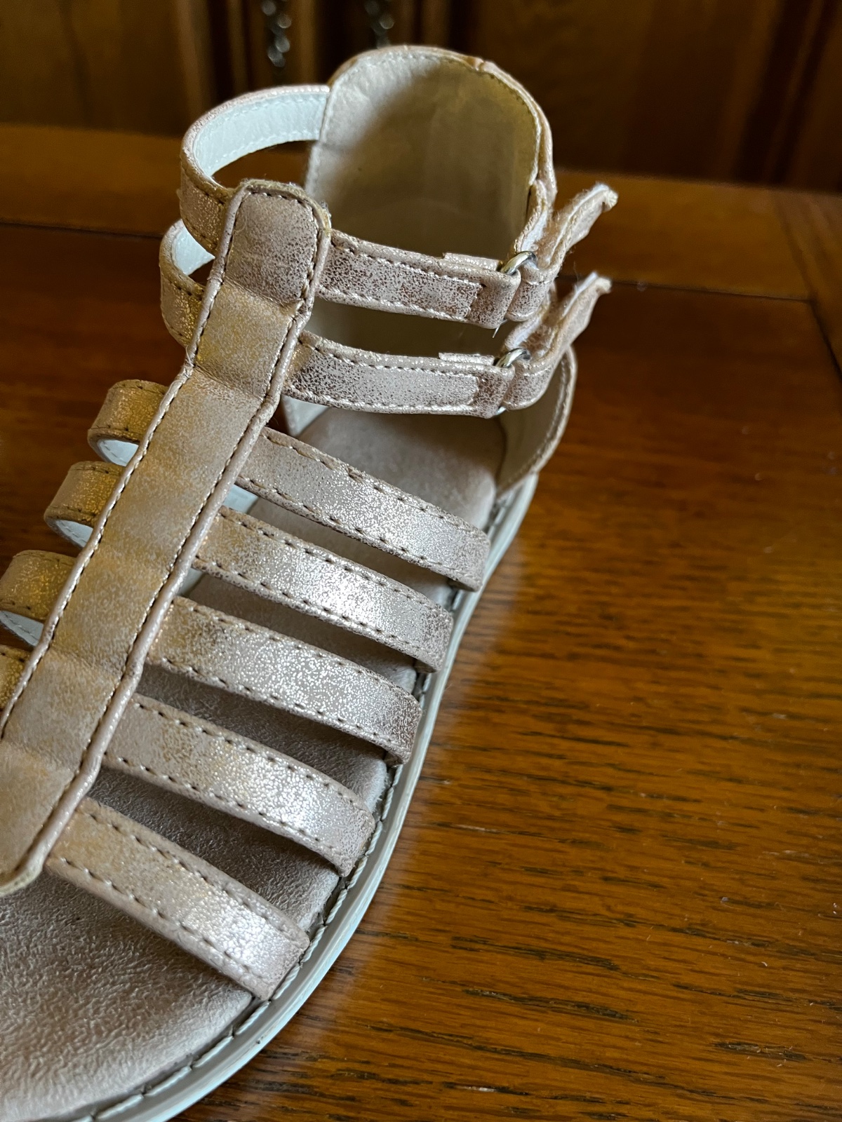 Kožené remienkové sandálky so zlatými metalickými odtieňmi.