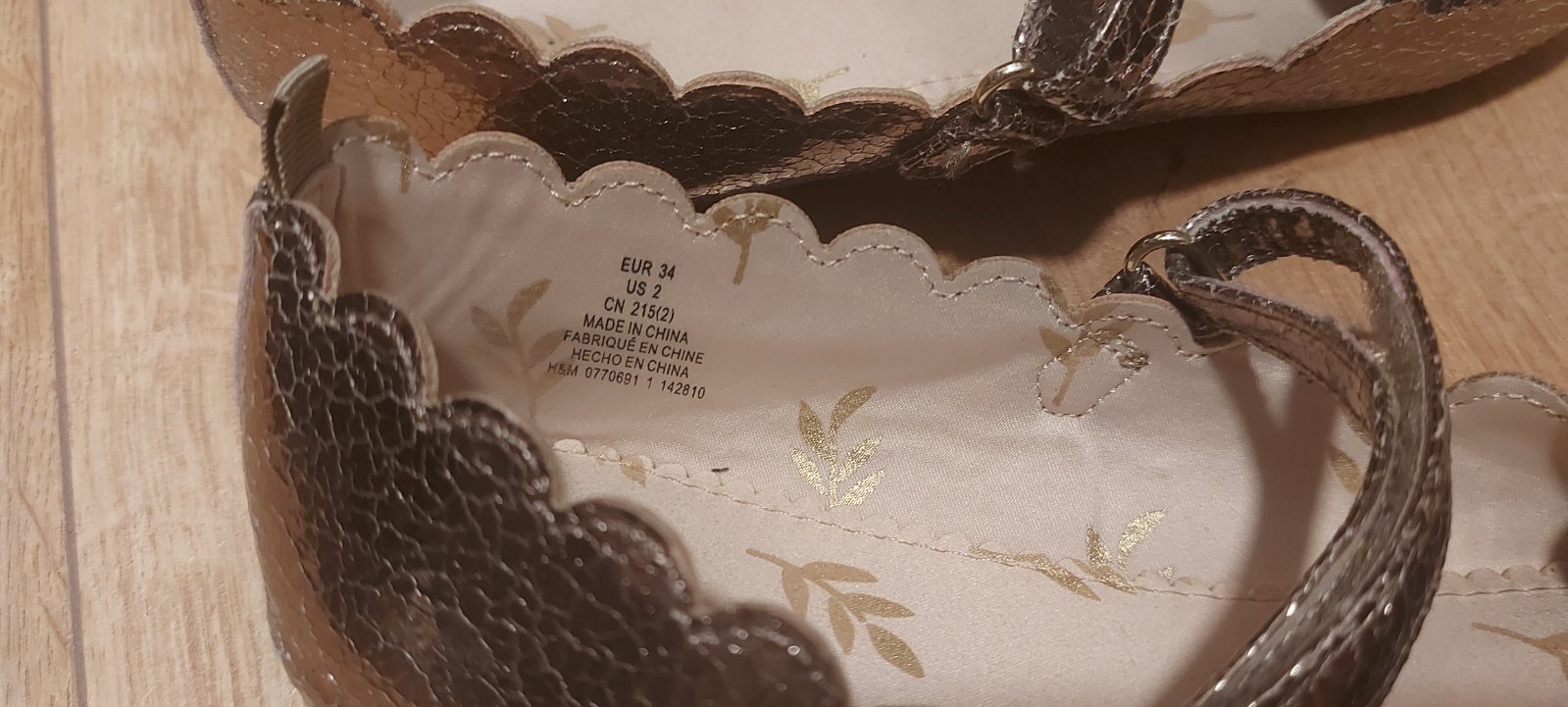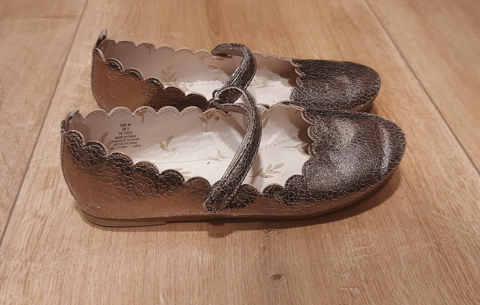 Balerínky medenej farby v popraskanom prevedení. Veľkosť 34. Cca 21cm.