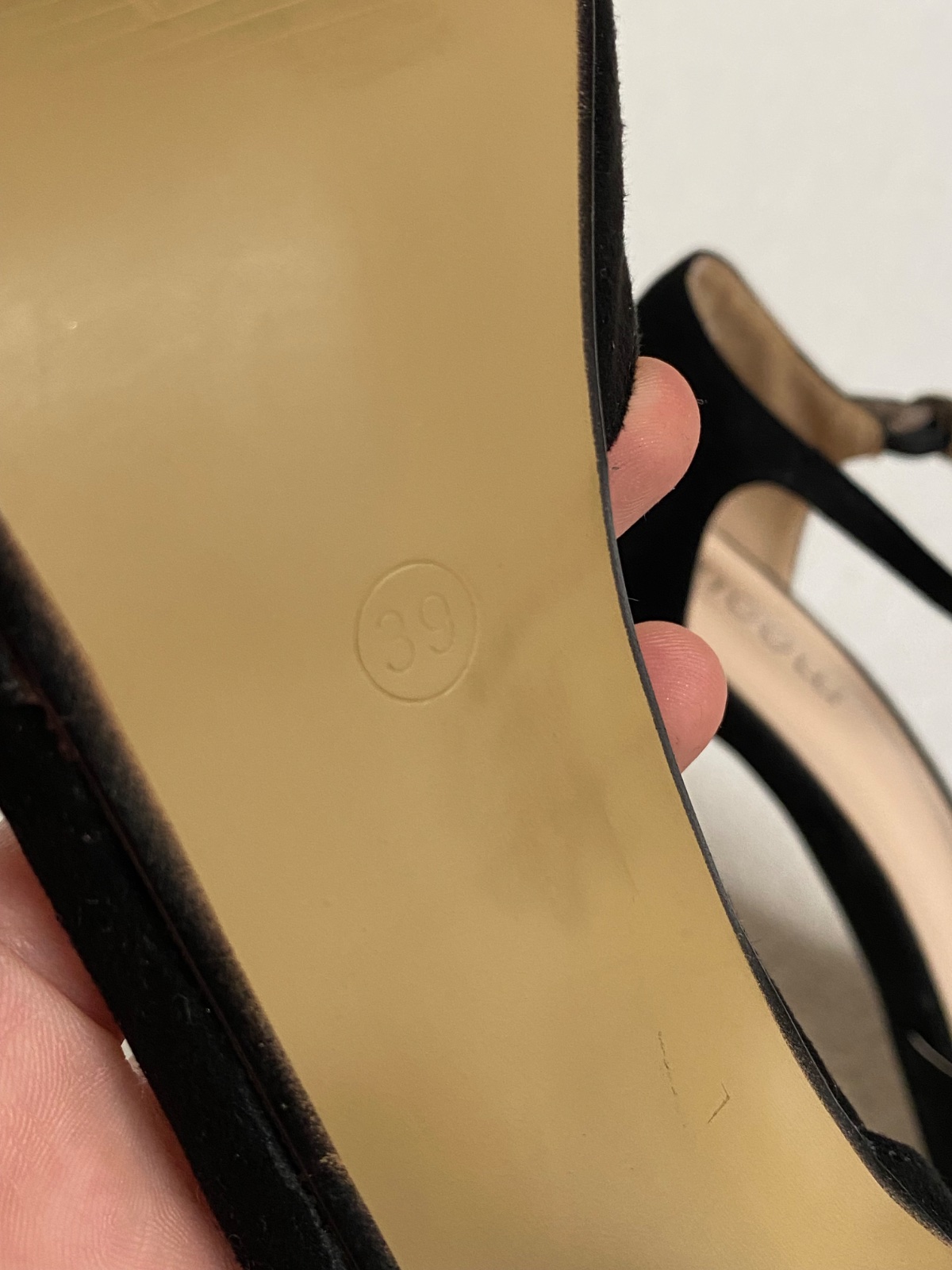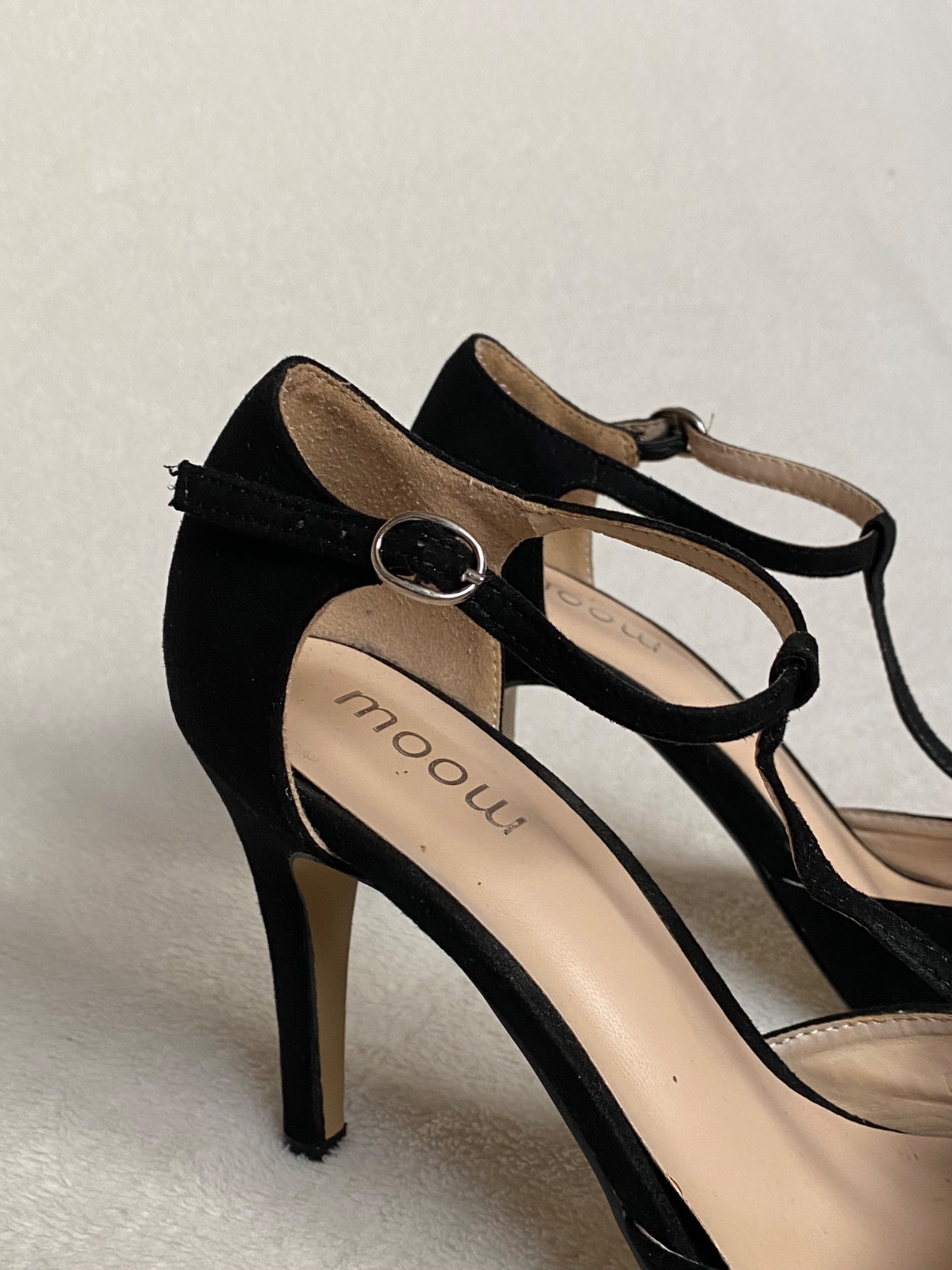 Pár krát obuté čierne semišové lodičky značky Moow. Veľkosť 39.