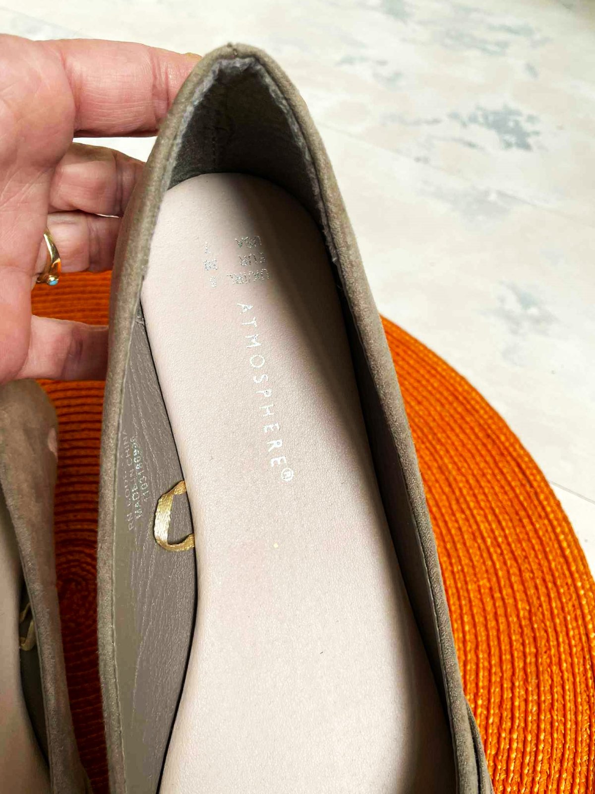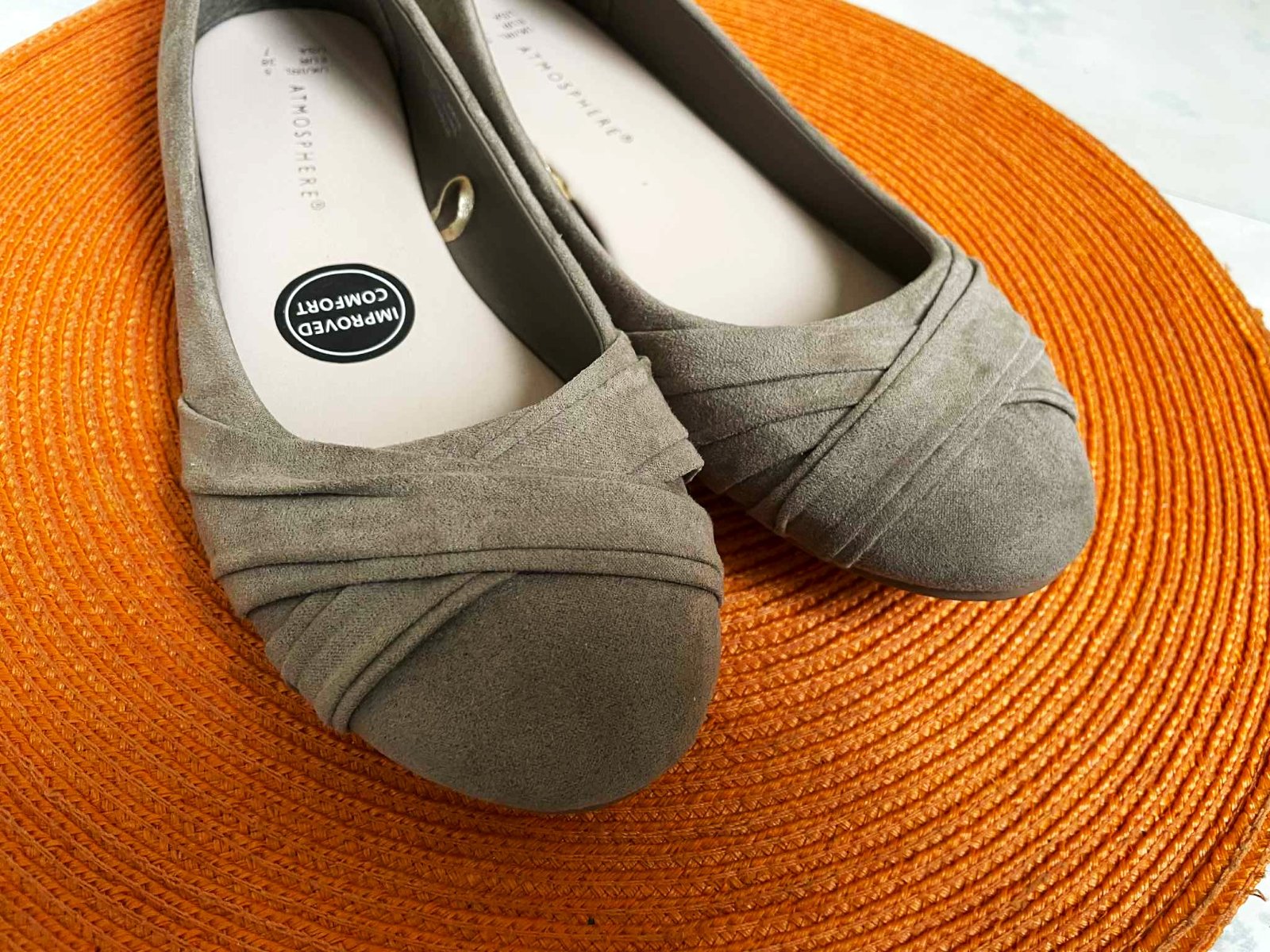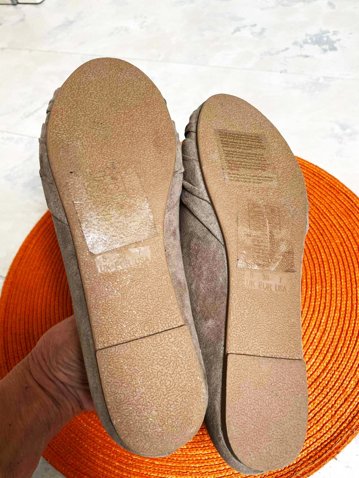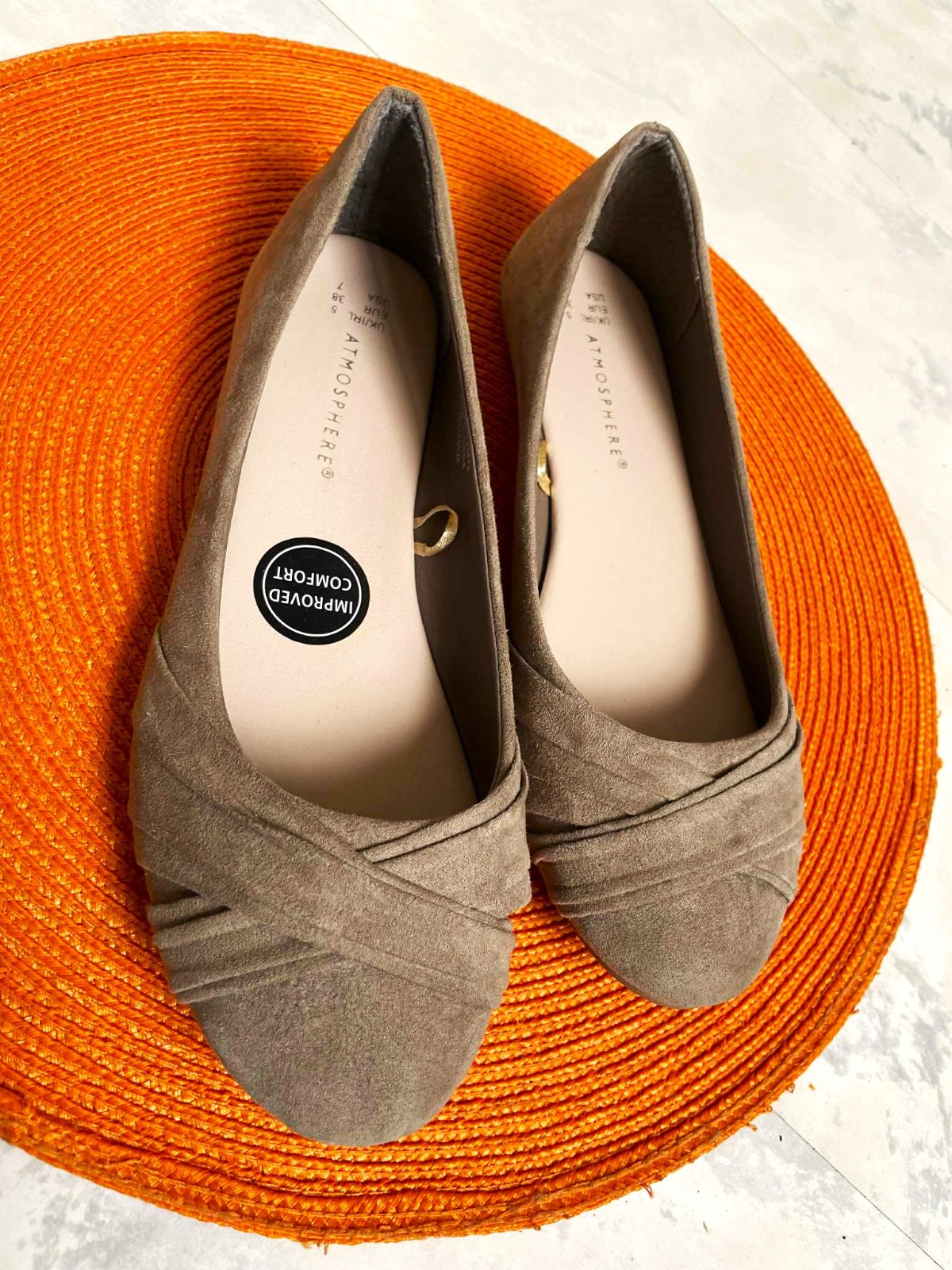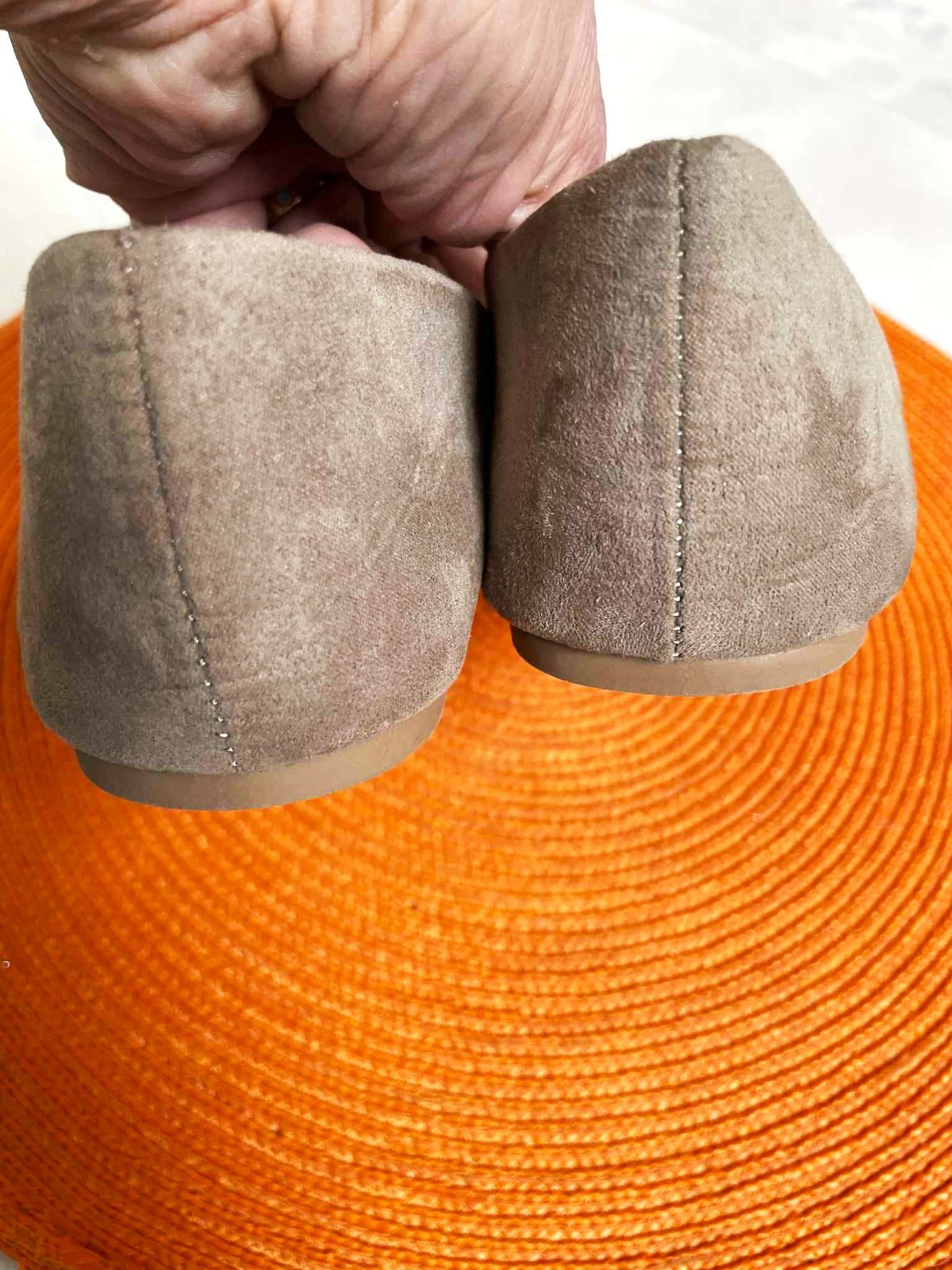 min. nosené pohodlné balerínky v studenom odtieni bledohnedej,umelý látkový semiš,dobre sa čistia,vn.dlžka = 24 cm