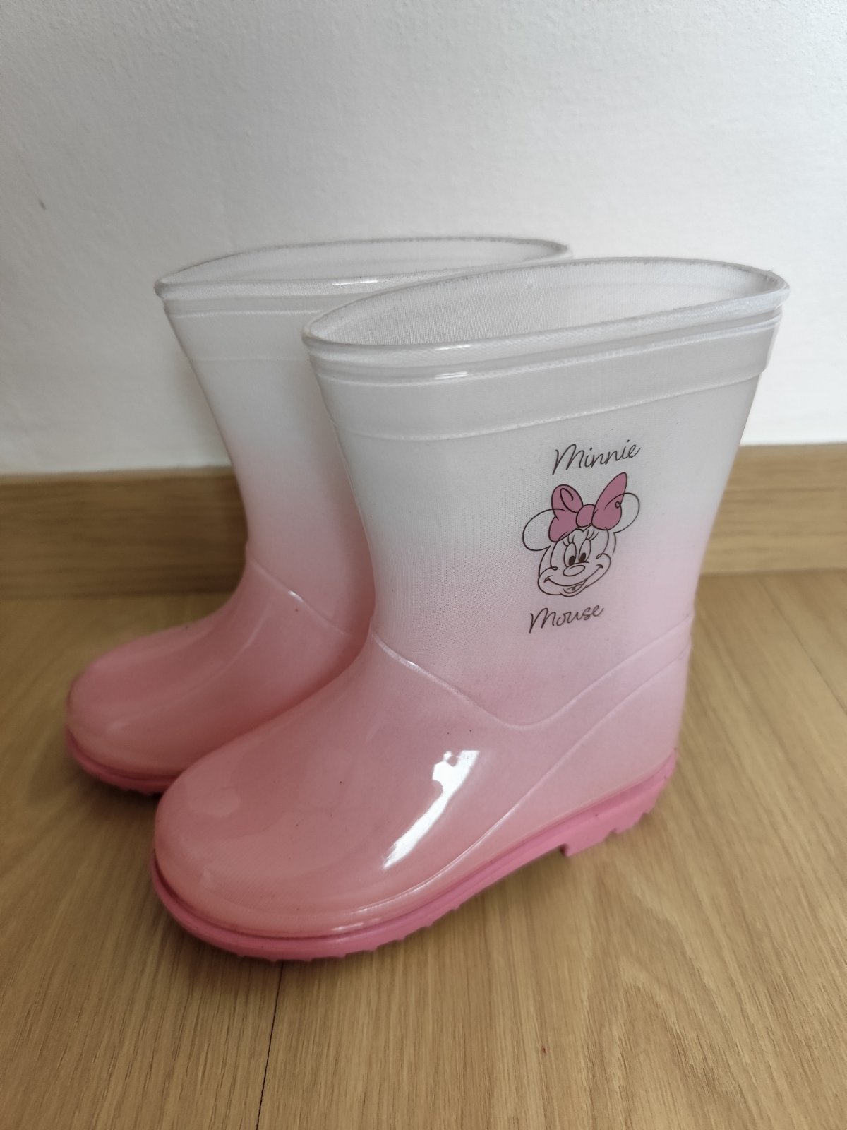 Dvakrát obuté gumáky s motívom Minnie mouse, dcéra ich rýchlo vyrástla, top stav, veľkosť 22/23, kupované v pepcu, rozmery: