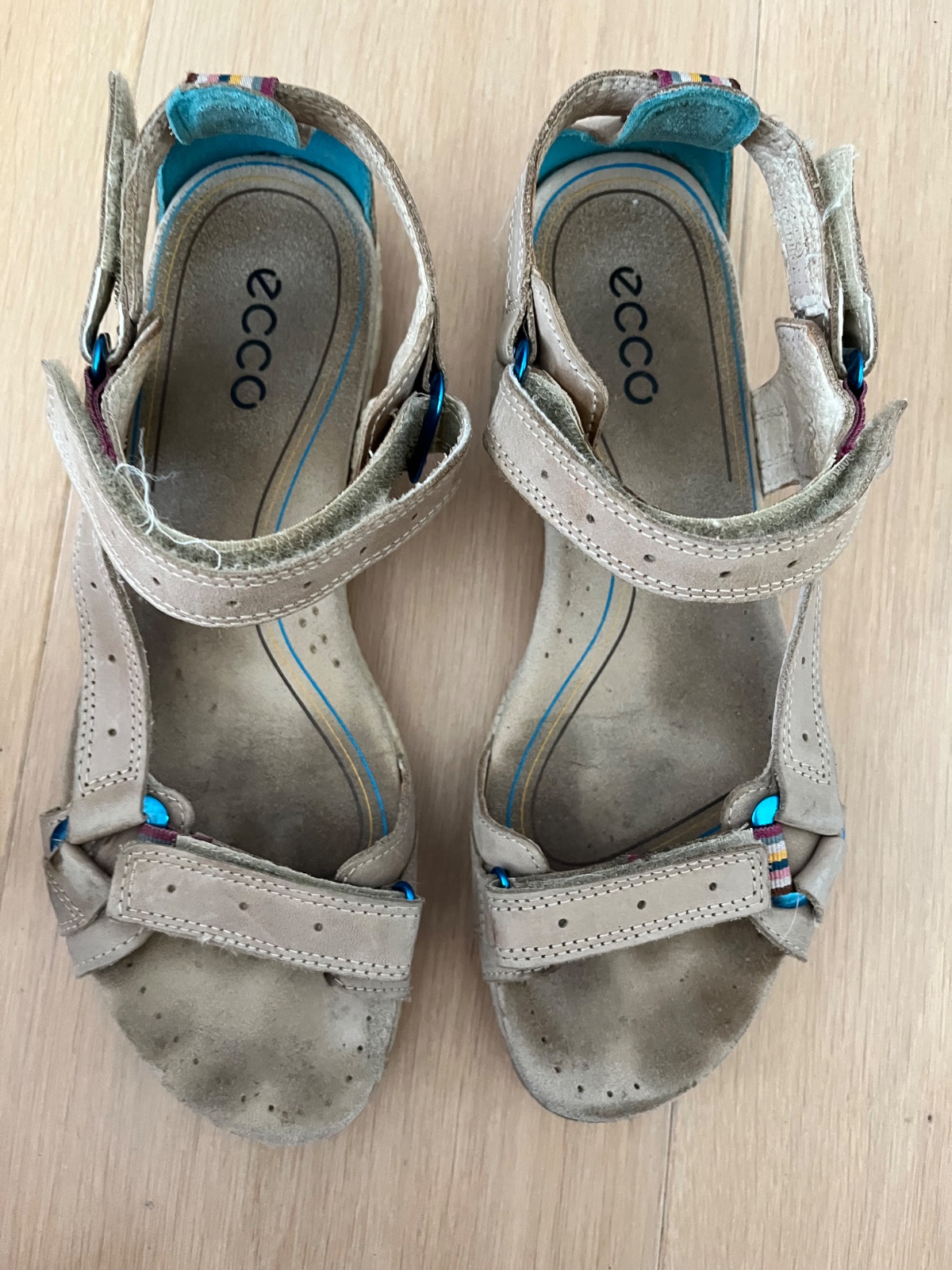 Kvalitné veľmi pohodlné sandále ECCO veľkosti 39. Nosené jednu sezónu. Kozéné, mierne vyvýšený opätok.