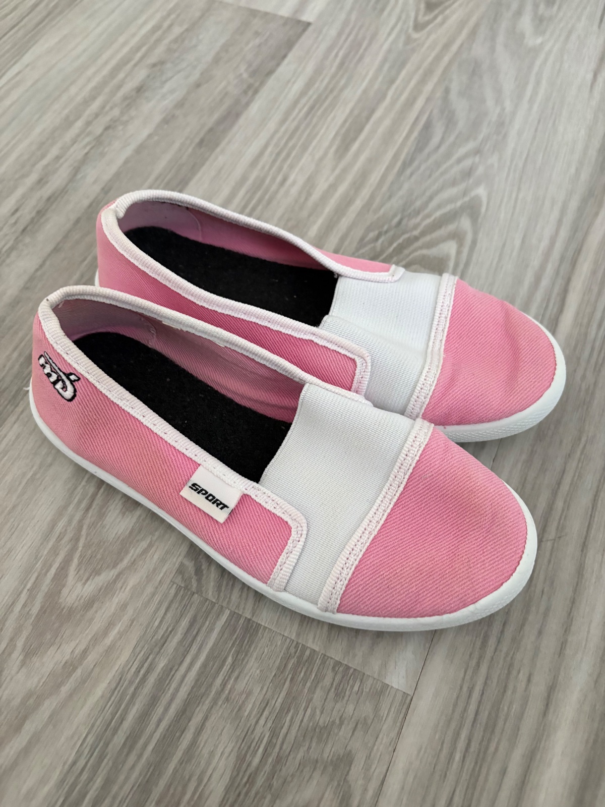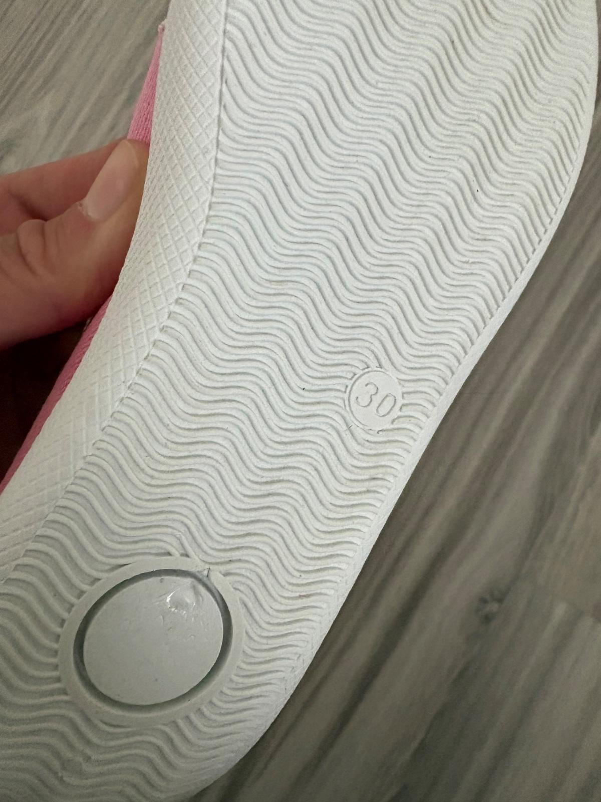Dievčenské klasické cvičky svetloružovej farby vhodné na telesnú výchovu, tanec alebo halový šport. Materiál: textil, guma. Vnútorná dĺžka cca 19 cm. Vo výbornom stave, podrážka nevyšúchaná, s p...