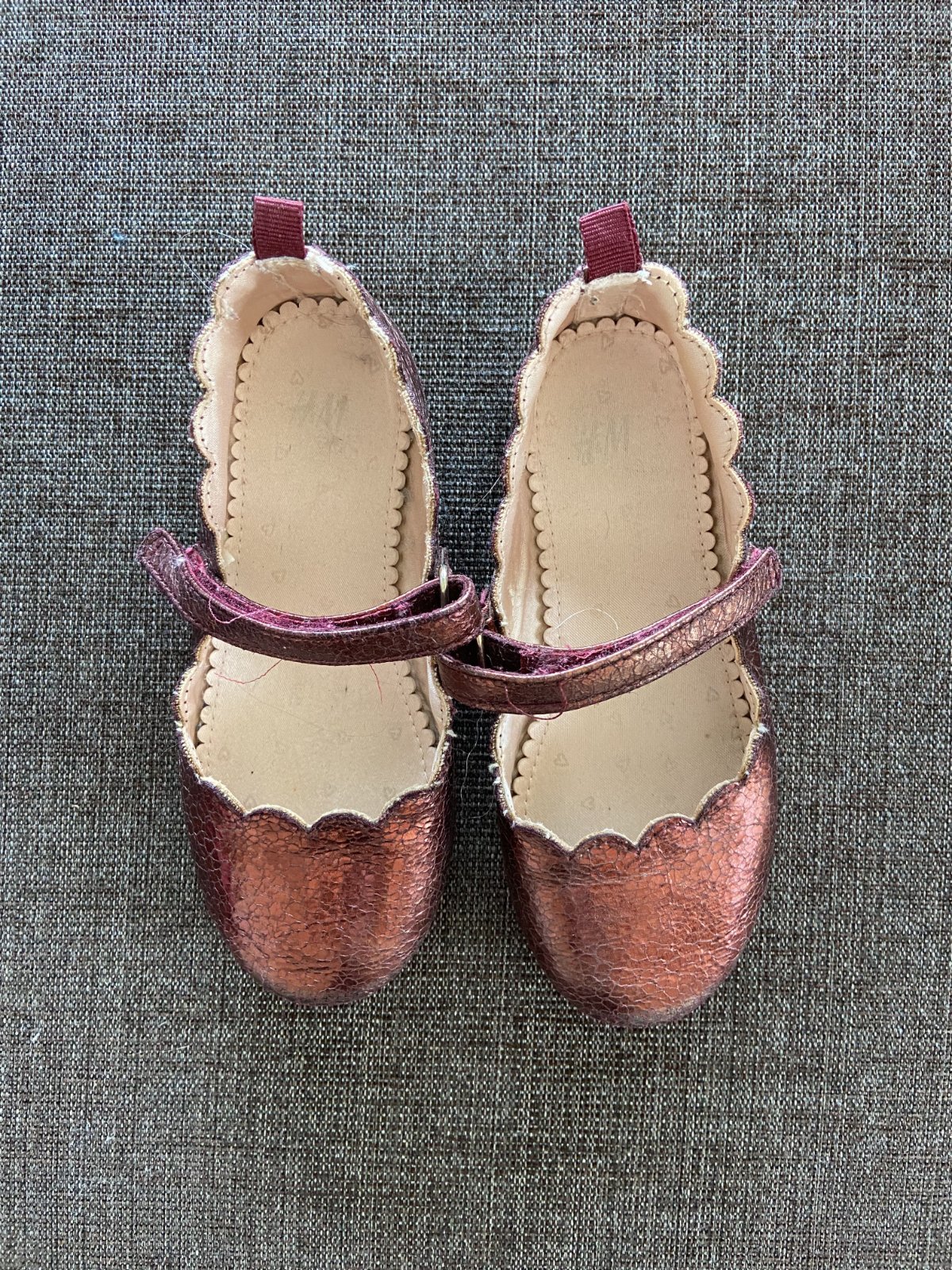 Prekrásne balerínky v kovovolesklej bordovej farbe, ideálne na Vianoce. V peknom nosenom stave, vpredu a vzadu smerom ku podrážke jemne ošúchané, ale pri nosení to moc nevidno. Ešte spravia parádu pri vianočnom stole :) Cena bez pošty