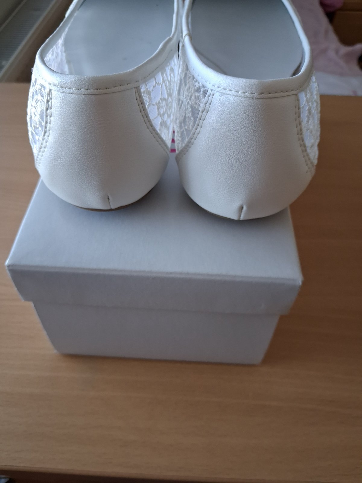 Ponukam biele baleriny,velkost 41,obute som ich mala len 1x na svadbe 🙂