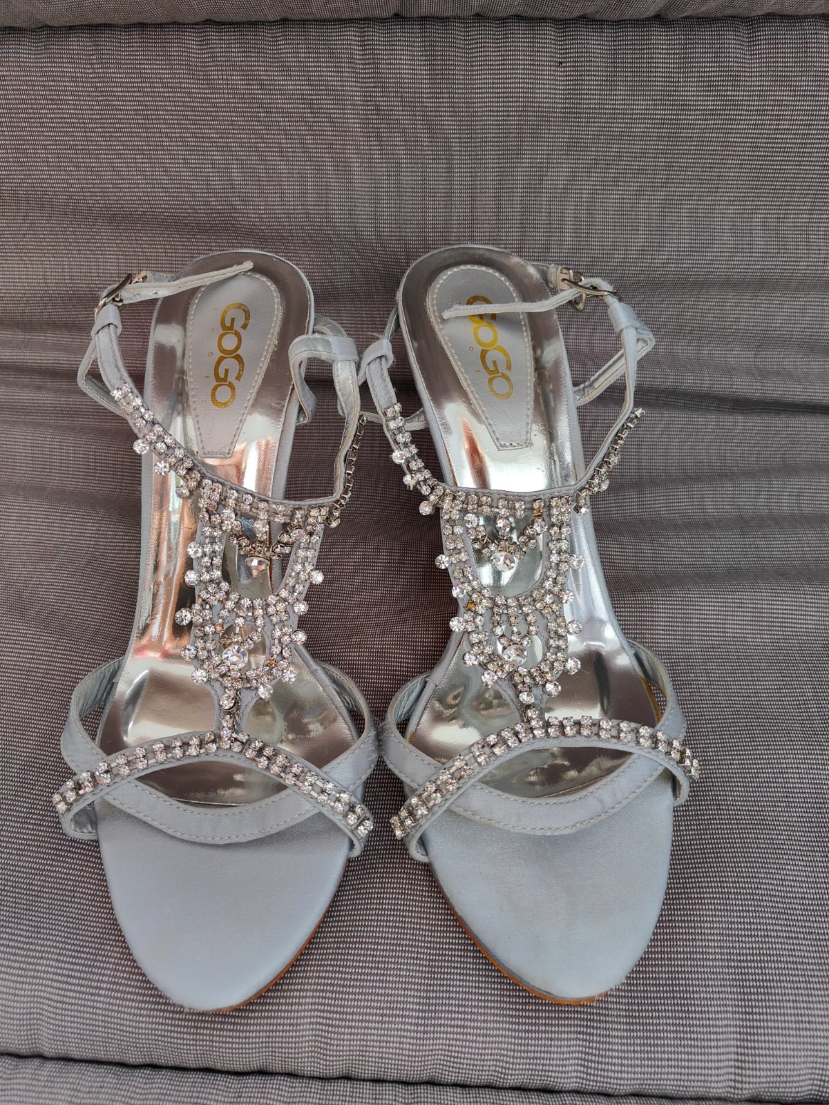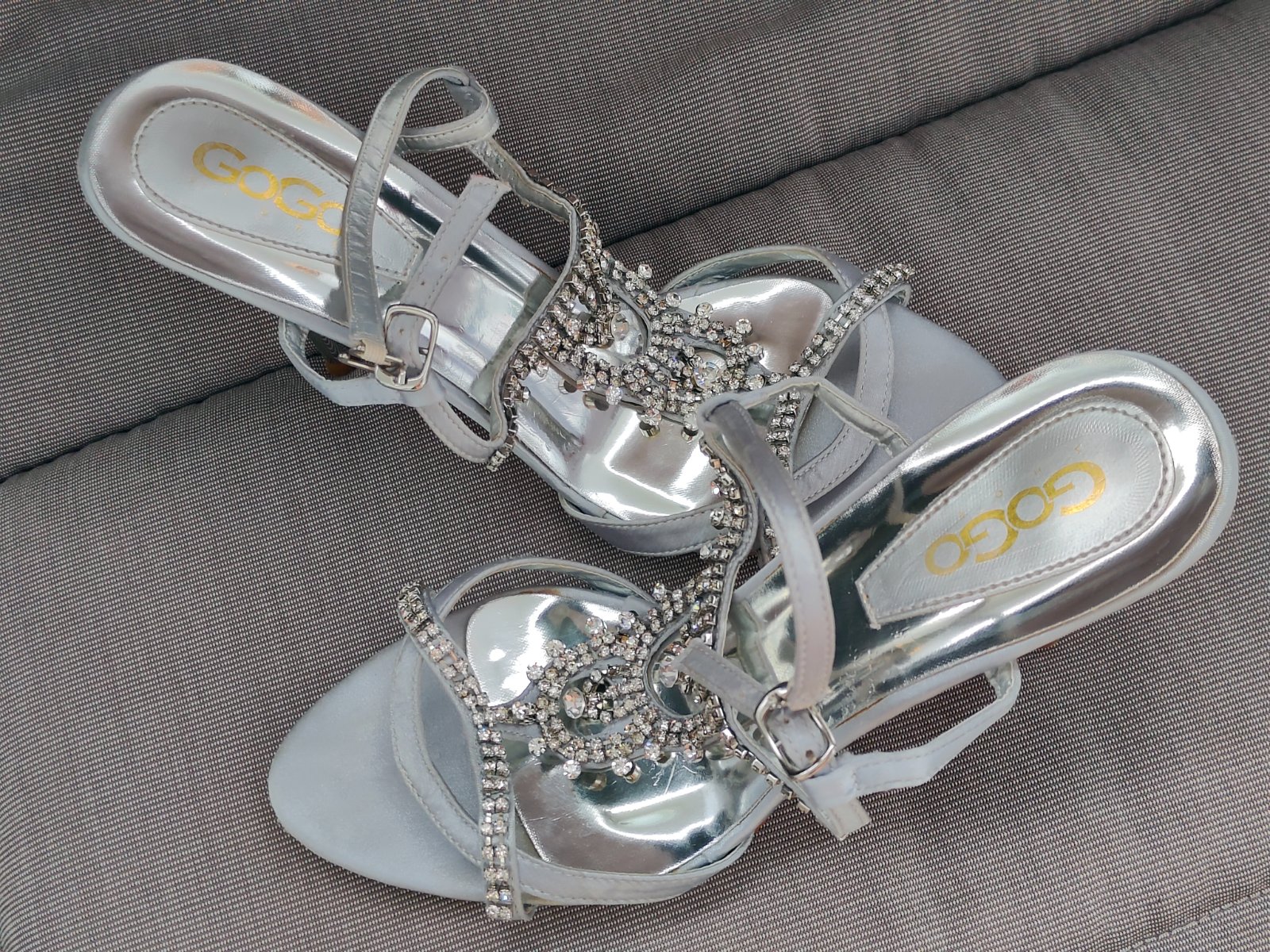 Sandále so štrasovými kamienkami, zapínajú sa na háčik. Veľkosť: 39, Výška podpätku 11cm. Veľmi dobrý stav, bez schodených a pätníkov a škrkancov. Obuté 1x na stužkovú. Cena:18€+poštovné, v rámci BA osobný odber dohodou.