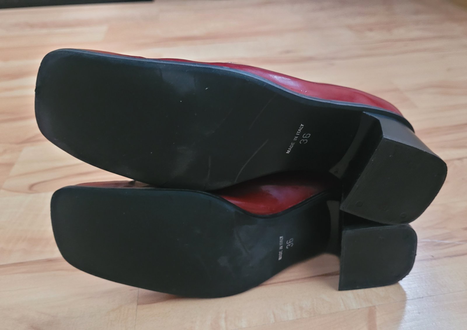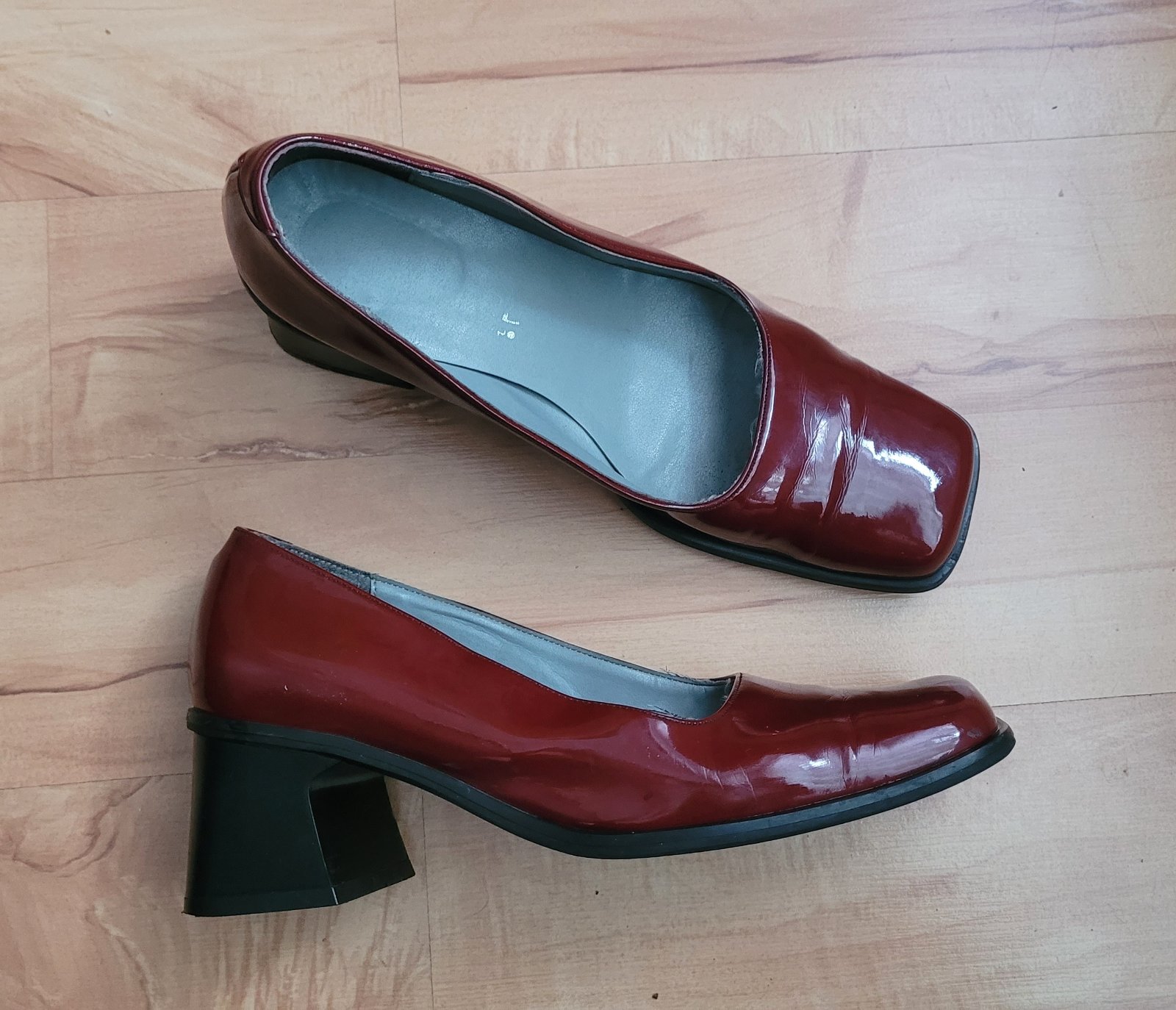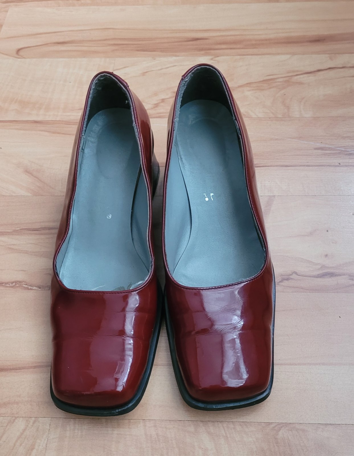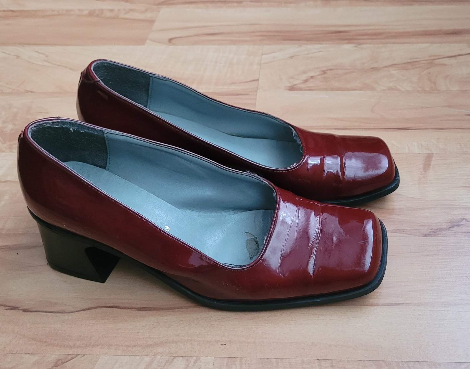 Štýlové talianske lodičky v trendy burgundy fabe, raz obuté, kožená stielka, pohodlné vďaka širokému podpätku, veľkosť sedí