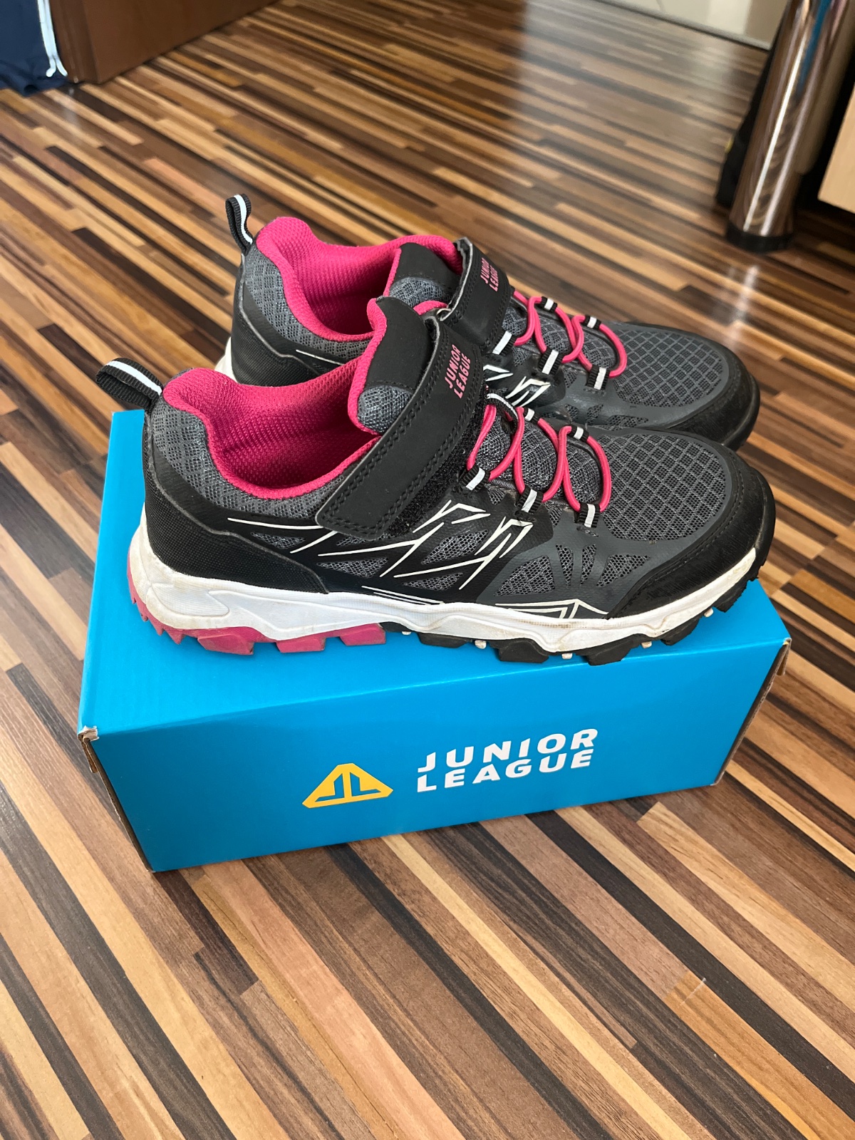 Pár krát obuté tréningové tenisky Junior league. Pekný stav bez poškodení, kúpené minule leto. Vnútorná dĺžka 23cm.Vložka sa dá vybrať.