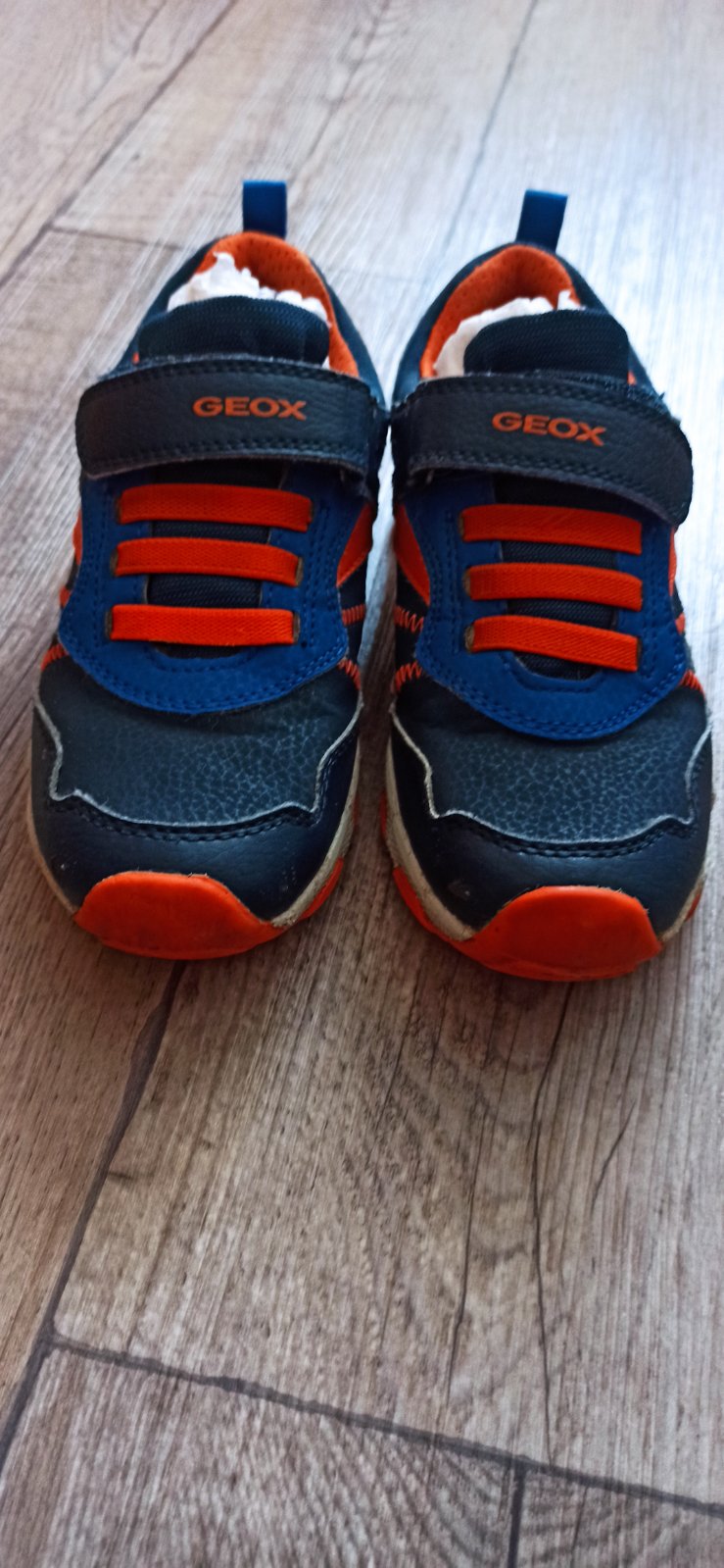 Predám chlapčenské trekingové tenisky zn. Geox. Trochu šuchnuté špičky a odlepená 1 špička. Suché zipsy držia. Vnútorná dĺžka Max 19 cm. Cena+ poštovné.