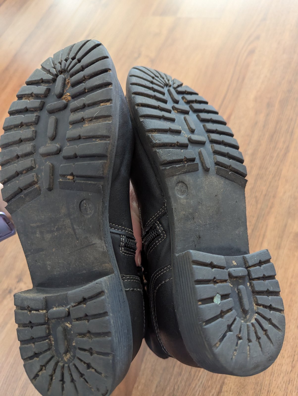 Zimné topánky nosené jednu sezónu na striedacku s inymi. Su ľahké. Špička ľavej je trochu zakopnuta ale pri nosení nevidno.