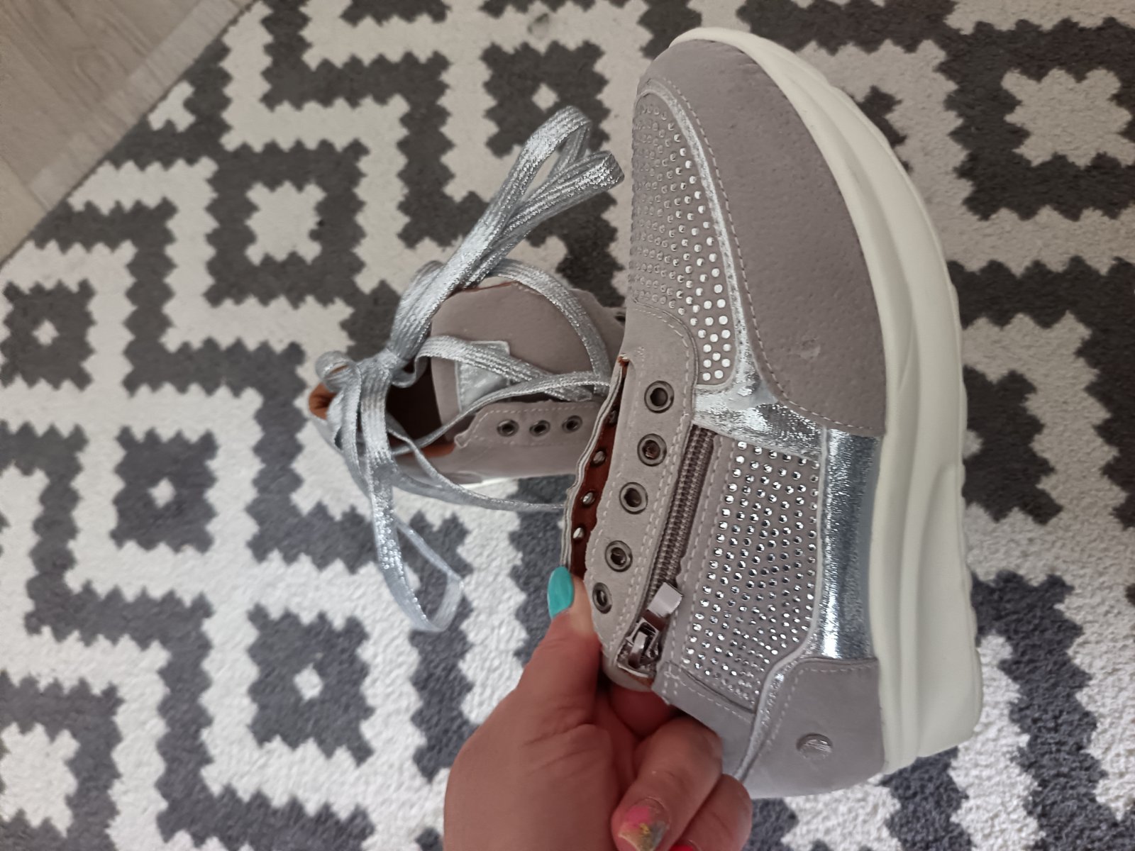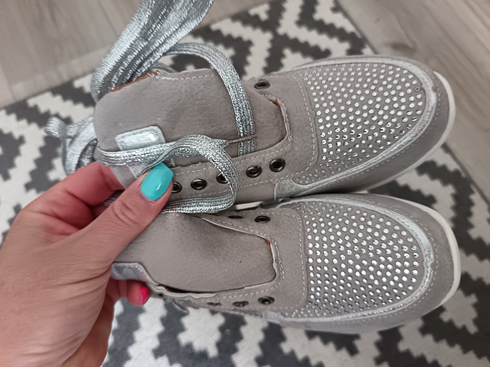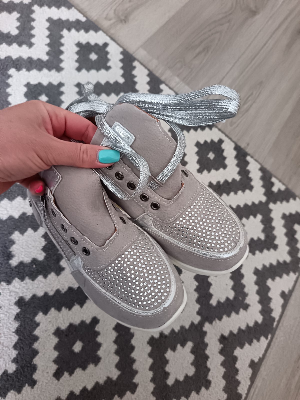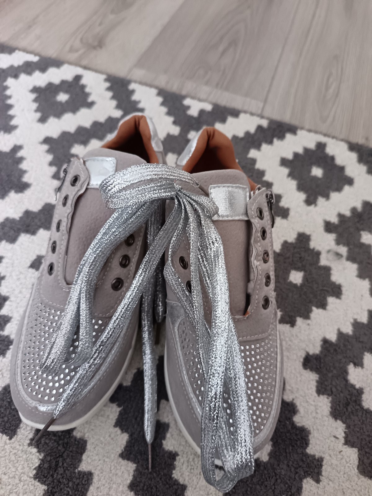 Farebné prevedenie: svetlošedá + strieborné perličky, strieborné šnúrky.