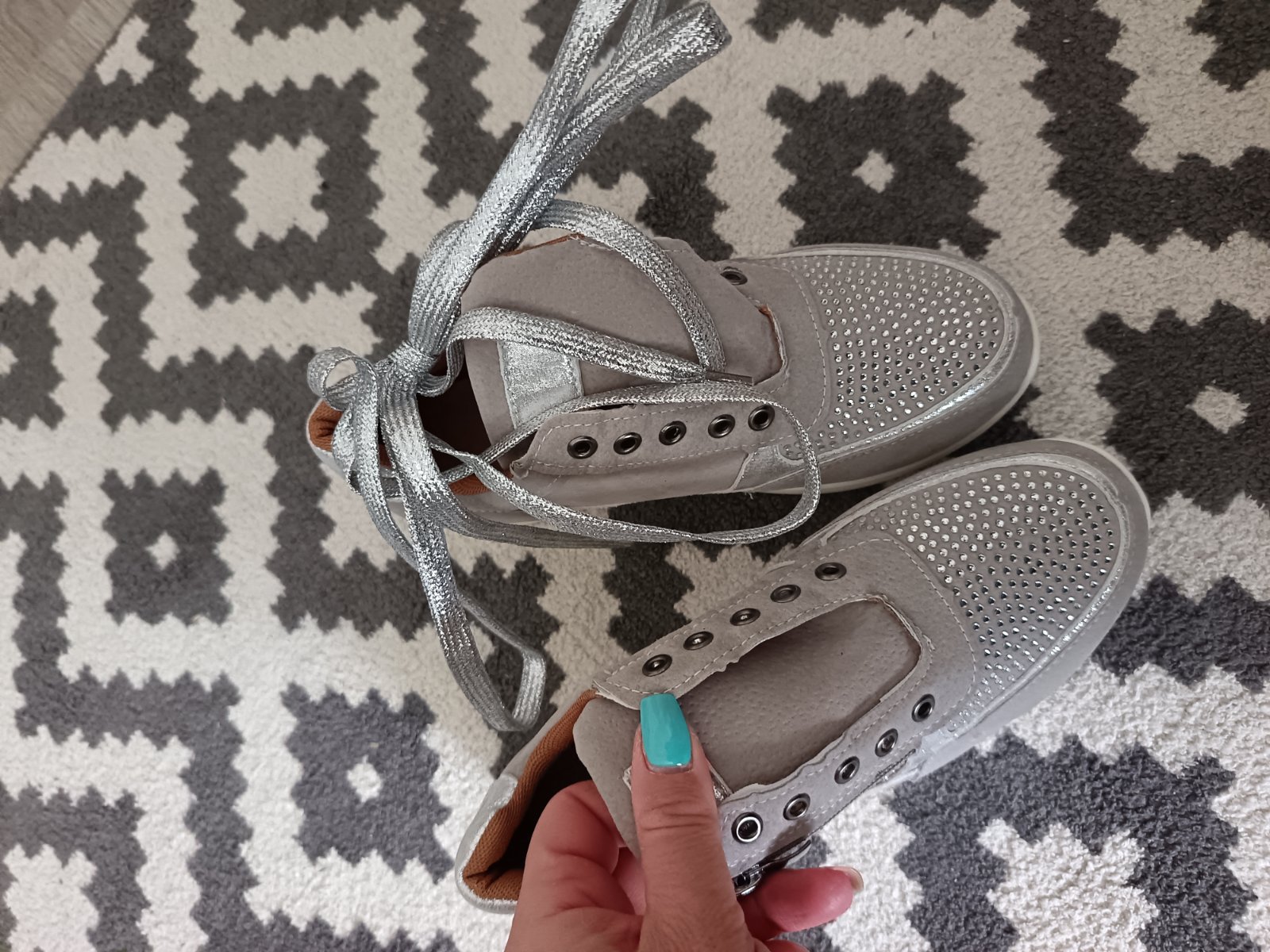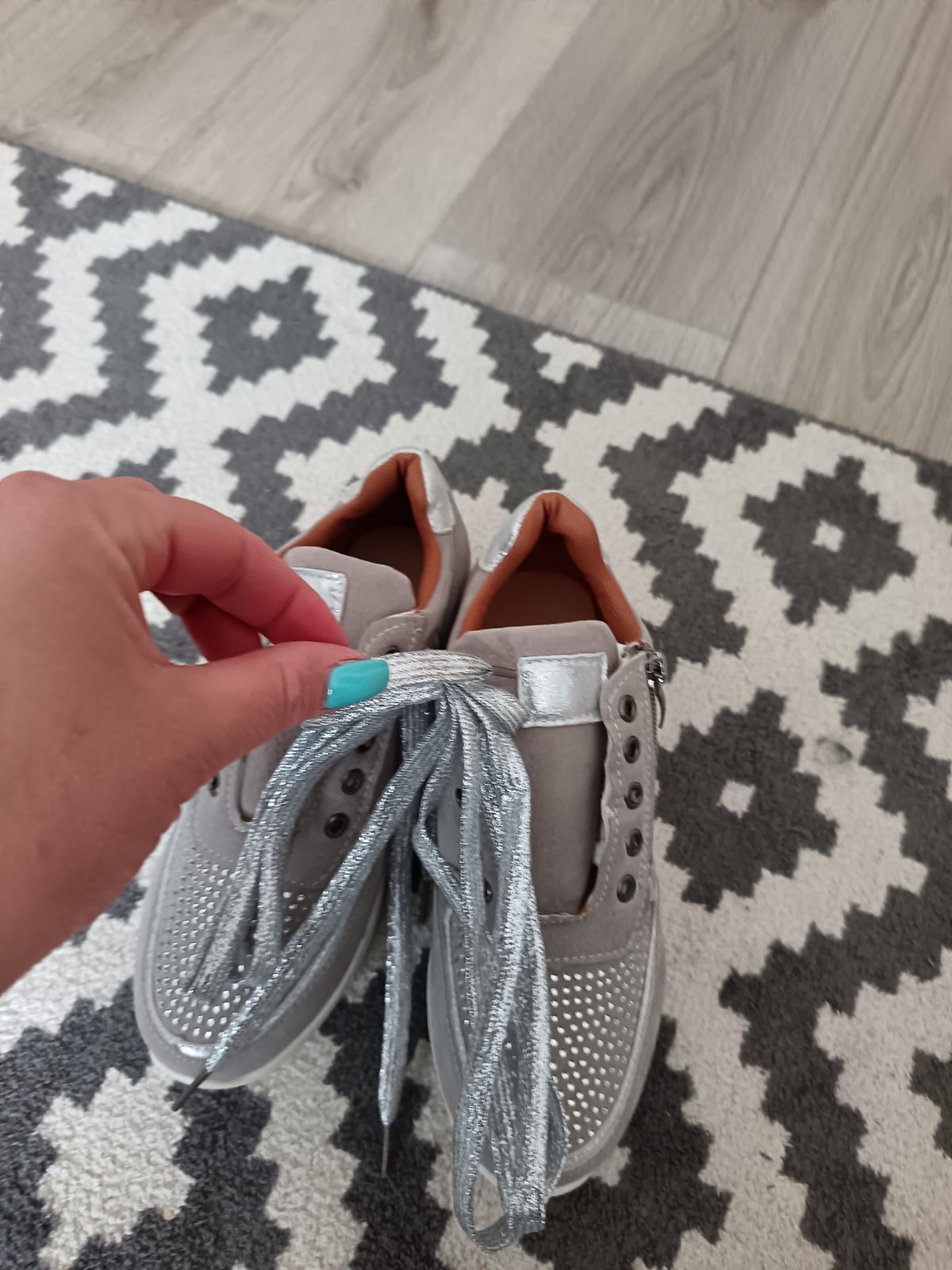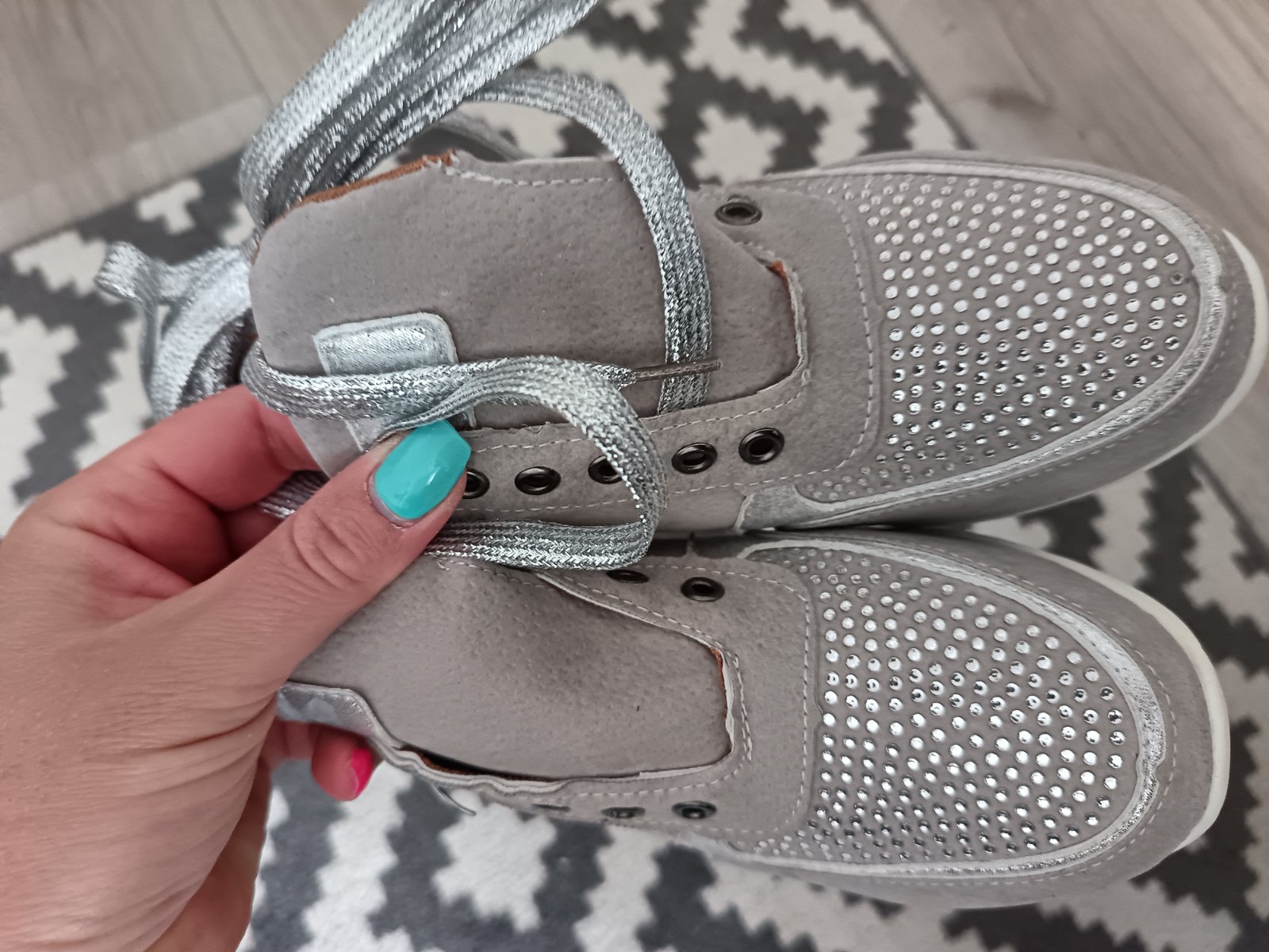 Farebné prevedenie: svetlošedá + strieborné perličky, strieborné šnúrky.