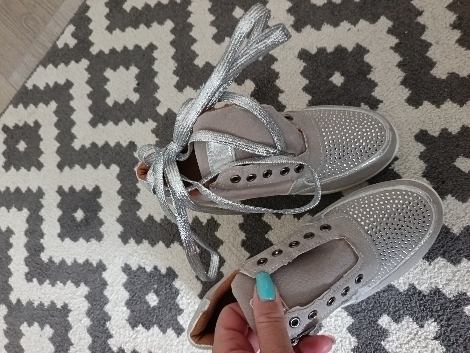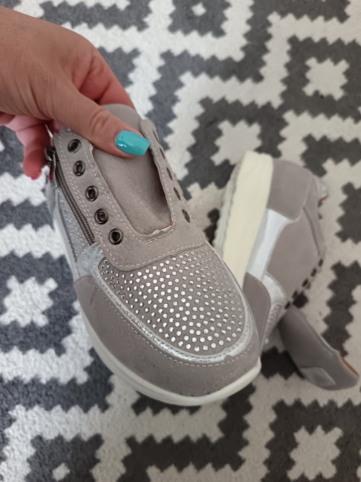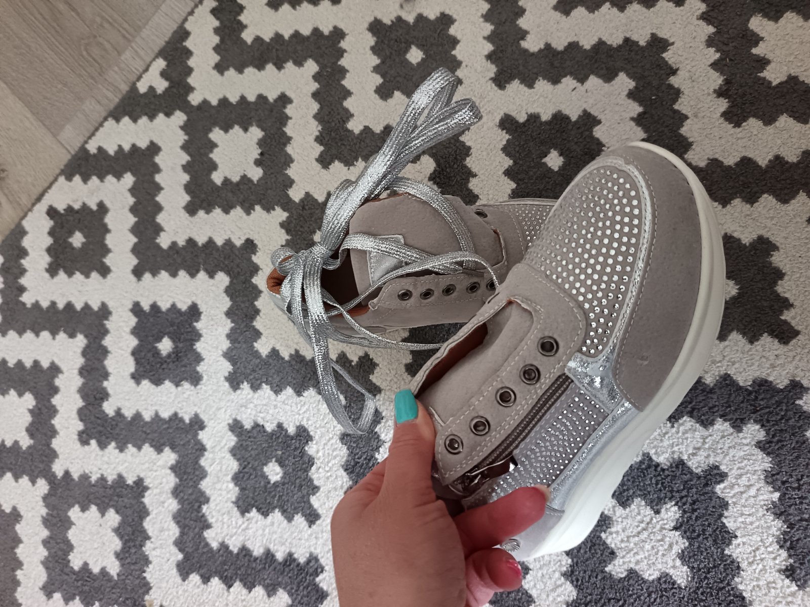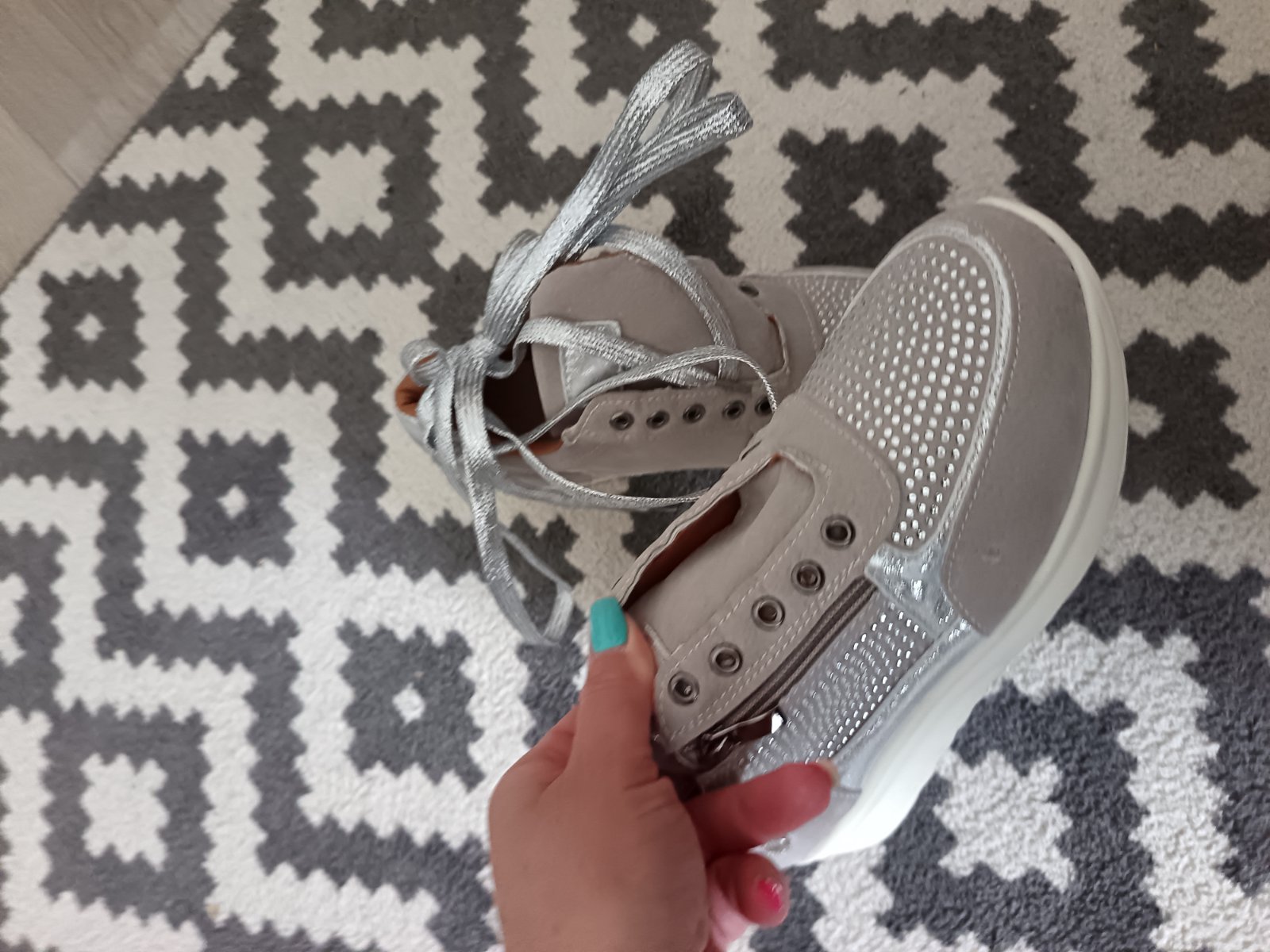 Farebné prevedenie: svetlošedá + strieborné perličky, strieborné šnúrky.