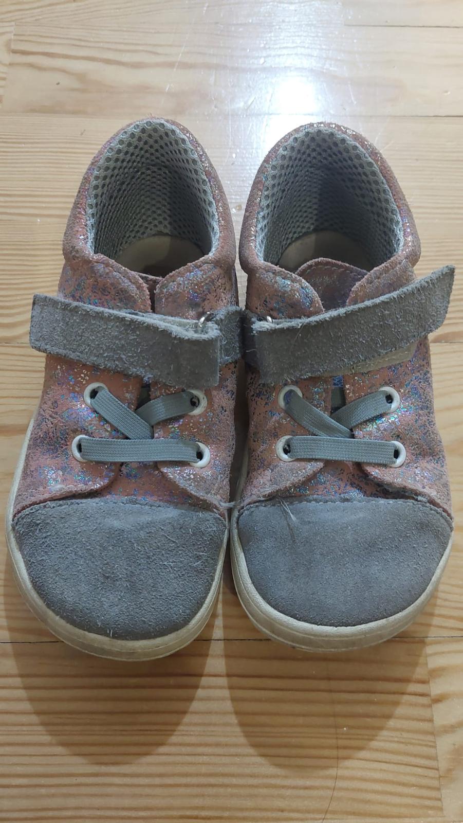 Barefoot kožené sandálky s trblietavý kvietkami. Vo veľmi peknom stave. Kvietky nie sú nikde zošúchané len sa to zle fotí. Je to klasická šírka, nie slim. Vd 18,4cm, vš 7,4cm