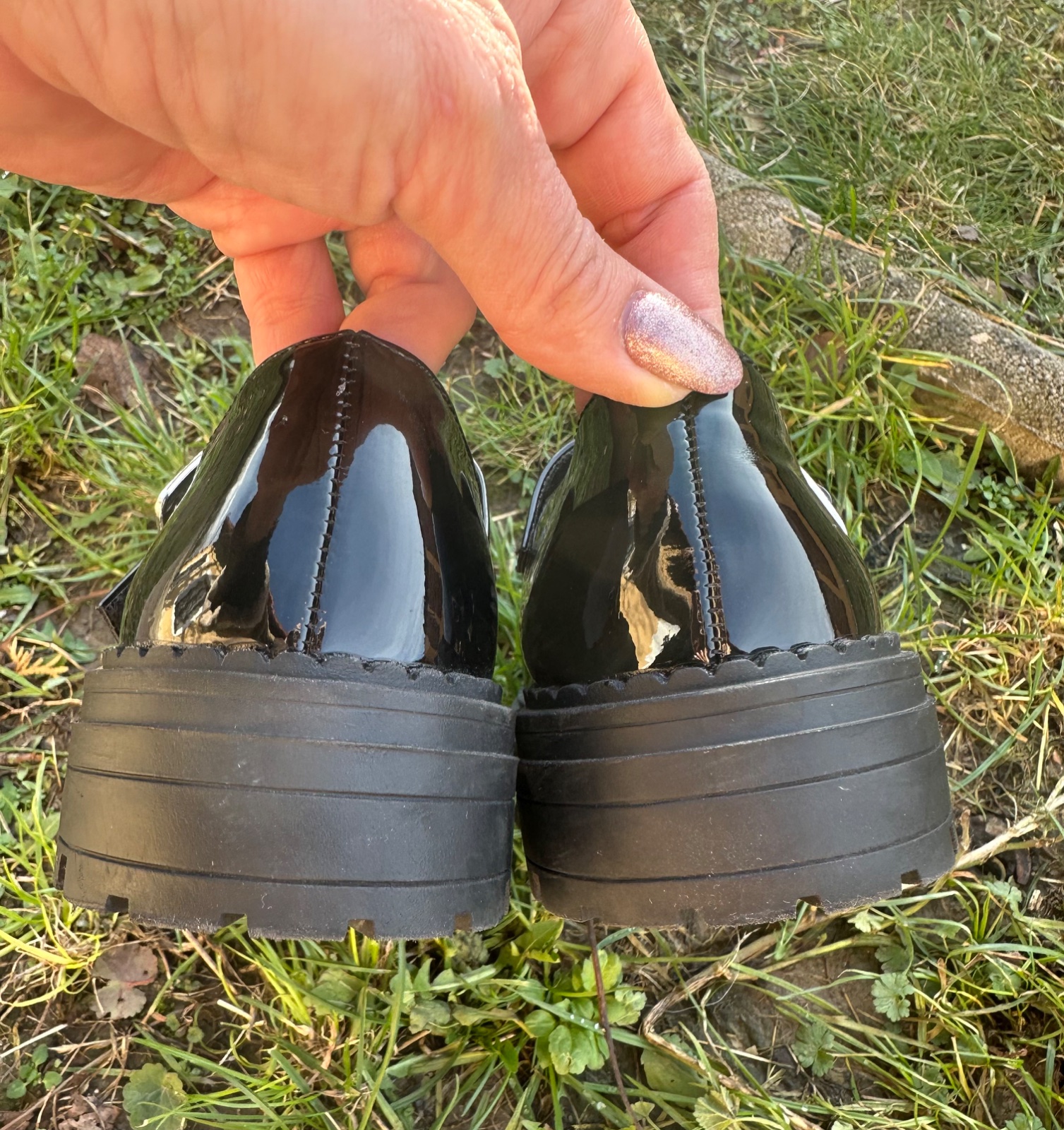 Možno tri krát obuté. Pracka je ozdobná, zapína sa na suchý zips, takže rýchle a bezproblémové obúvanie. Vnútorná dĺžka je 23 cm.