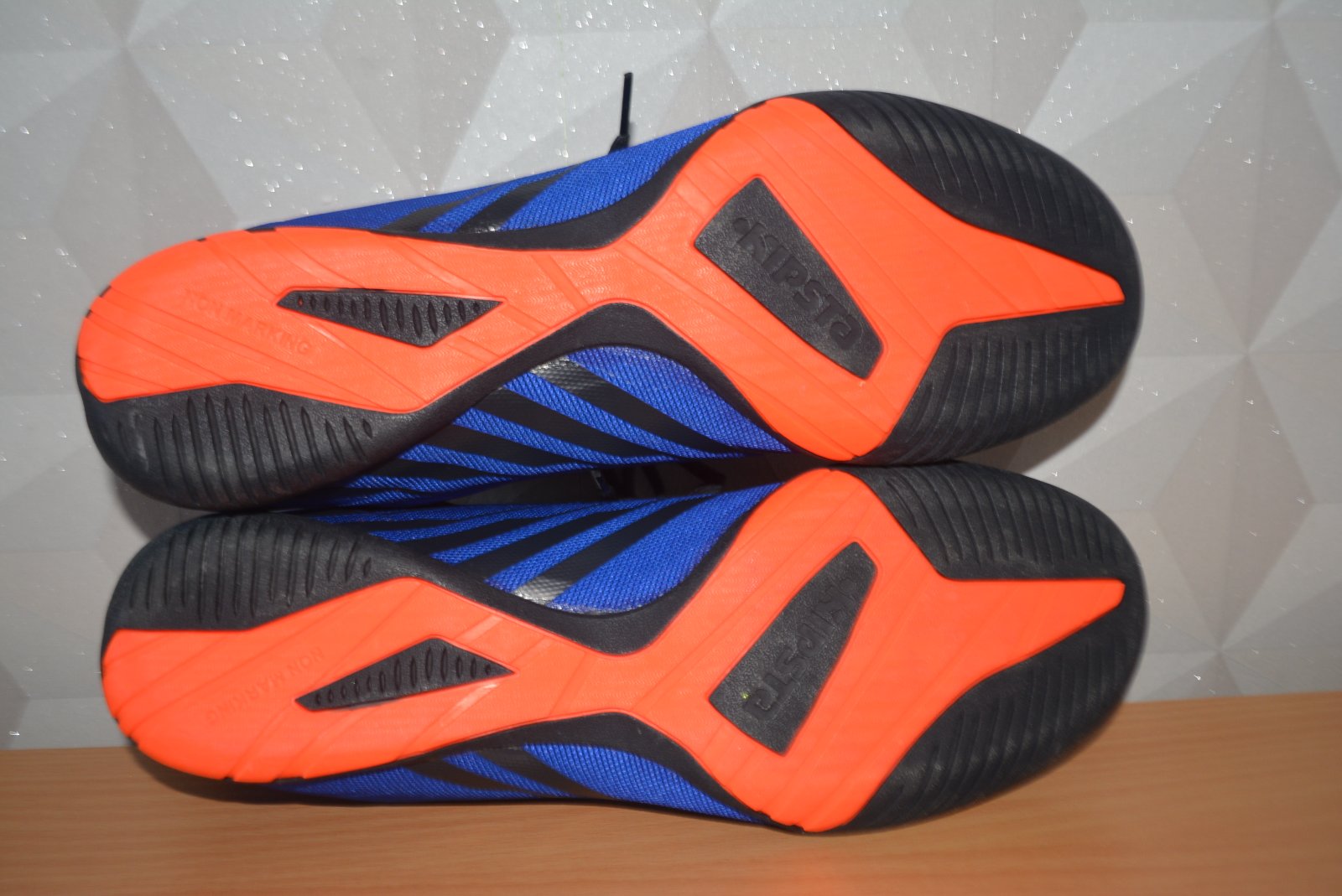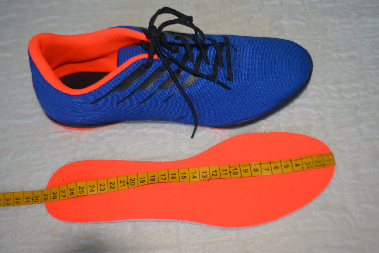 Futsalová obuv clr 300 modro-oranžová, veľkosť označená 45, sedia na 44,5 - vnútorná dlžka 28cm.