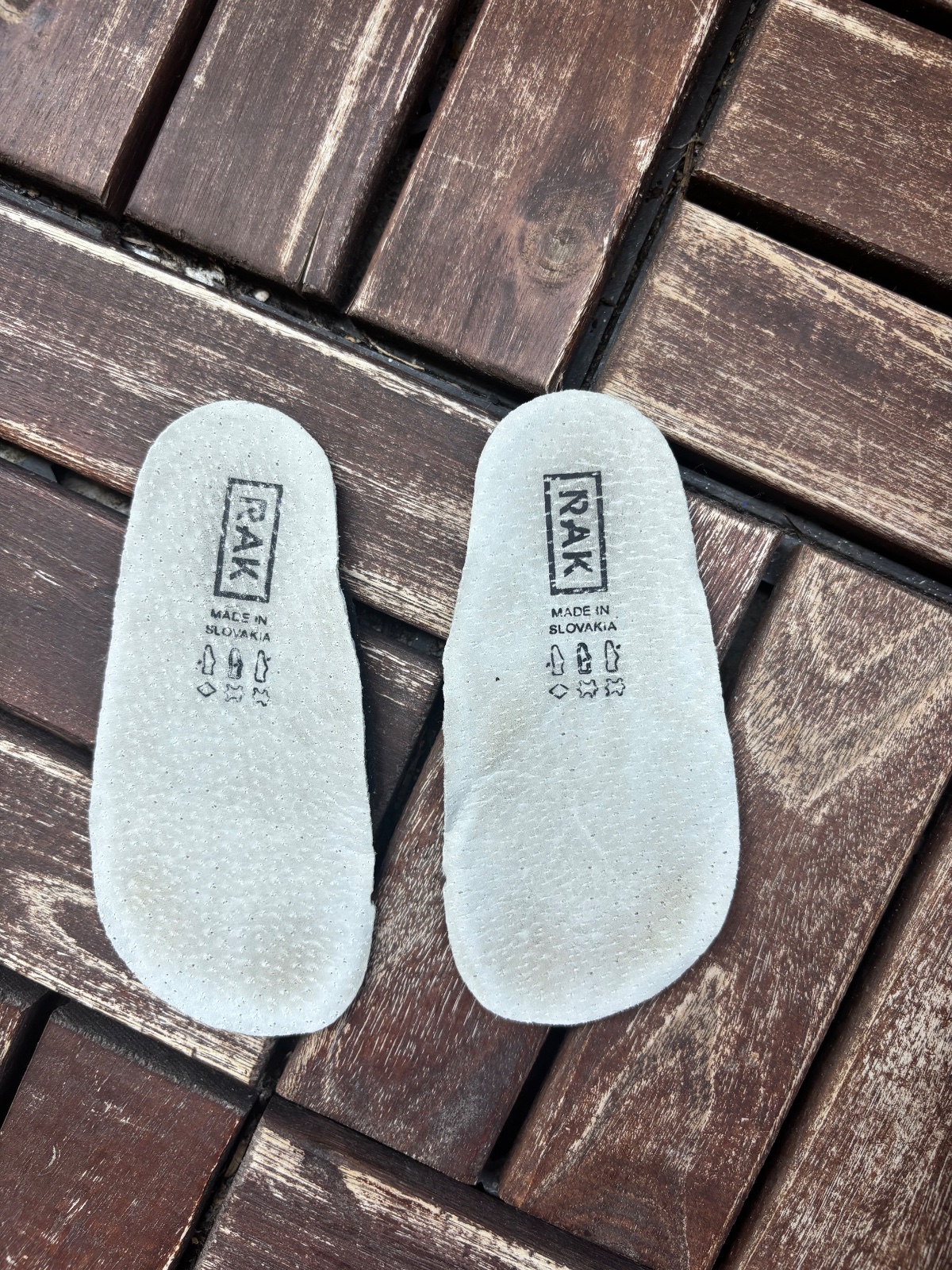 Znacka rak,nosene cca mesiac vonku,vycistene prostriedkom speci na topanky,niektore flaky z nevysli uplne-vid foto onraje topanok,podrazka,trosku jazyk,nebrani to vo funkcnosti a ani poriadne na podhlad.