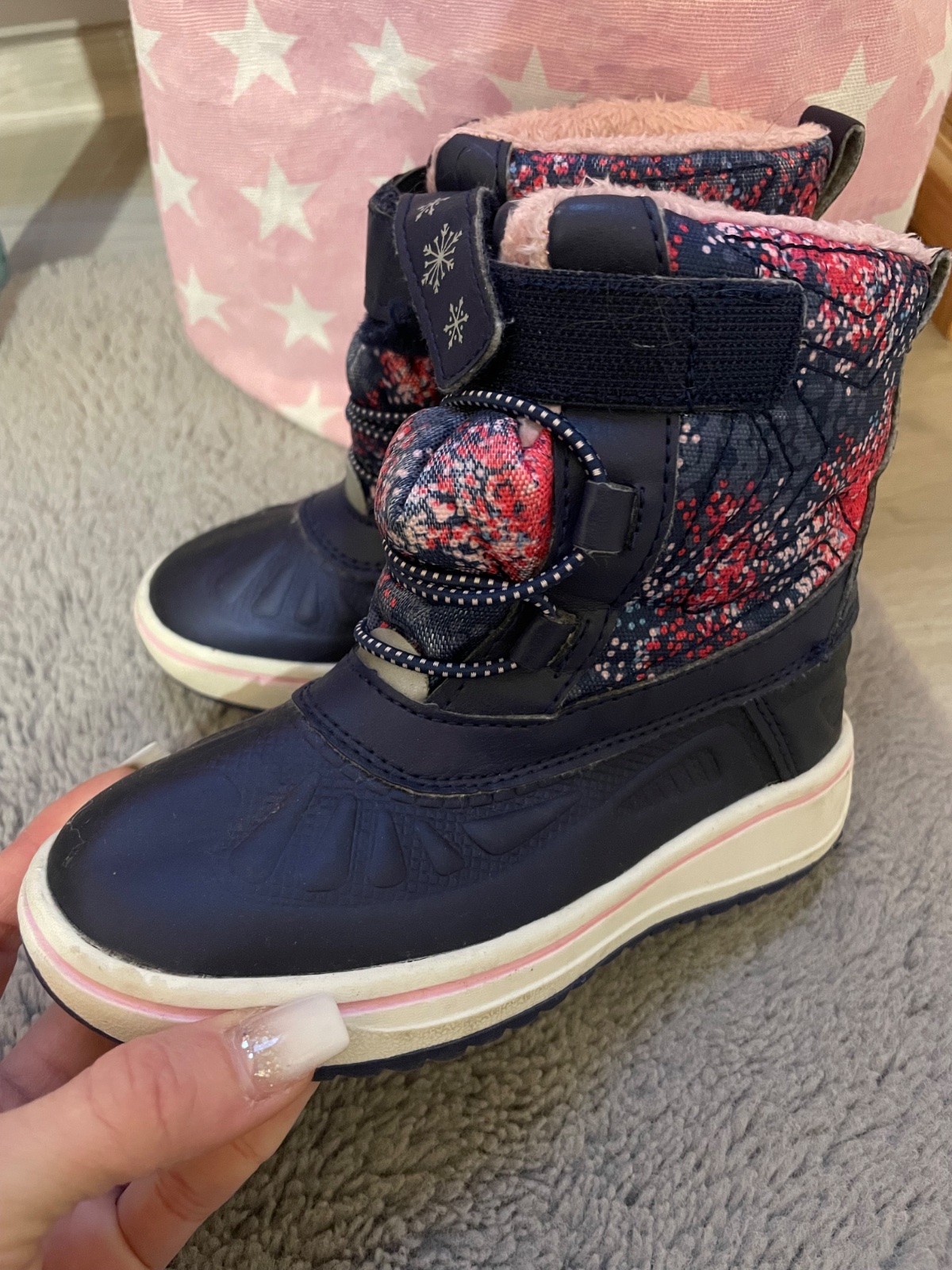 Nosené 1 zimu, zachovalé, nemajú zodraté podrážky. Chyby krásy - látka sa zatrhla na suchom zipse zapínania, trocha šuchnuté špičkh, ale sú plne funkčné, nepremokavé. Vhodné na sánkovačku, aj do šk...