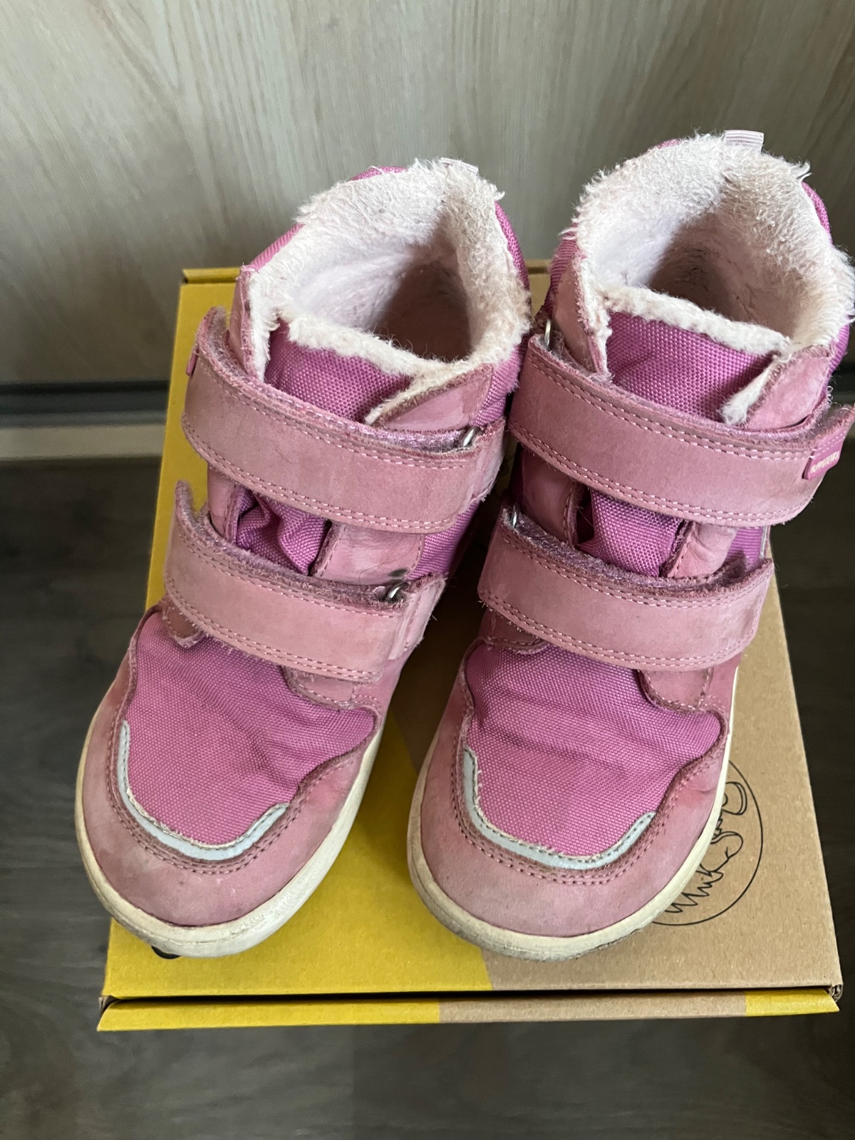 Topánočky veľ.32 sú nosené minimálne. Bohužiaľ už na fotkách vidno že sú z každej strany obité. Topánočky sú super aj do suchej aj do mokrej zimy. Vložky sú nové ani raz nenosené. Napriek vizáži, k...
