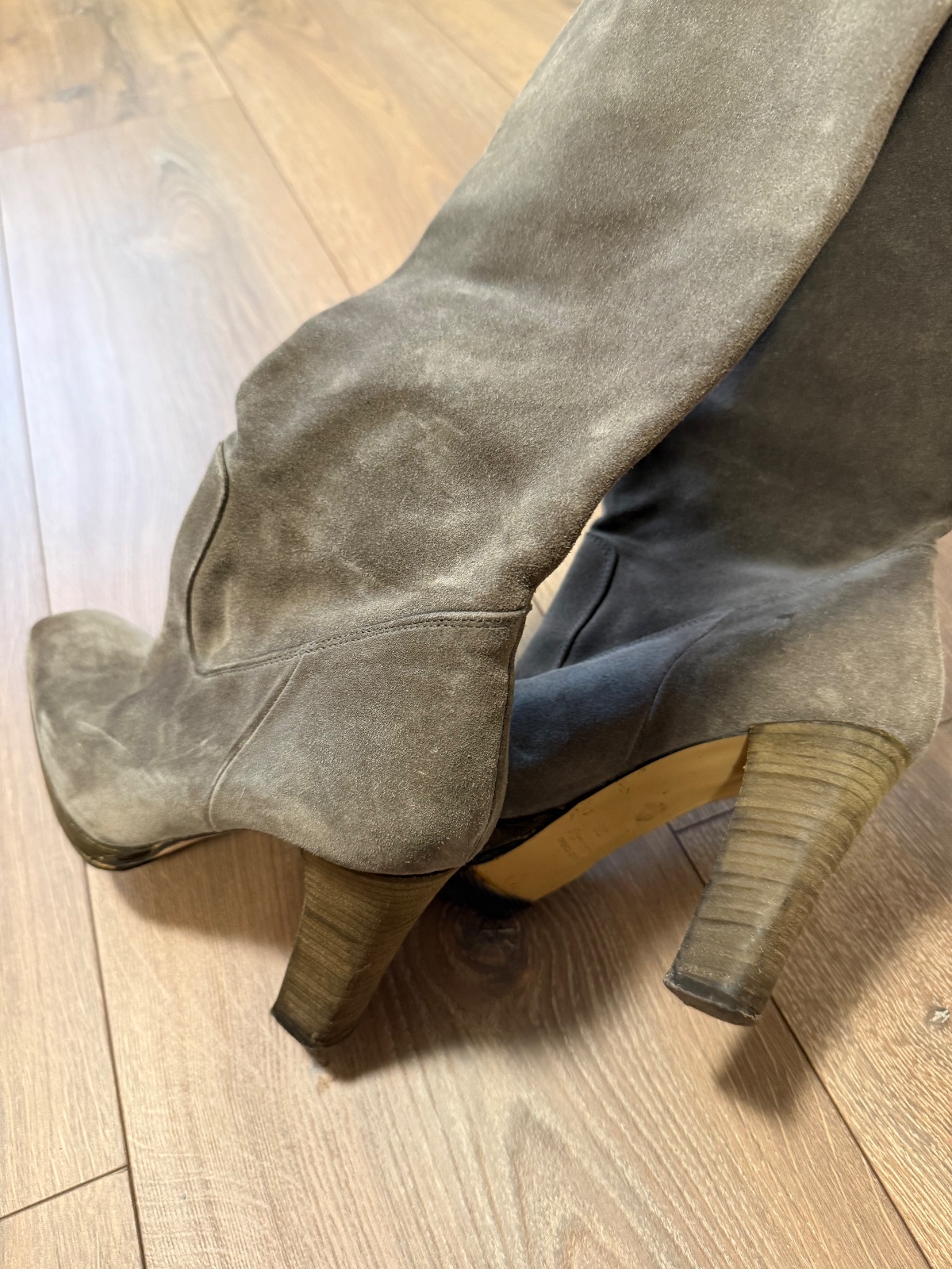 Predám veľa nosené čižmy z brúsenej kože. Podrážka bola podlepovaná u obuvníka. Pre nenáročnú. Kupované v Taliansku, PC 299€. Farba veľmi pekná šedo-hnedá.