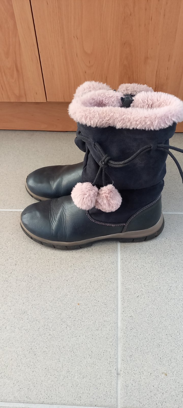 Tmavomodré čižmy s kožušinou veľ.35
