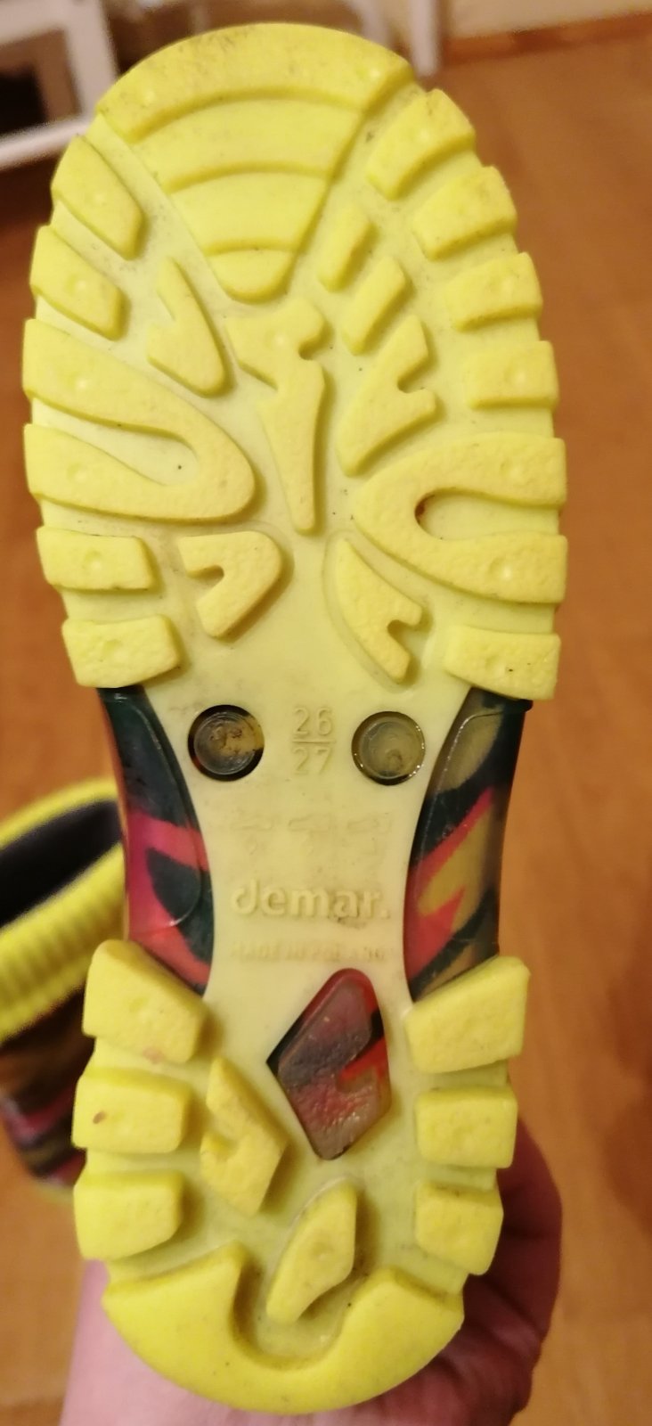 V top stave, veľmi málo používané gumáky Demar, zateplená vložka, veľkosť 26/27, v zadu podpísané.