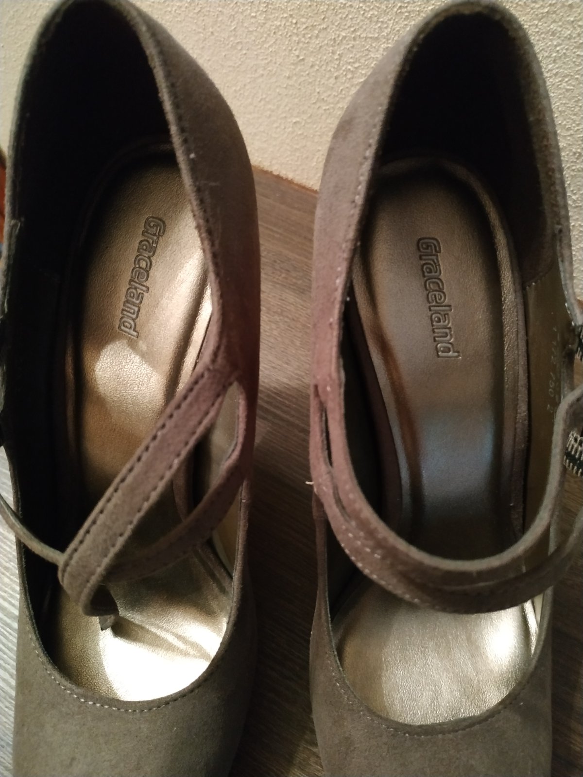 Ponúkam tieto topánky lodičky zn. Graceland, bledohnedej béžovej farby, materiál semiš, podrážka s podpätkom imitácia korku, raz obuté, veľkosť 37, vnútorná dĺžka 24cm, výška podpätku 10cm. Cena 8,...
