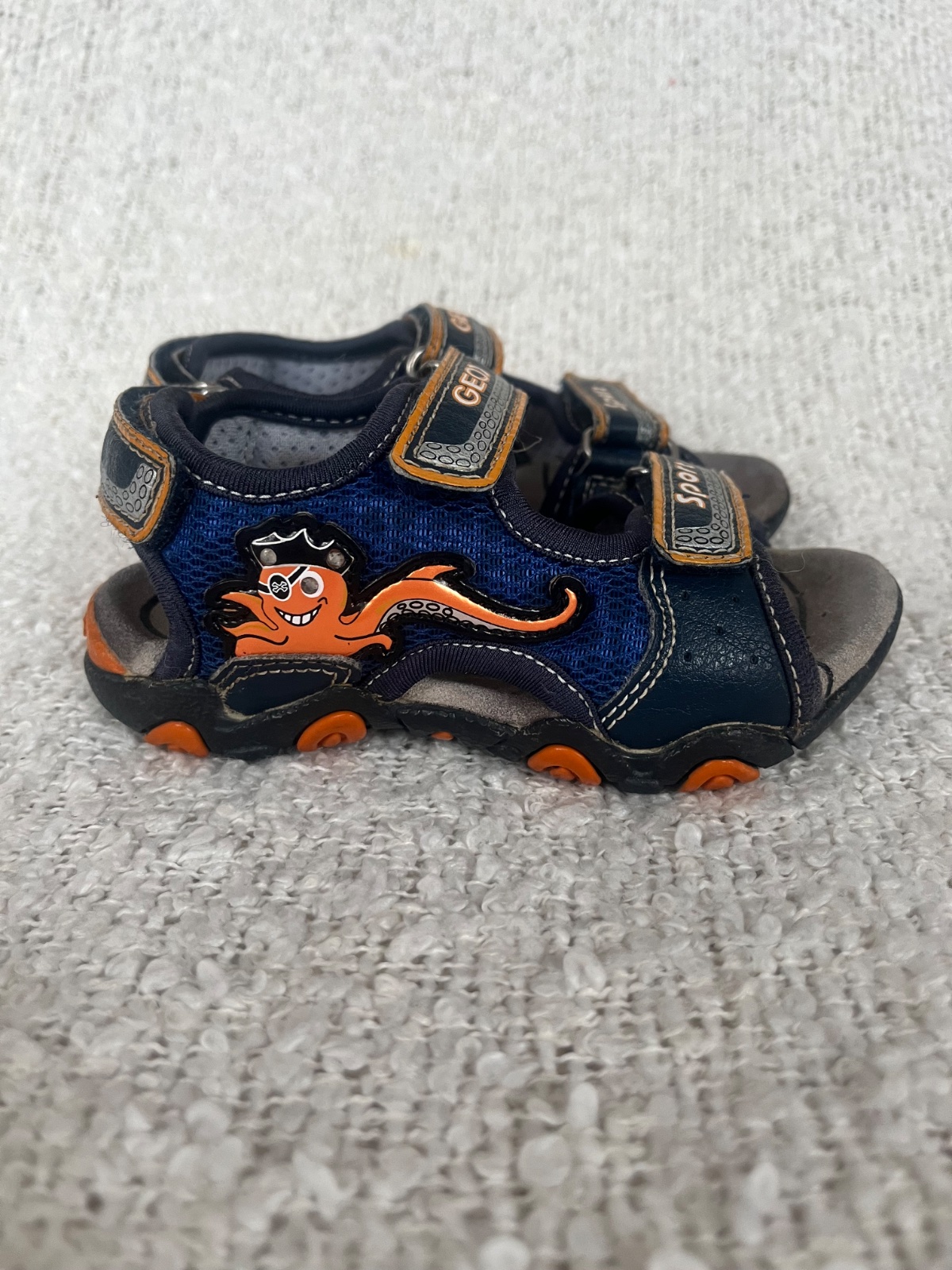 Sandálky nosene jednu sezónu, obľúbené lebo blikajú. Stále blikajú obidve. Zosuchane mierne predky používali sa na odrazadle. Vnutorna dlzka 15 cm.
