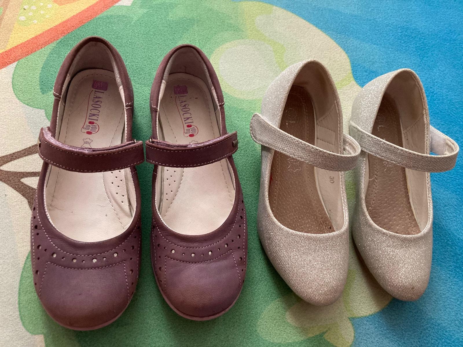 Predam baleriny v peknom nosenom stave, plne funkcne, vnutorna dlzka 19,7cm. Darujem k nim trblietave baleriny na podpatku, malo nosene. Cena spolu.