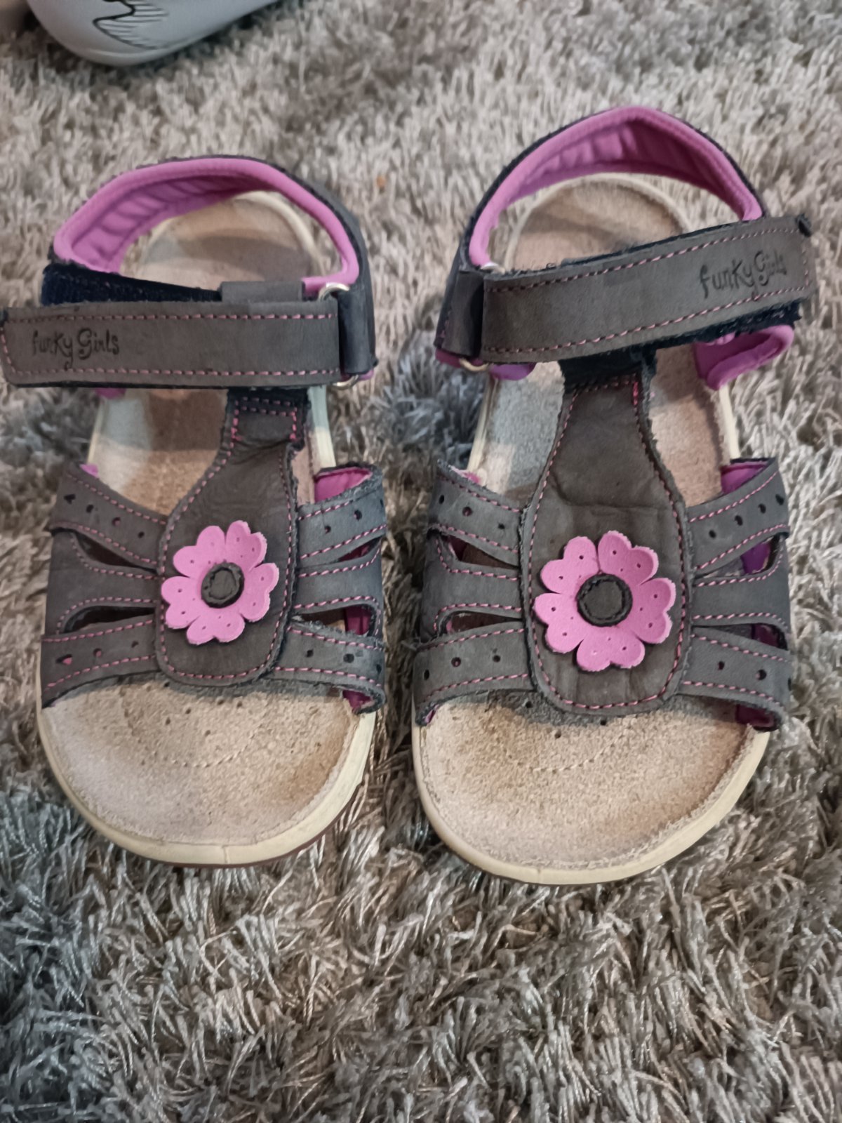 Sandálky boli používané len v škôlke ako prezúvky. Vidieť na nich už nosenie, ale inak sú plne funkčné. Vnútorná dĺžka: 18,5cm.