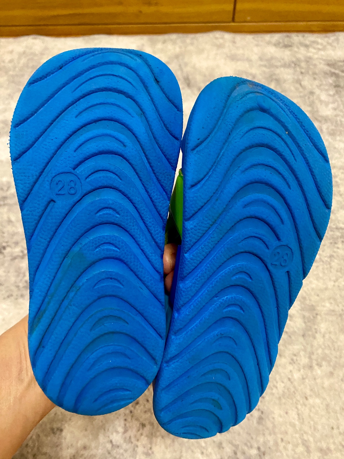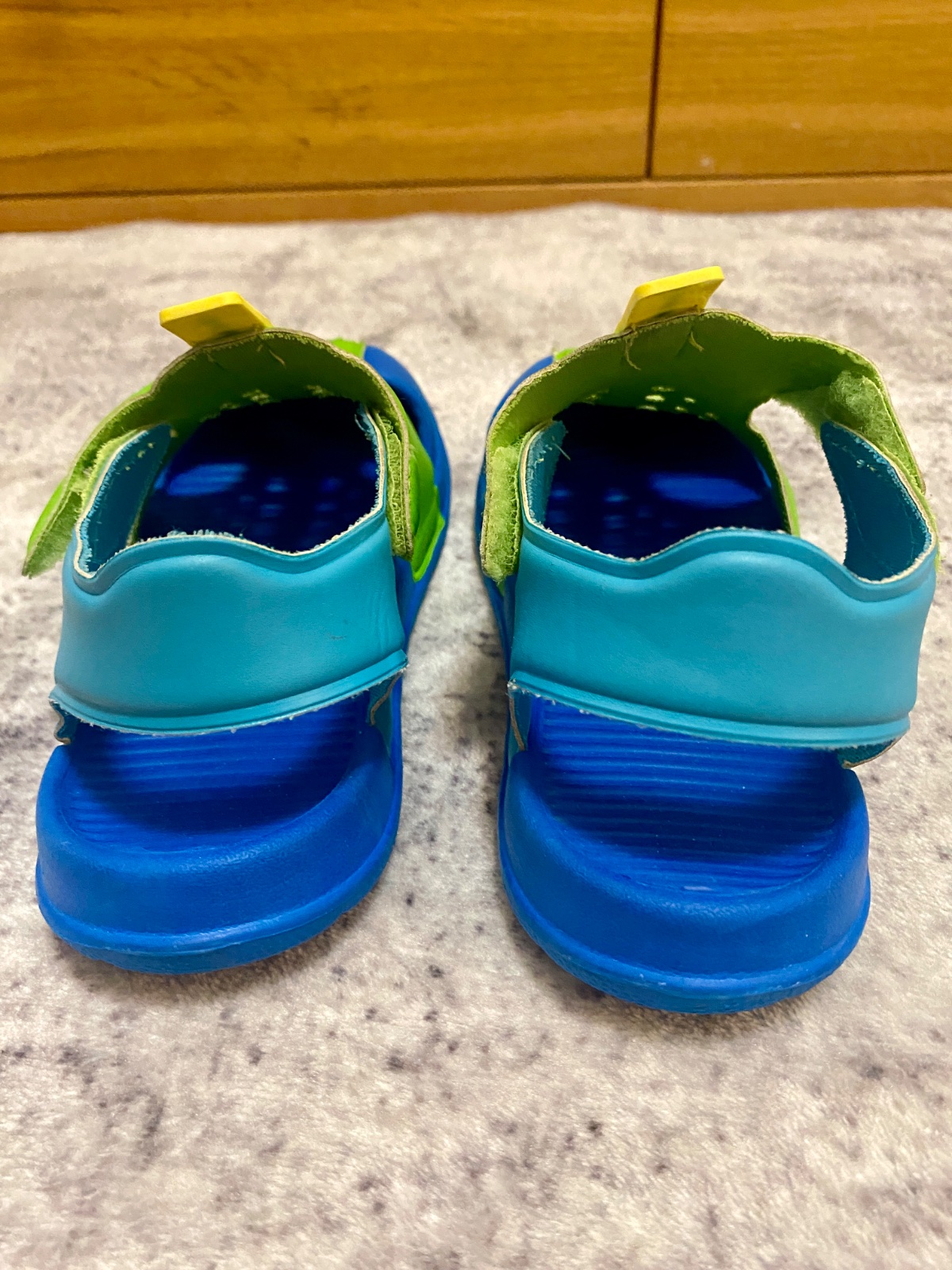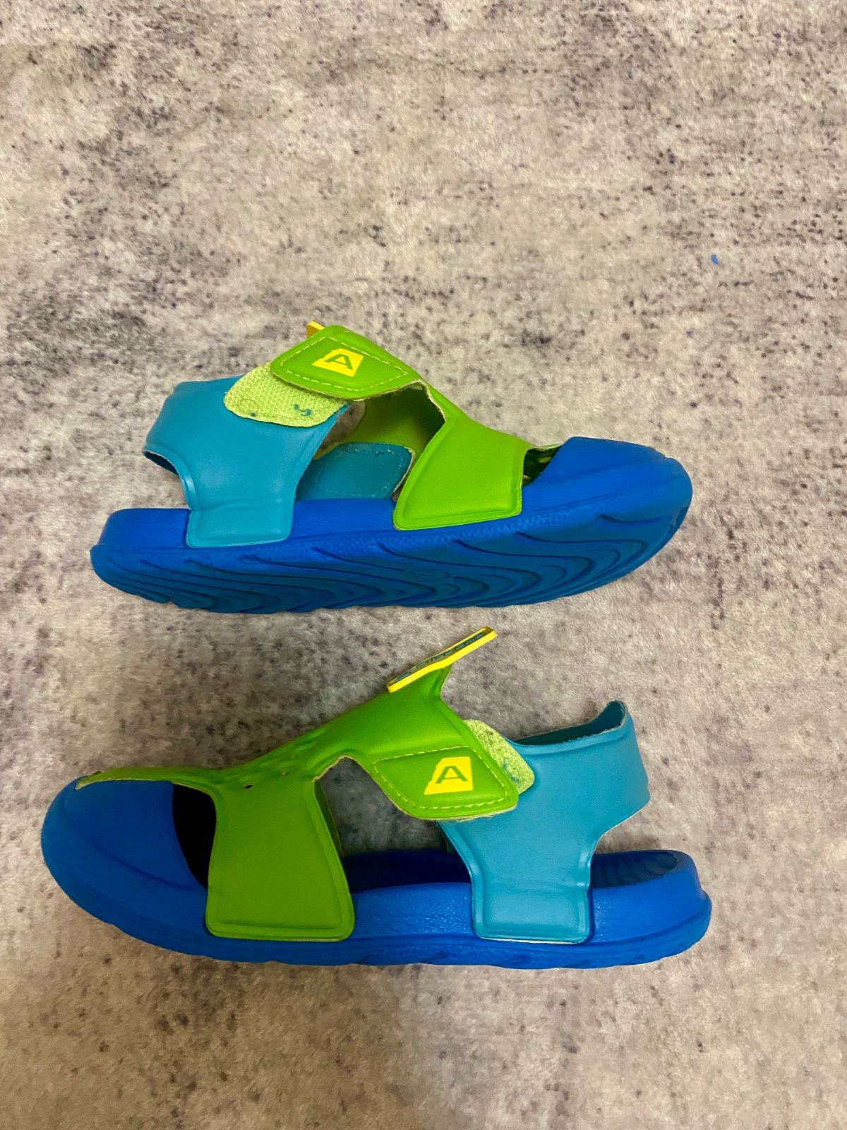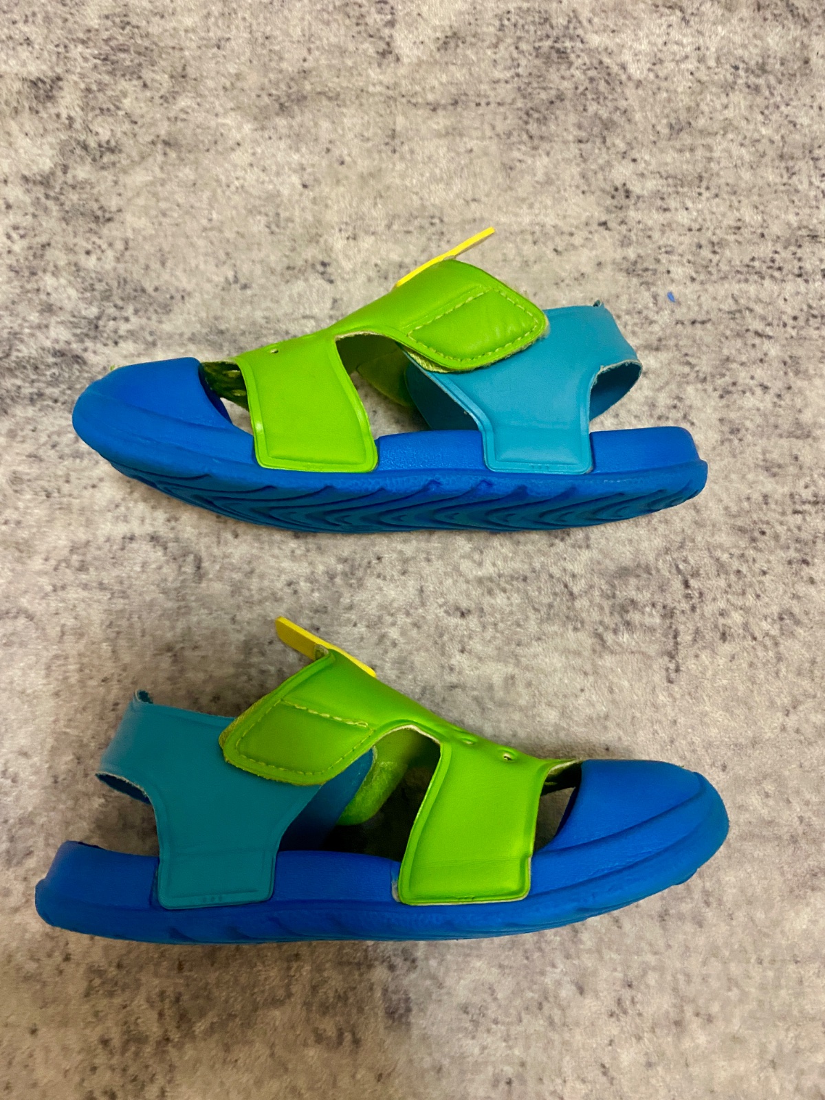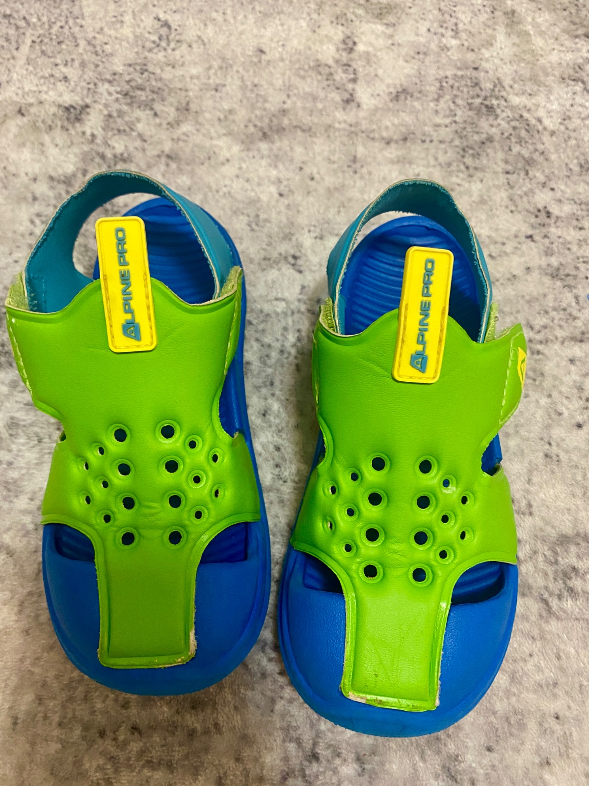 Detské sandále sú vyrobené z kvalitného syntetického materiálu, ktorý je ľahko omývateľný. Ľahko sa obúvajú aj vyzúvajú. Plne funkčné, nosené, ale vo výbornom stave