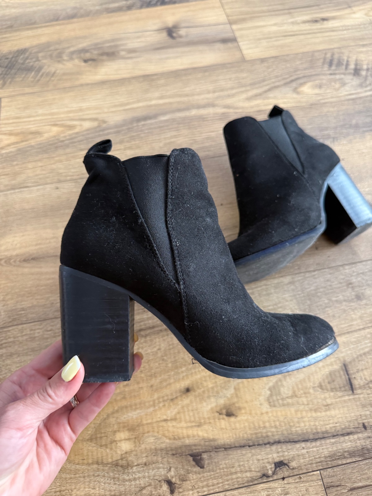 Kozene prechodne čižmičky , výška podpätku 9,5cm, nove