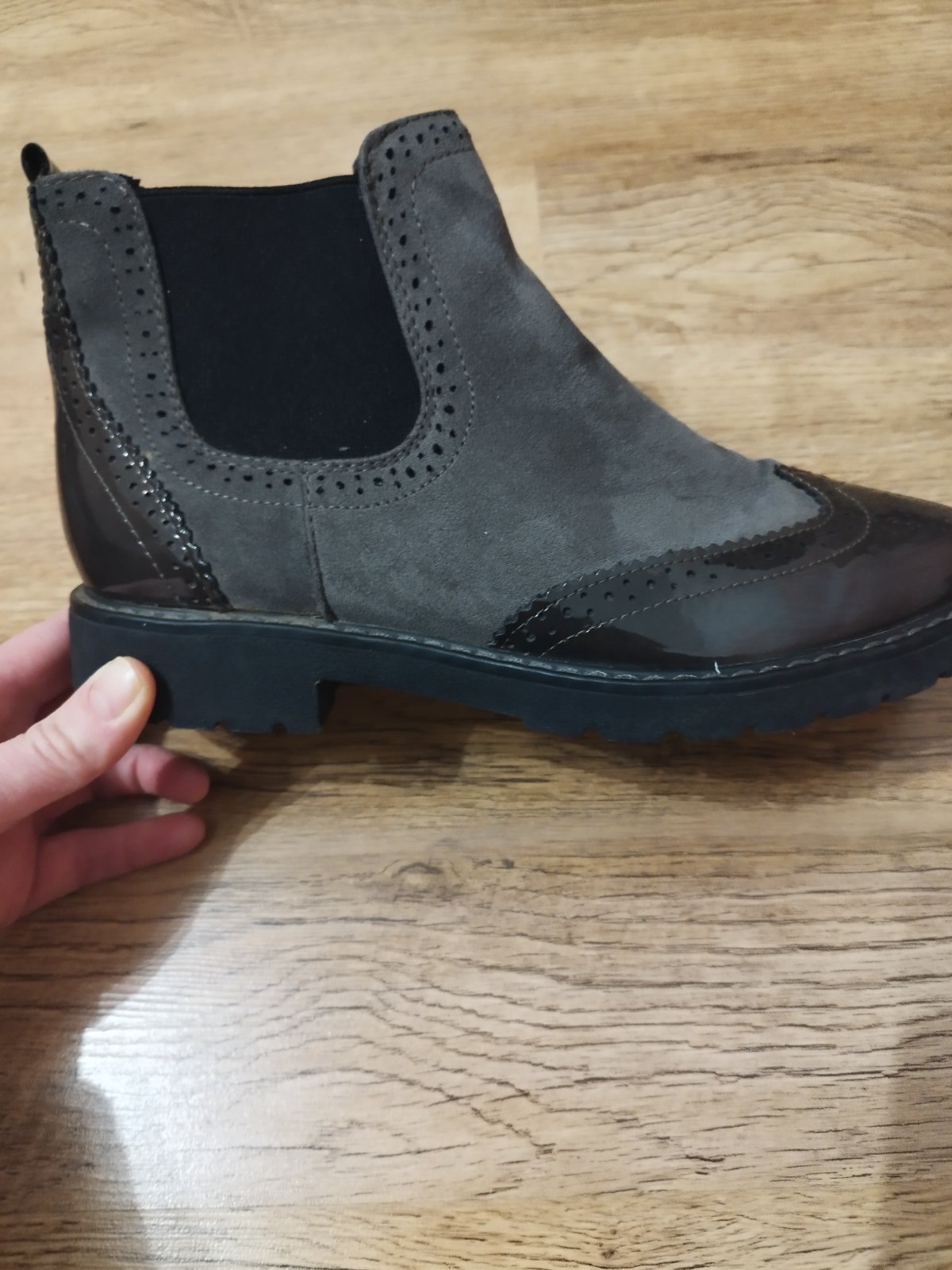 Pohodlne clenkove topánky s jemným filtrom.Vhodne na jeseň a miernu zimu.Nosene,ale vo výbornom stave.