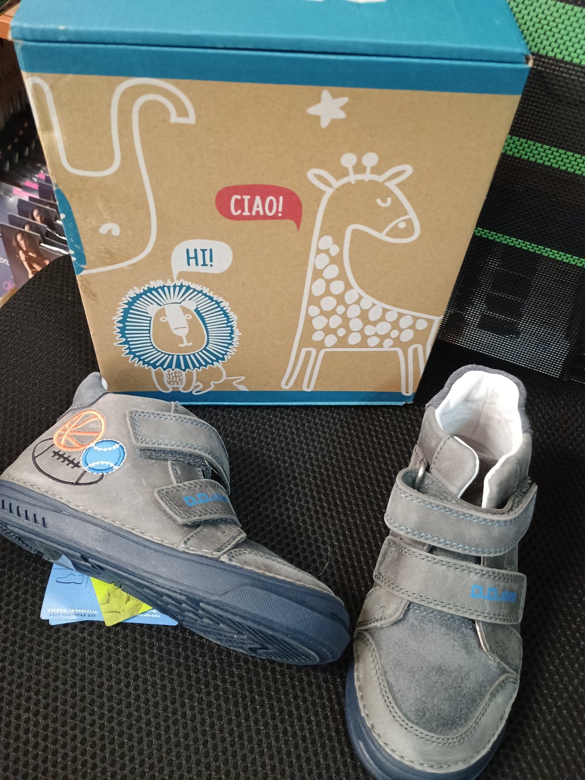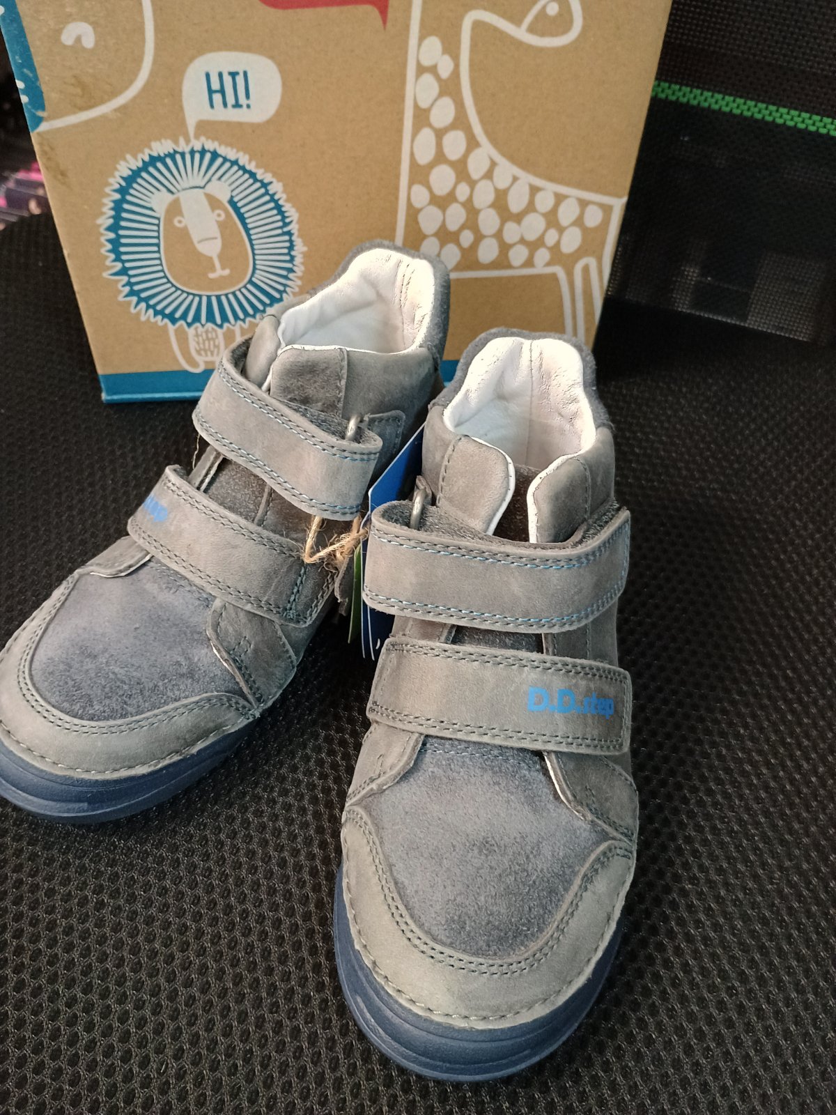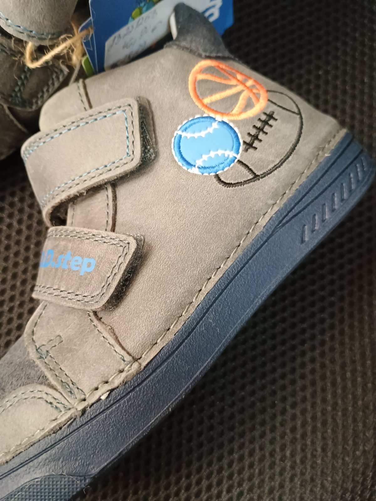 Detské sivé kožené topánky určené pre chlapcov s vyberateľnou stielkou od značky DDstep. Jedná sa o pohodlné topánky s ortopedickou vložkou. Zapínanie je na 2 suché zipsy, čo ocenia hlavne deti pre jednoduchosť a rýchlosť pri obúvaní. Ide o originálny model na každodenné nosenie. Na zvršku nájdete obrázok loptičiek.