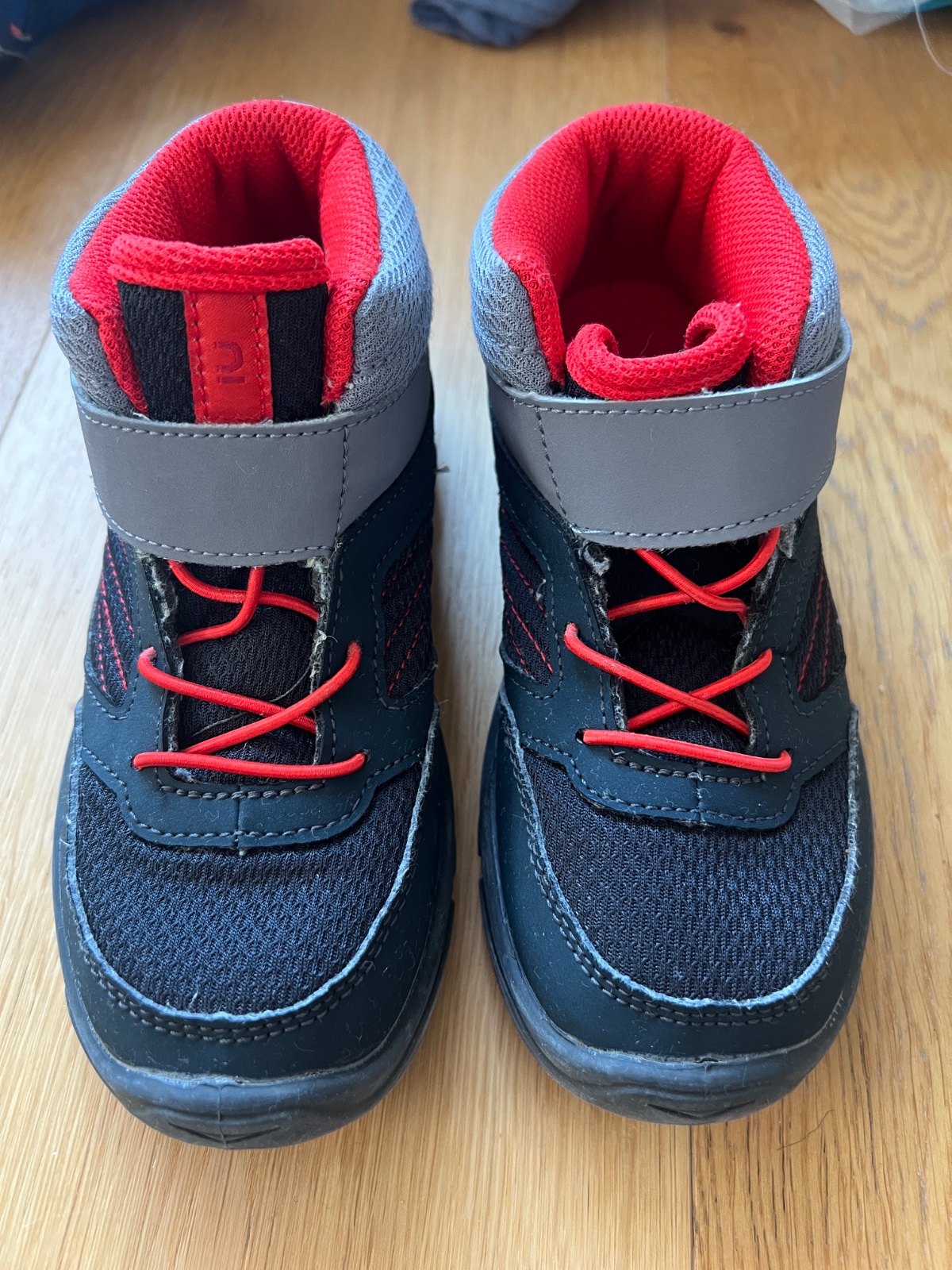 Nove stoja 14 eur :https://www.decathlon.sk/p/332226-116681-detska-turisticka-obuv-mh100-polovysoka-so-suchym-zipsom-vel-24-34-sivo-cervena.html