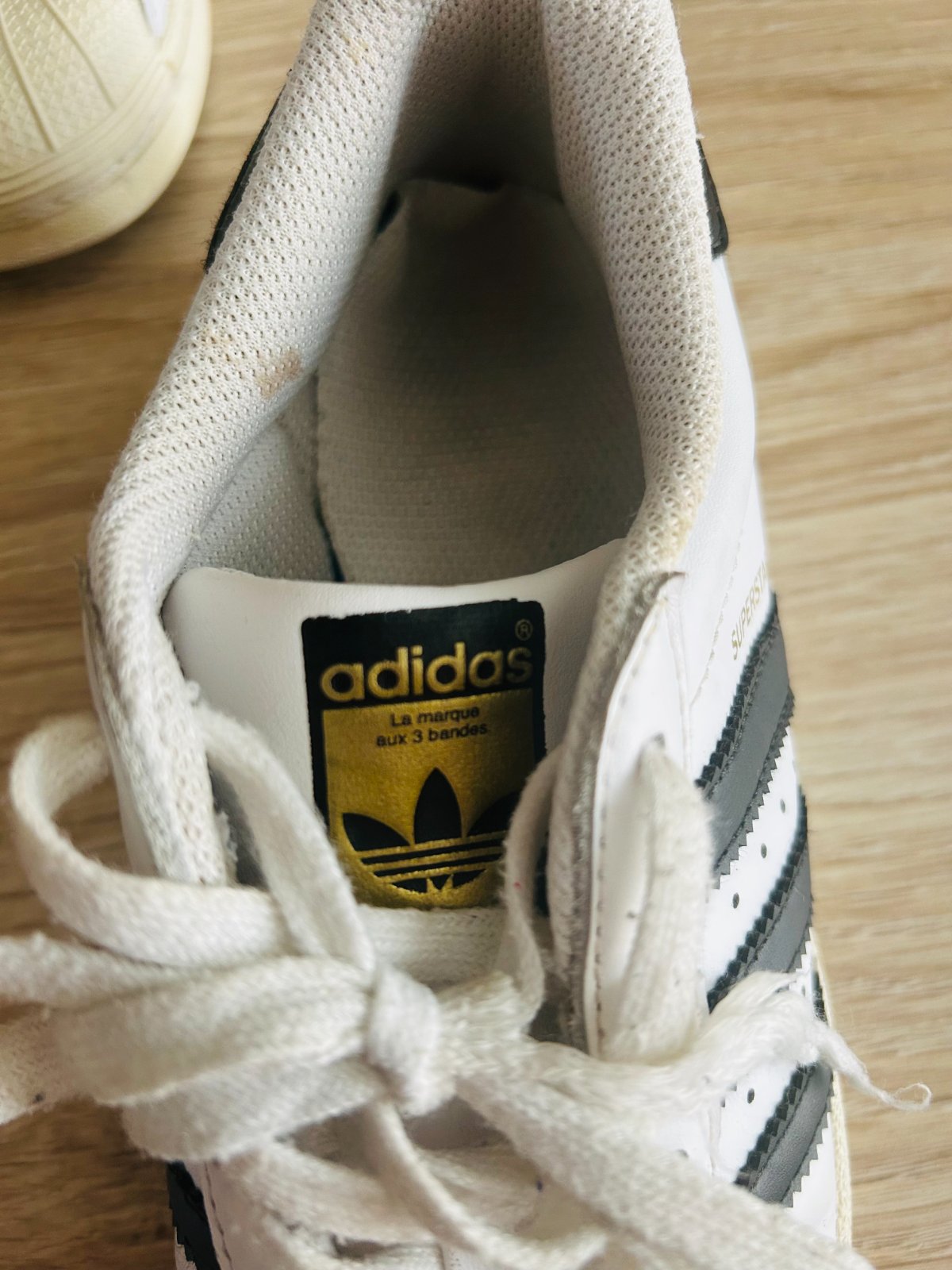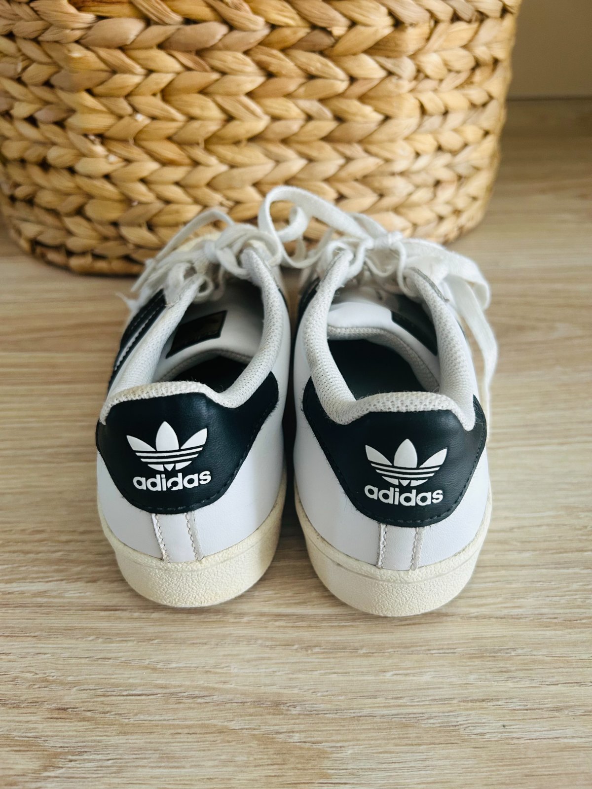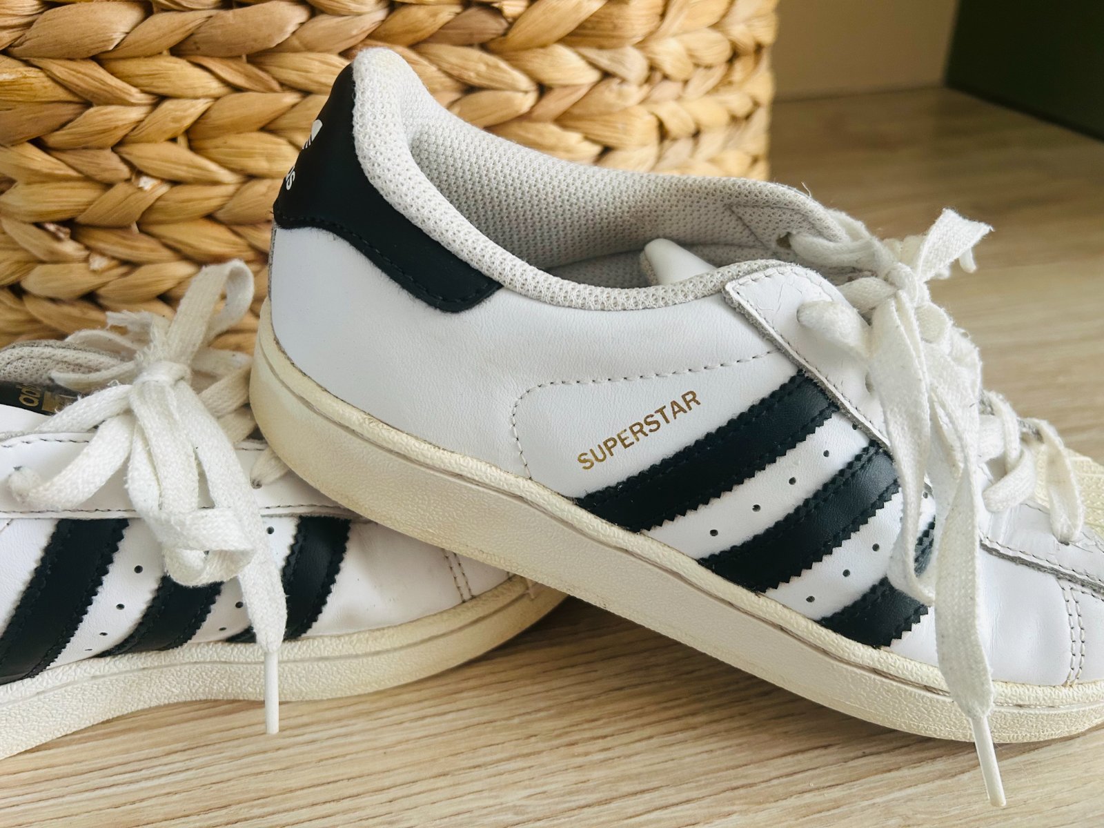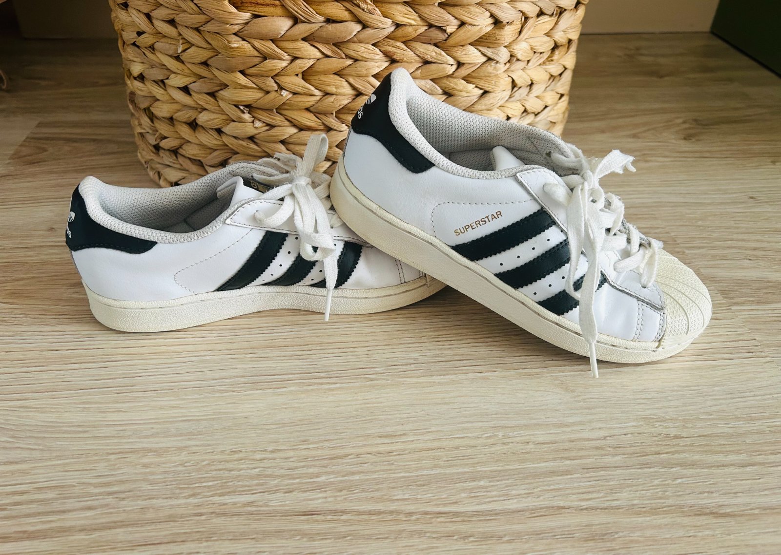 Predám tieto tenisky značky ADIDAS SUPERSTAR vo veľkosti 34. Pôvodne stáli 70 EUR. Nosené boli na striedačku s inými teniskami.