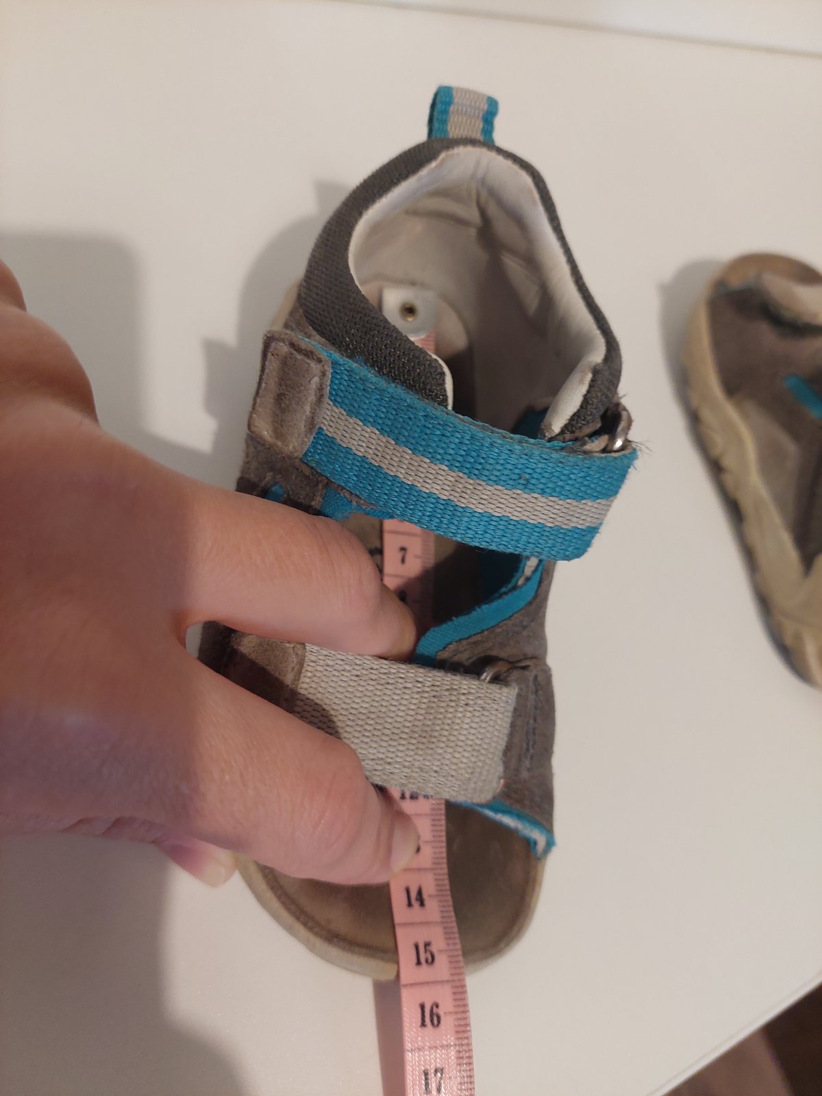 Predam kozene sandalky Superfit, prijemne, ohybne, vzdusne. Bezne znamky pouzivania, tyrkysova latka je trochu osuchana, na prvy pohlad to na nôžke nie je vidiet.