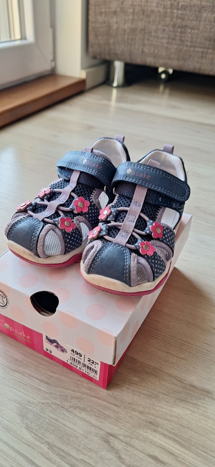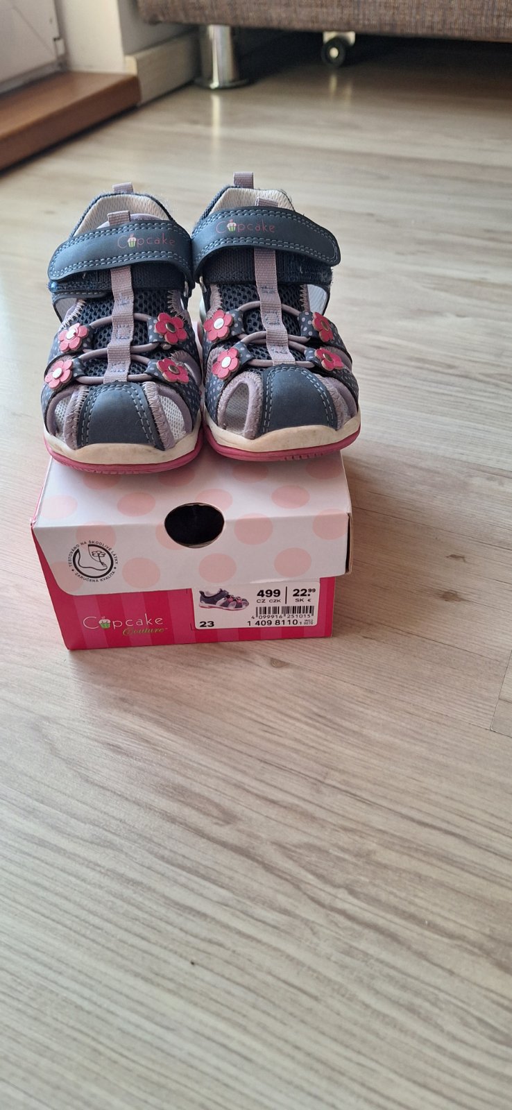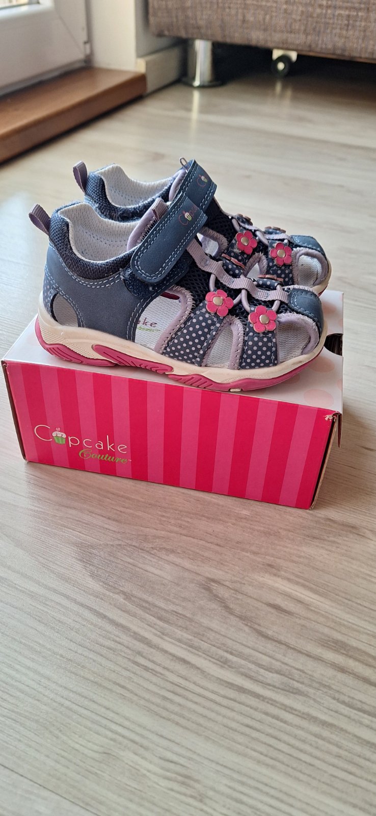 Posuniem po dcere letne sandalky. Znacka Copcake. Kombinaciac koža a textil, zapinanie suchy zips. Pevna päta aj špička.Velmi zachovale, nosené 2 mesiace.
