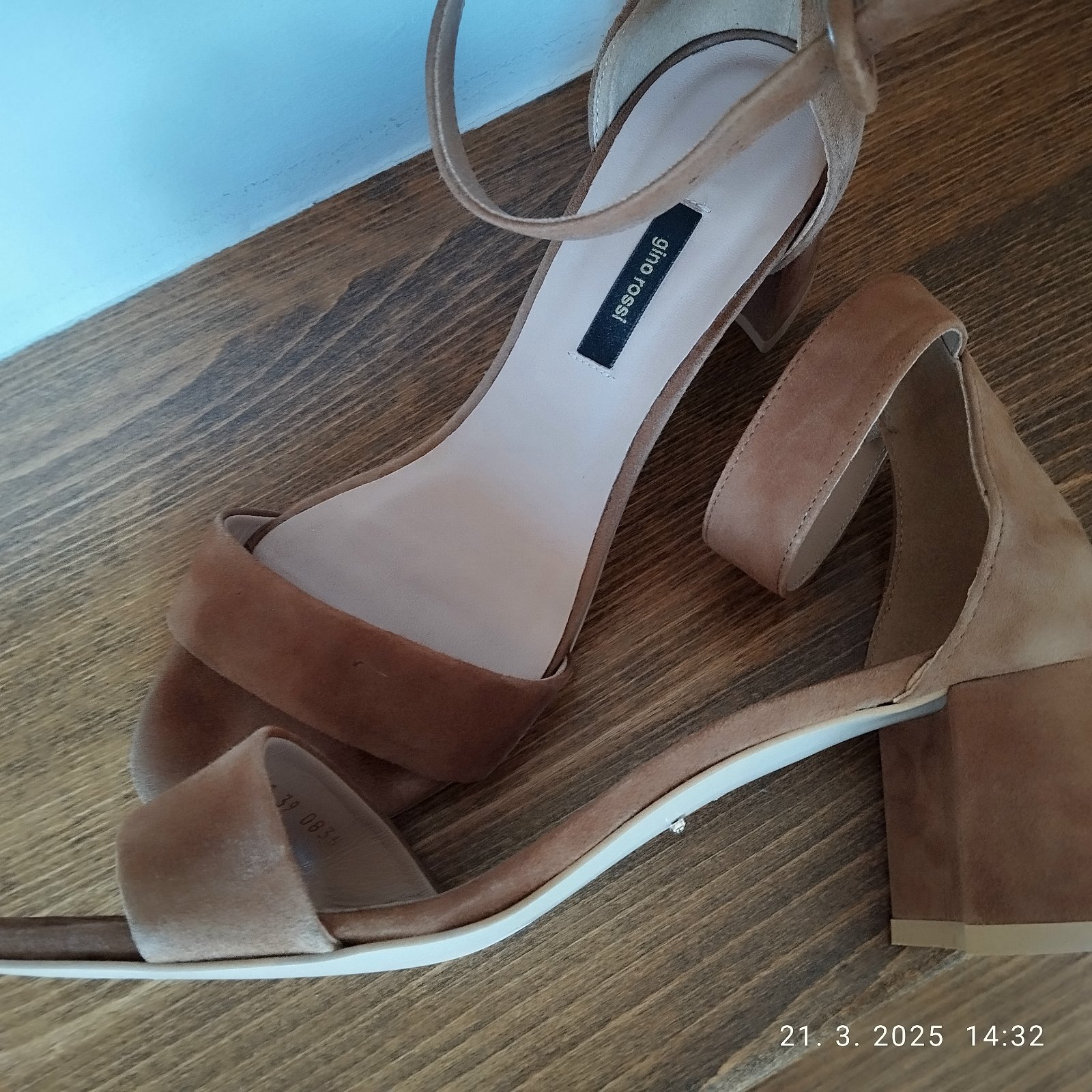 Krásne kožené sandálky ,farba kamel,brúsená koža ...39,asi raz obuté ...