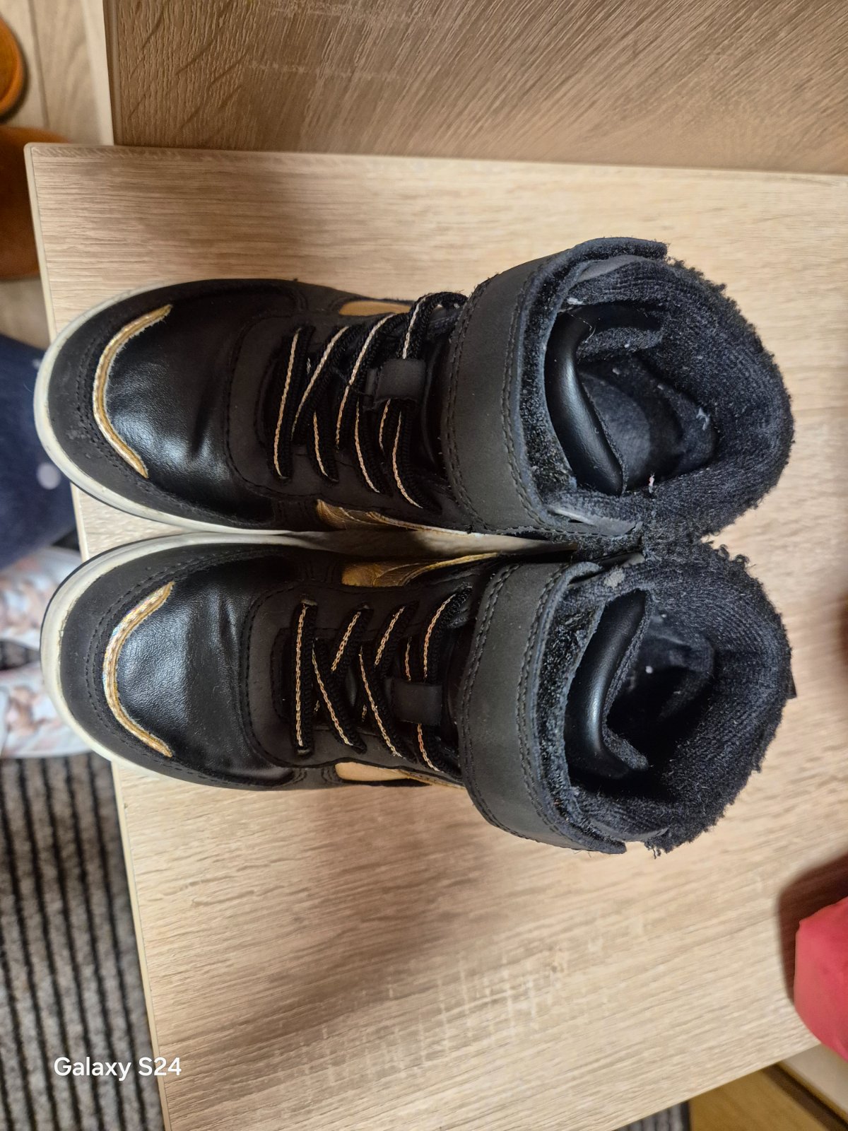 Dievčenské topánky, zips na jednej topánke je zaseknutý, takže sa obúvajú len suchým zipsom (mašľa). Topánky sú mierne ošúchané, ale moc to nevidieť.