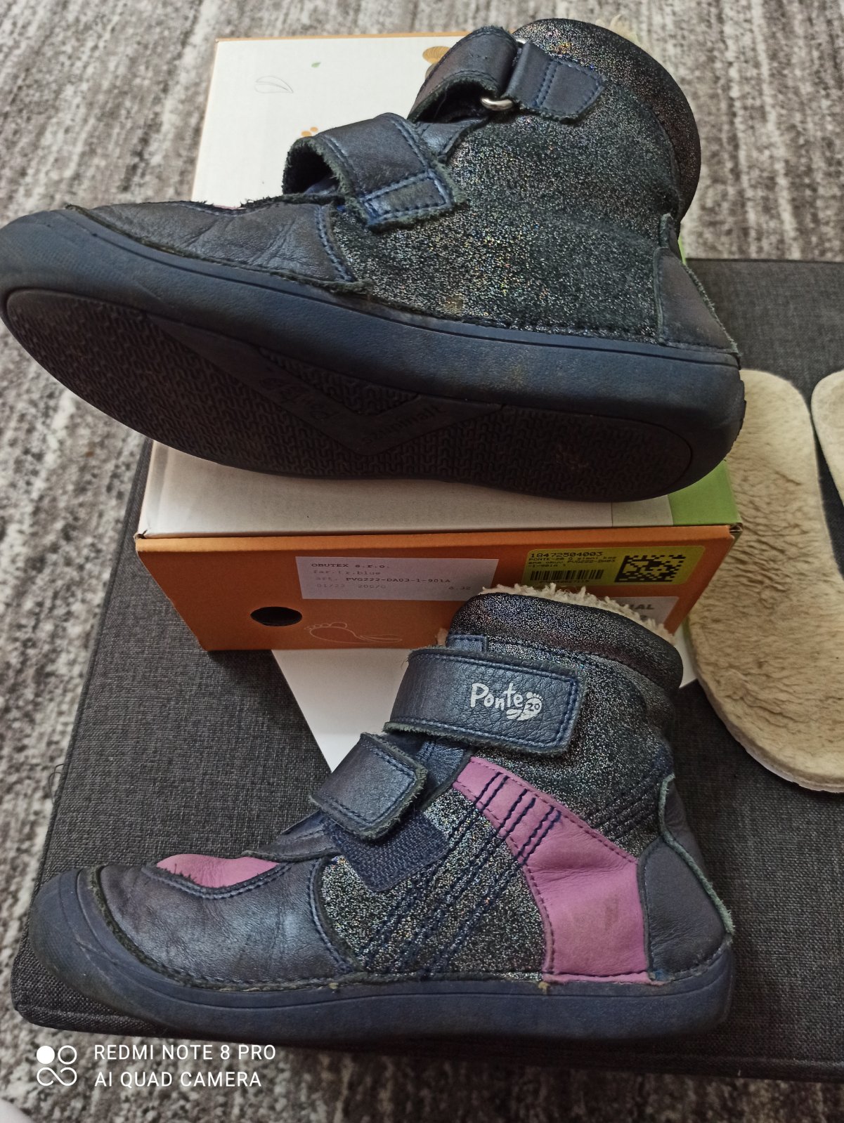 Predám zimné hrubé topánky, majú úplne ohybnú podrážku, pätu troch pevnejšiu, skôr alternatíva BF. Suche zipsy držia, nie sú zničené, znosené ani nijak poškodené. Vnútorná vložka ani nebola nosená, mali sme tam inú. Tiež s kožušinkou, nebude deťom zima určite. Je to značka Ponte, sesterská značka DD Step. Vnútorná dĺžka 20cm.