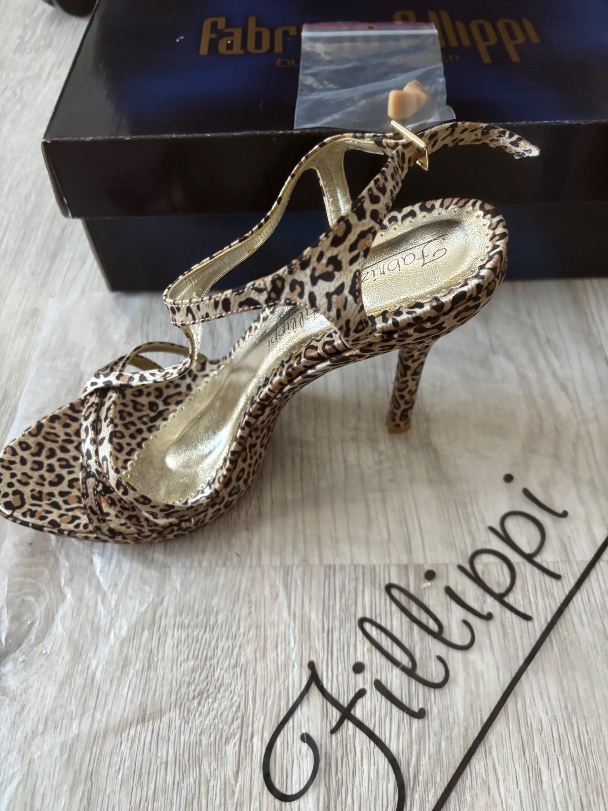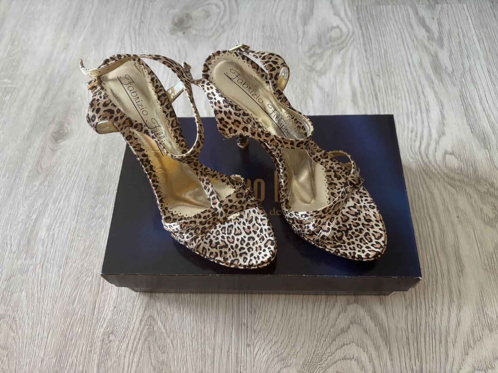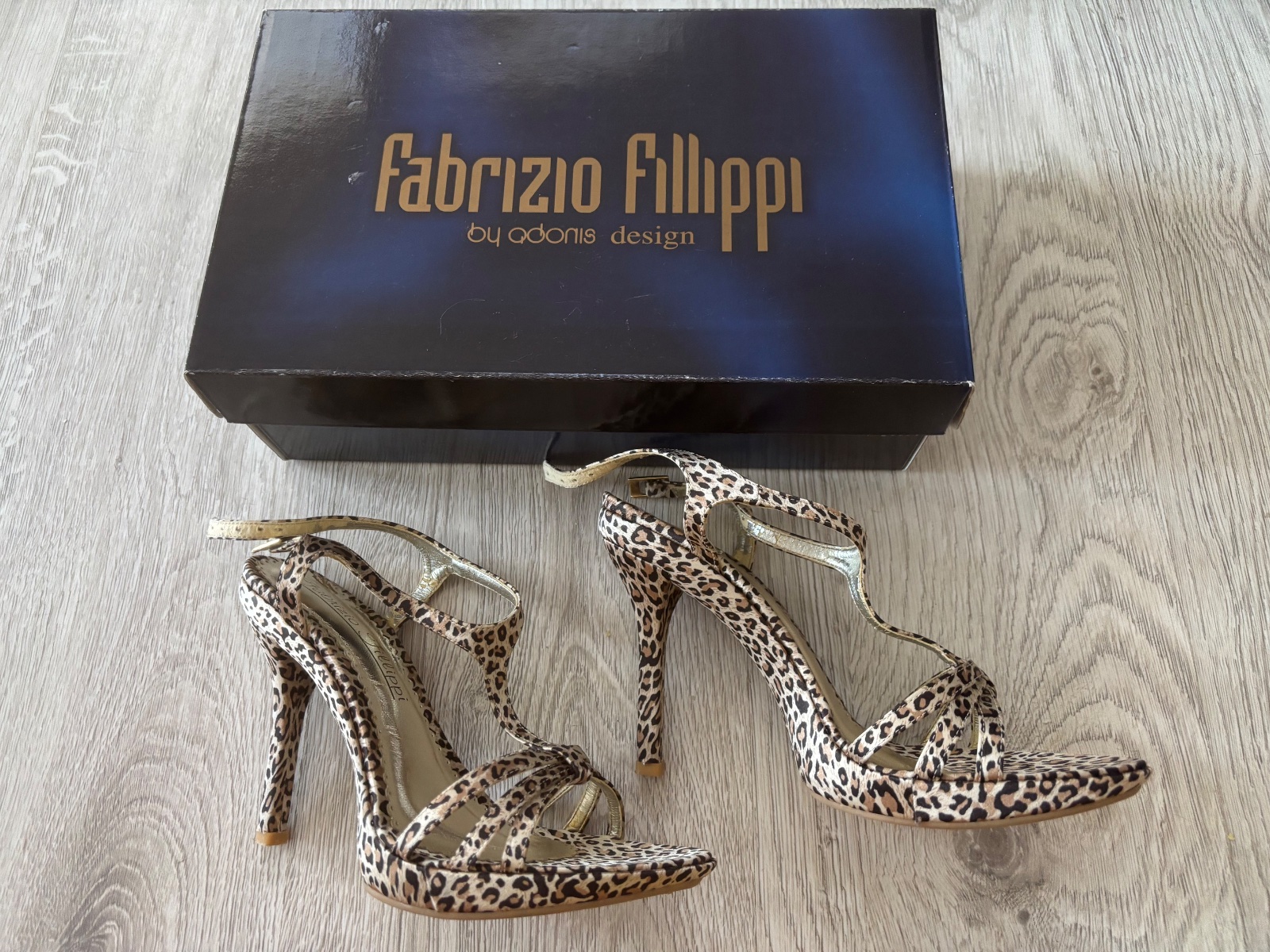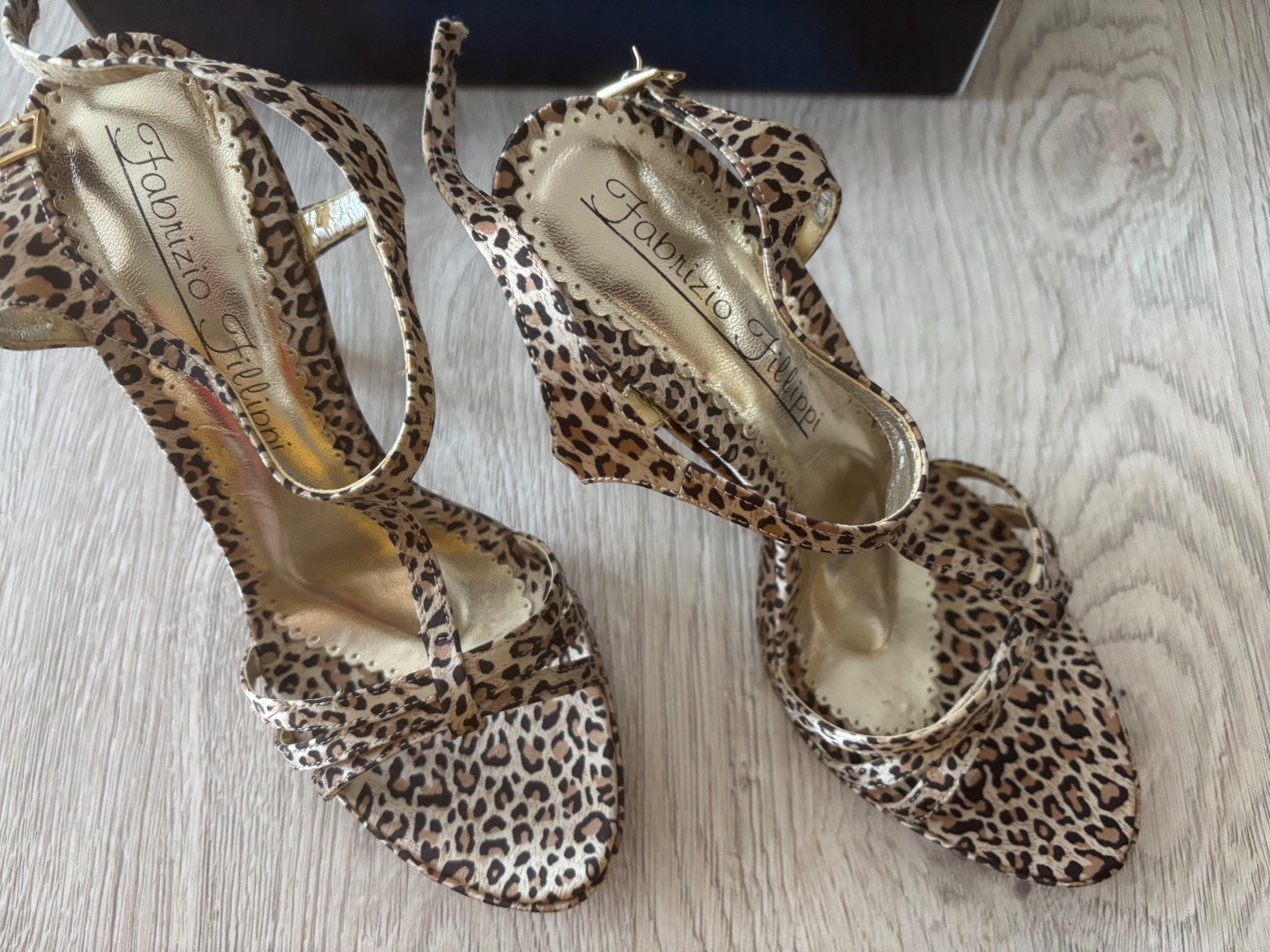 Super stav, obute 1xkrat, leopardi vzor, opatok 10cm + nahradne original opatky, kupovane v Taliansku, znacka FABRIZIO FILIPPI