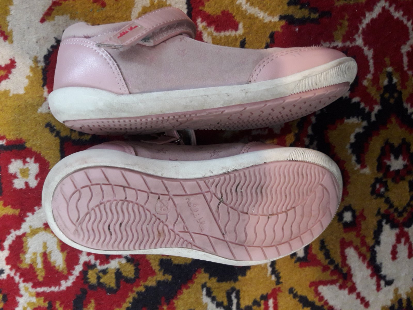 Elegantné bledoružové prechodné topánky vhodné na teplejšie obdobie. V peknom zachovalom stave. Vnútorná dĺžka 18 cm.