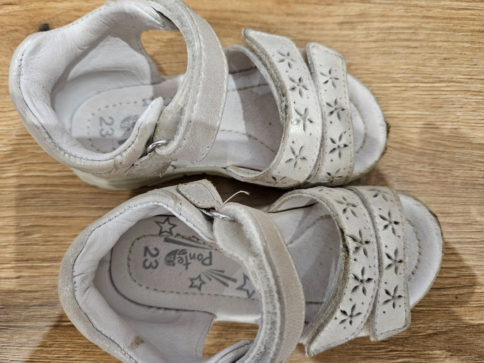 Predám kožené sandálky bielej farby, značky Ponte, veľkosť 23, nosené príležitostne. Cena 15 eur + poštovné