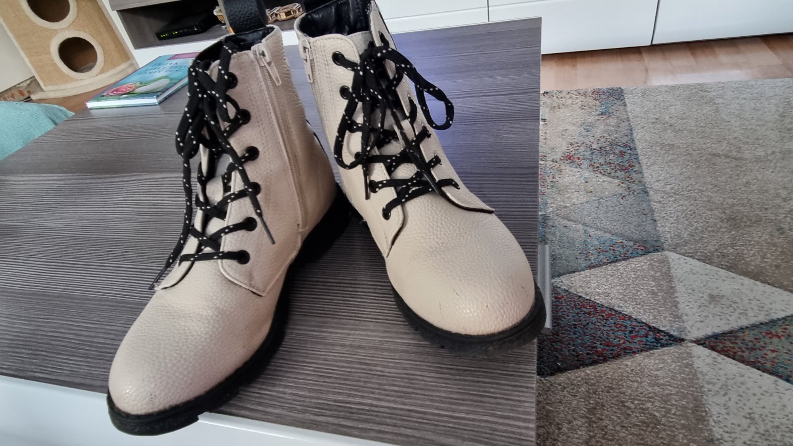 Dievčenské členkové topánky značky F&F. Krémová farba. Topánky sú jemne zateplené čiže sú vhodné na jeseň/jar.