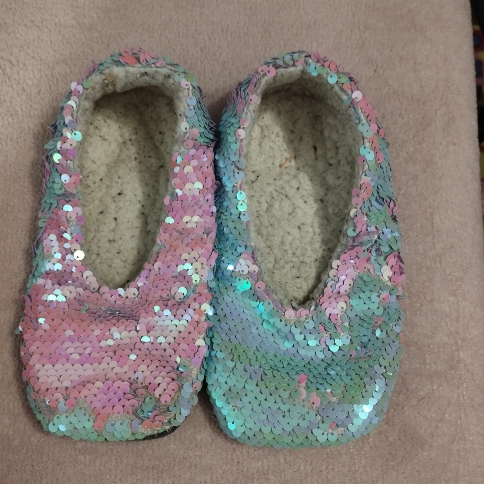 Krásne flitrové teplé papučky, meniace sa na modrú alebo ružovú farbu, do 20cm