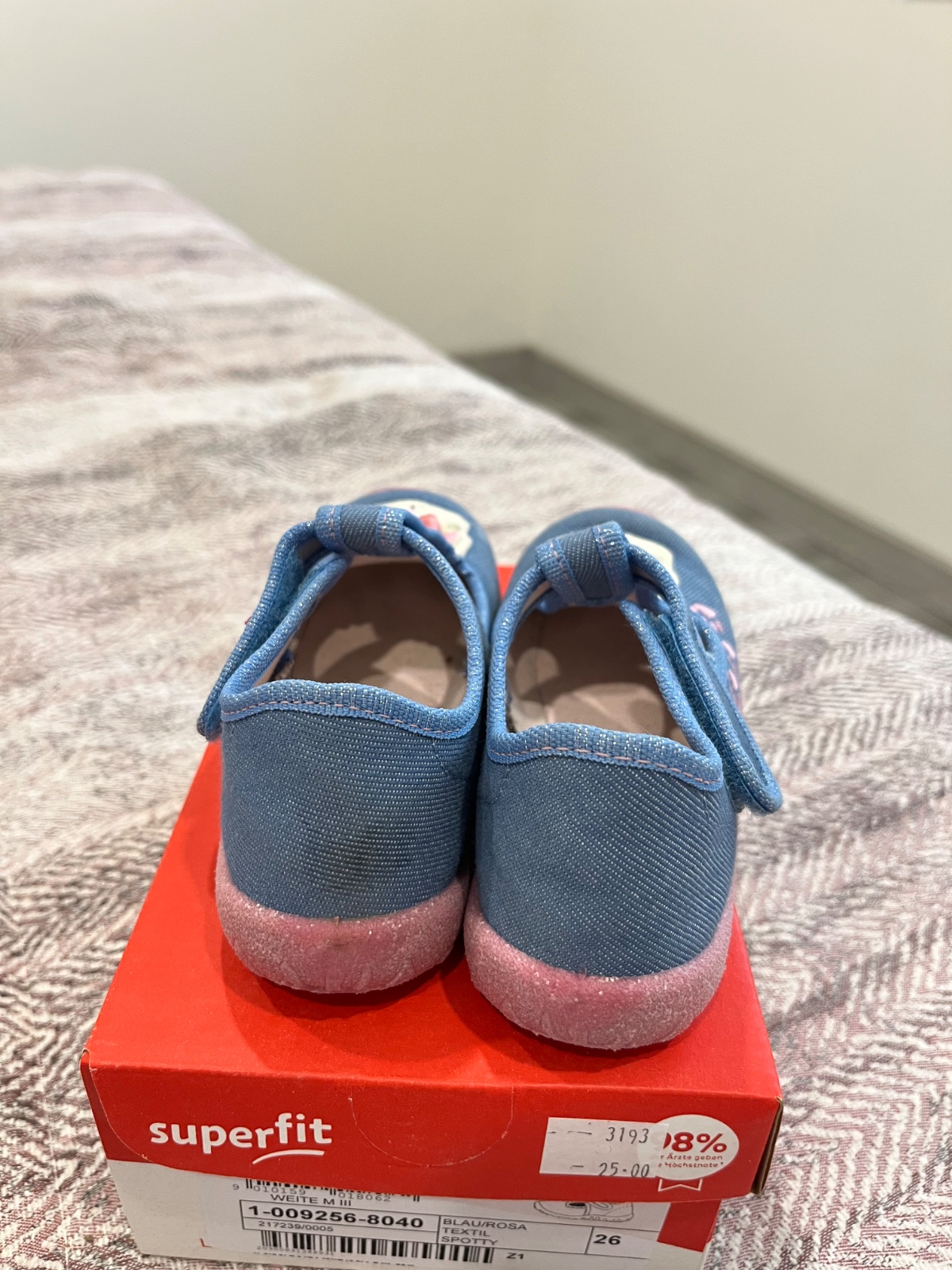 Predám nízke papuče Superfit Bonny, veľk 26 (rozmer foto), zachovalé,nosené jednu jeseň, vhodné na užsiu nohu a členok