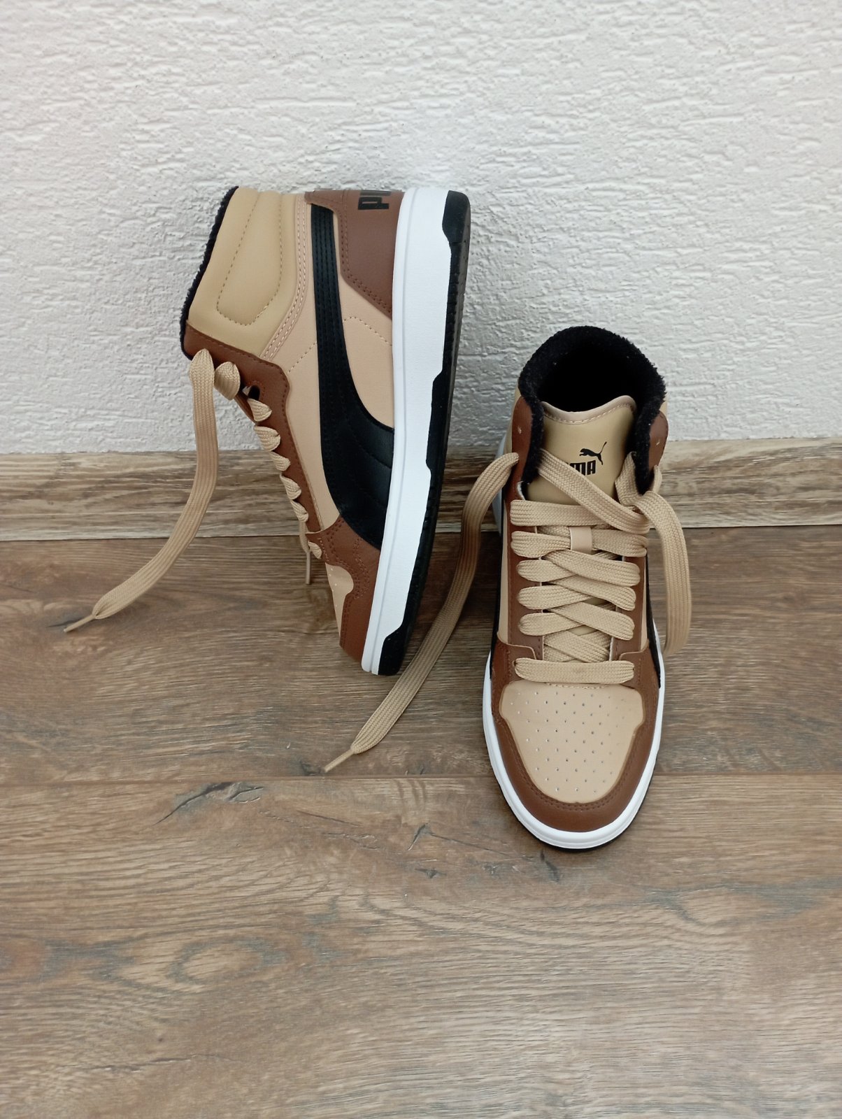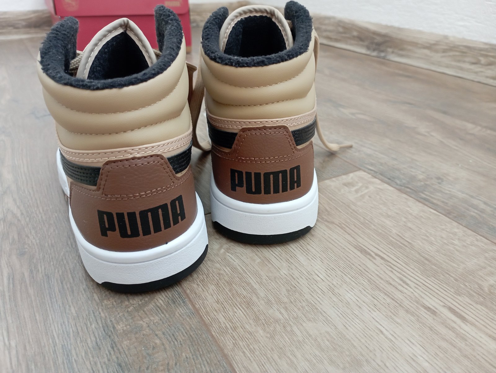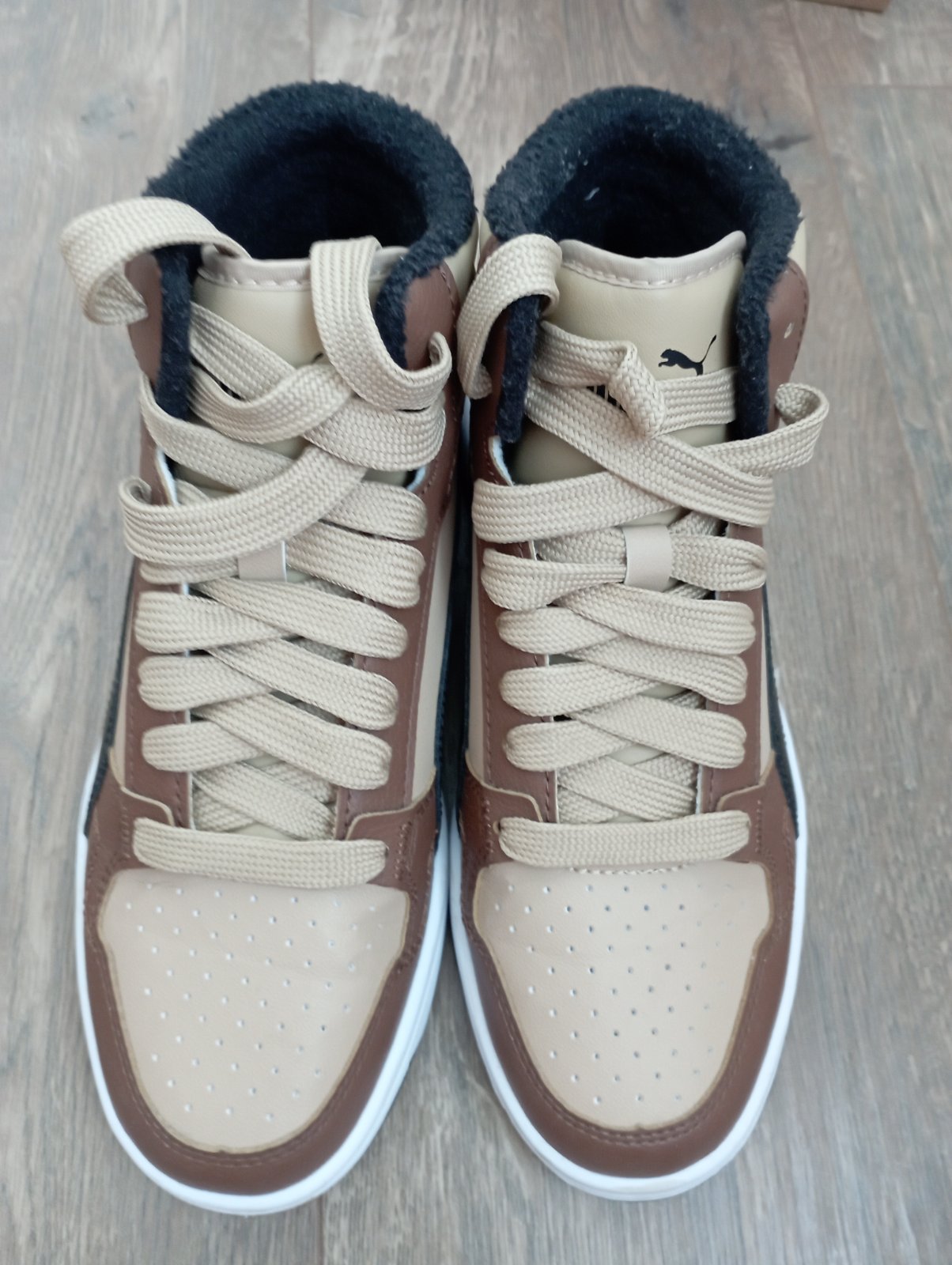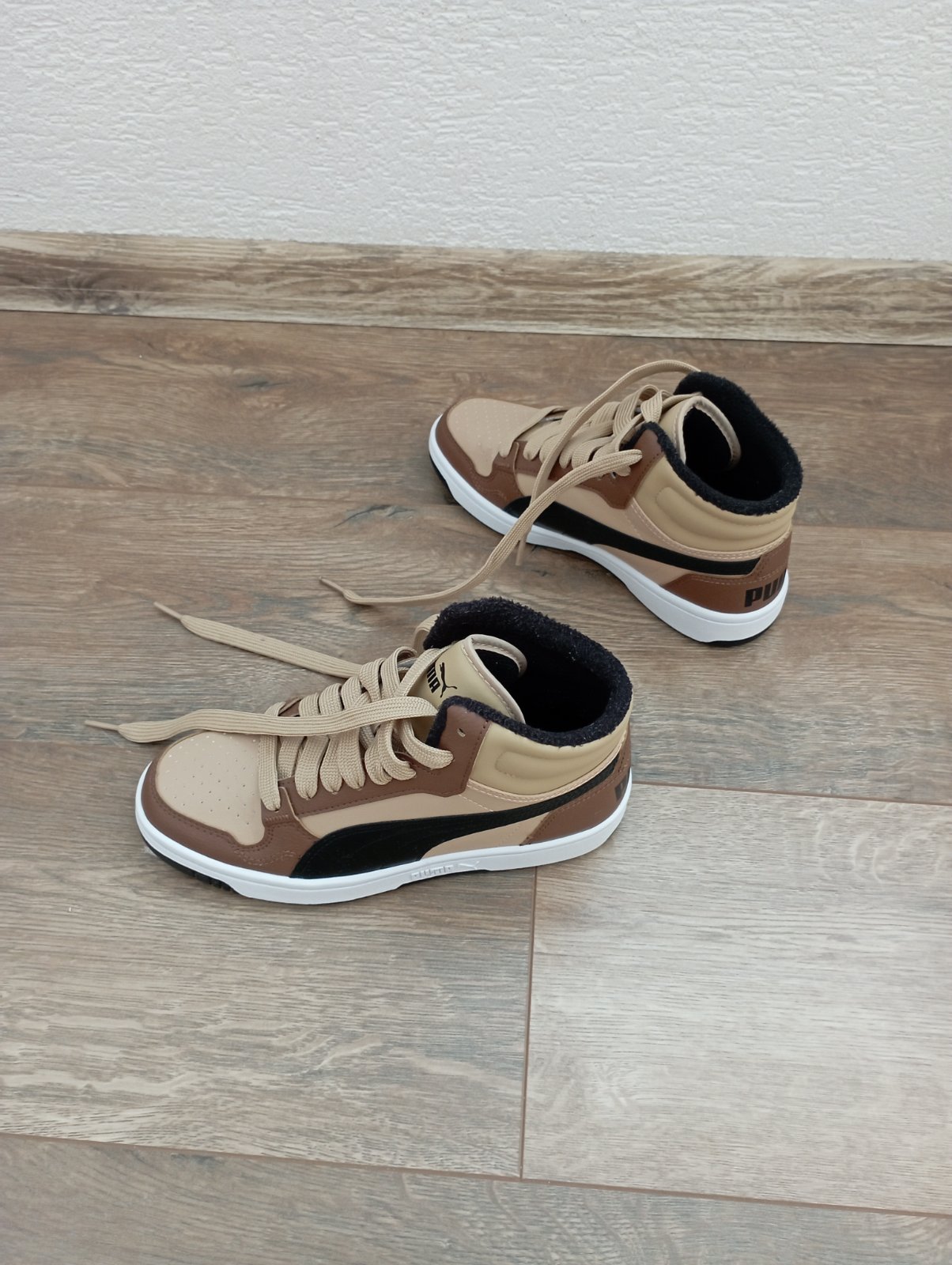 Nosené asi mesiac do školy koncom zimy, takže veľmi dobrý stav. Iba na podrážkach poznať použitie. Krásna kombinácia farieb: biela, čierna, hnedá a béžová. Vhodné aj do daždivého počasia.