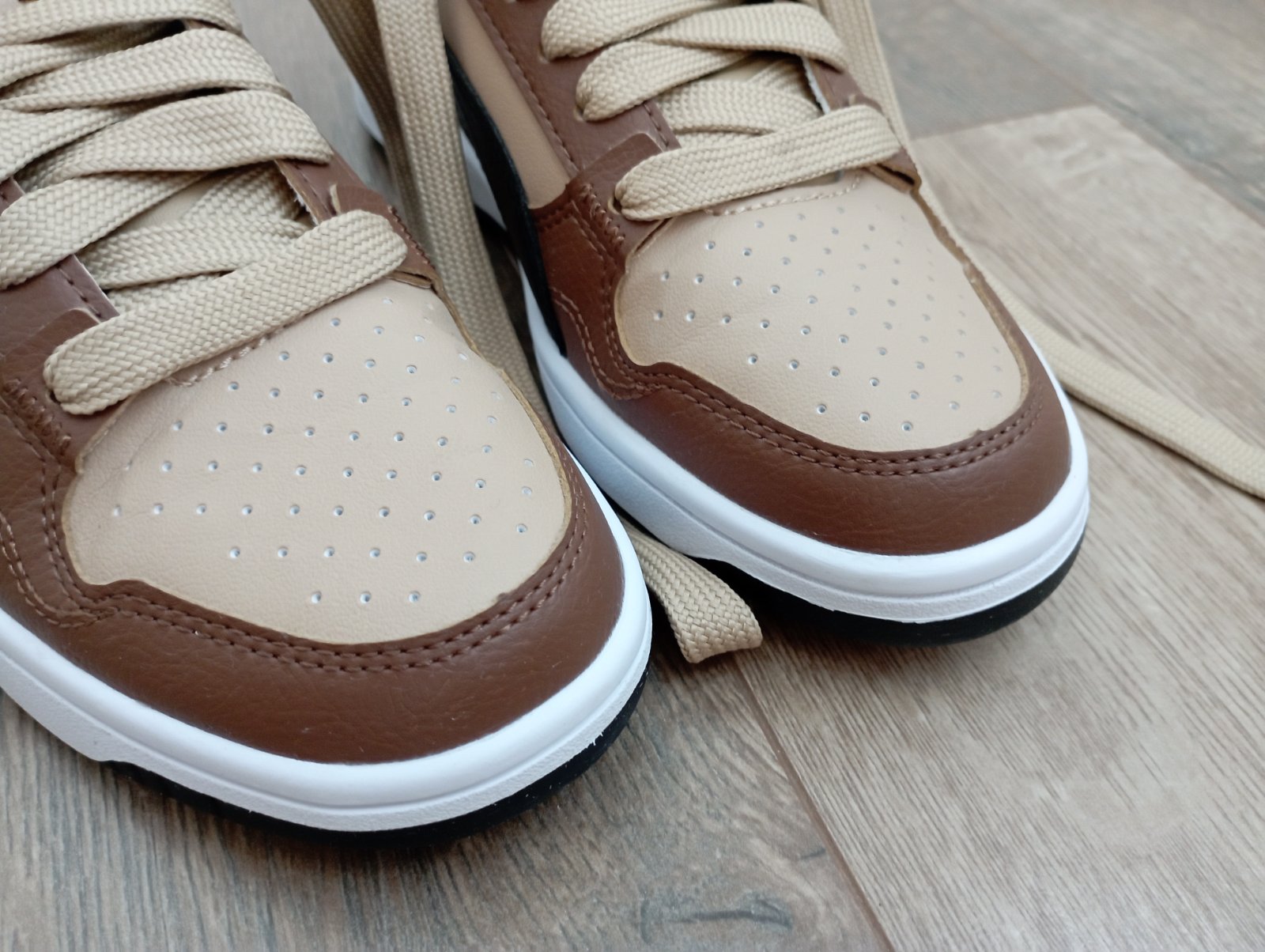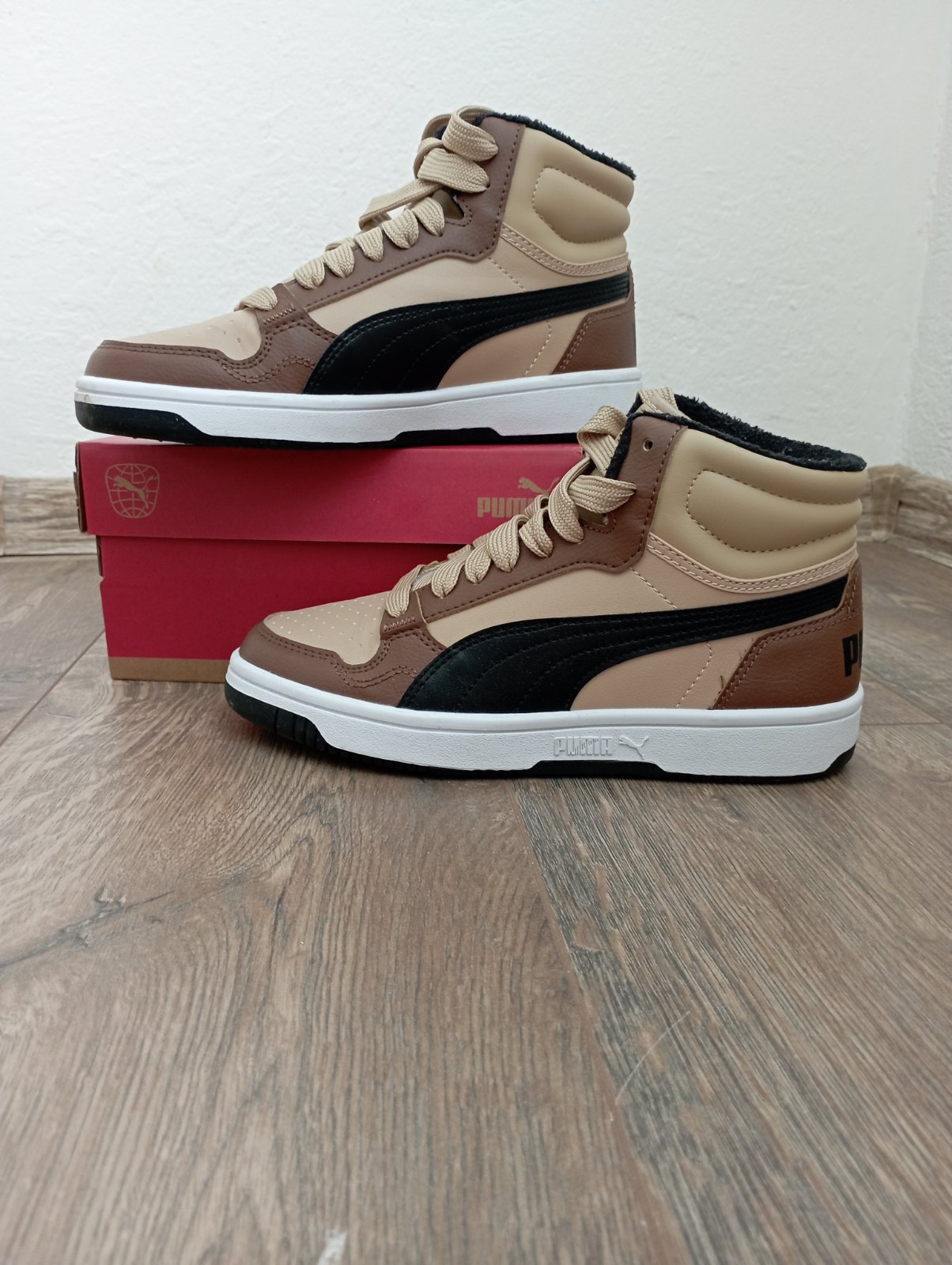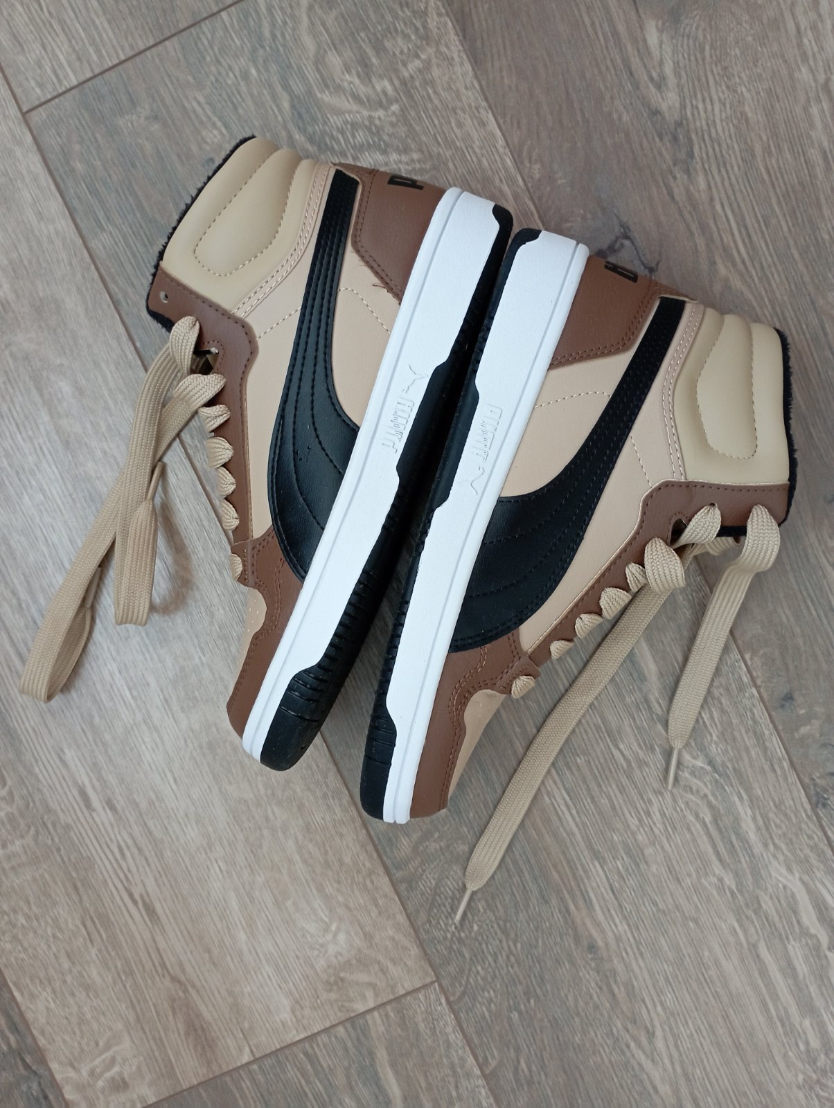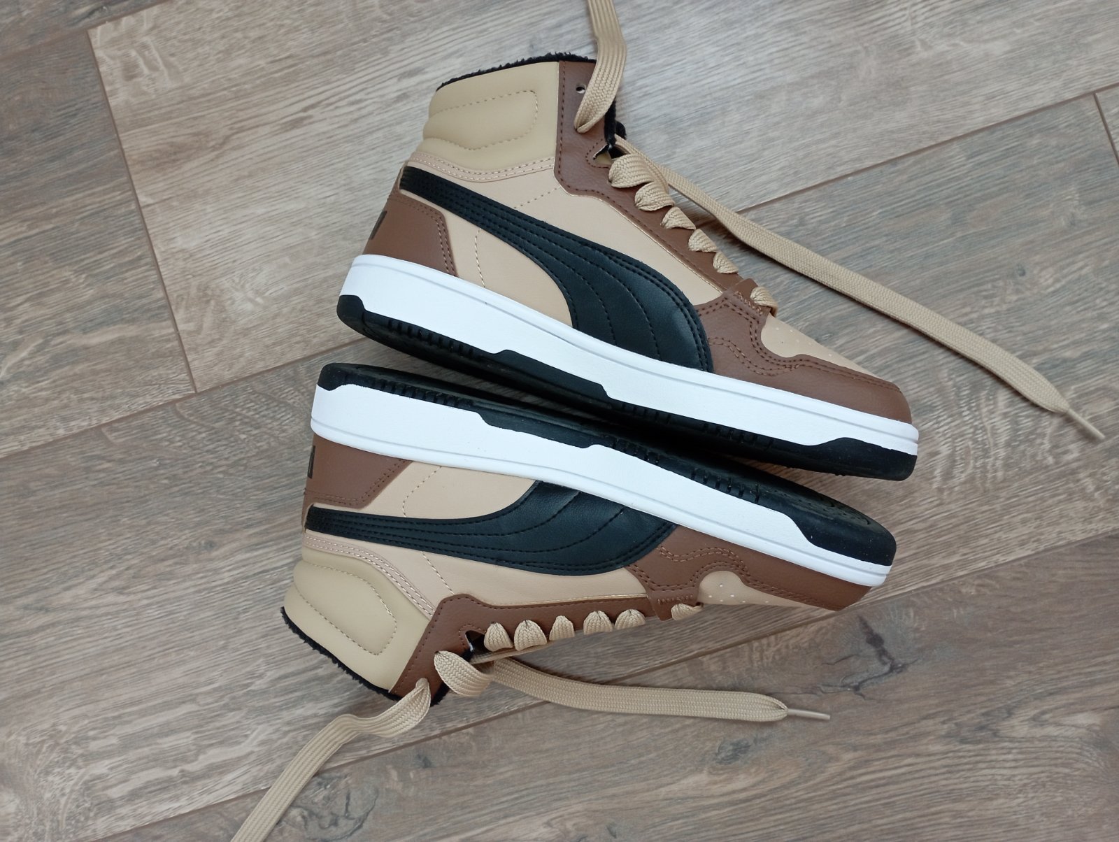Nosené asi mesiac do školy koncom zimy, takže veľmi dobrý stav. Iba na podrážkach poznať použitie. Krásna kombinácia farieb: biela, čierna, hnedá a béžová. Vhodné aj do daždivého počasia.